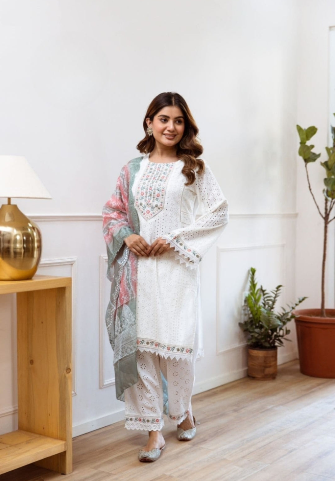Ethnic Motifs Printed Top Palazzos And Dupatta Set