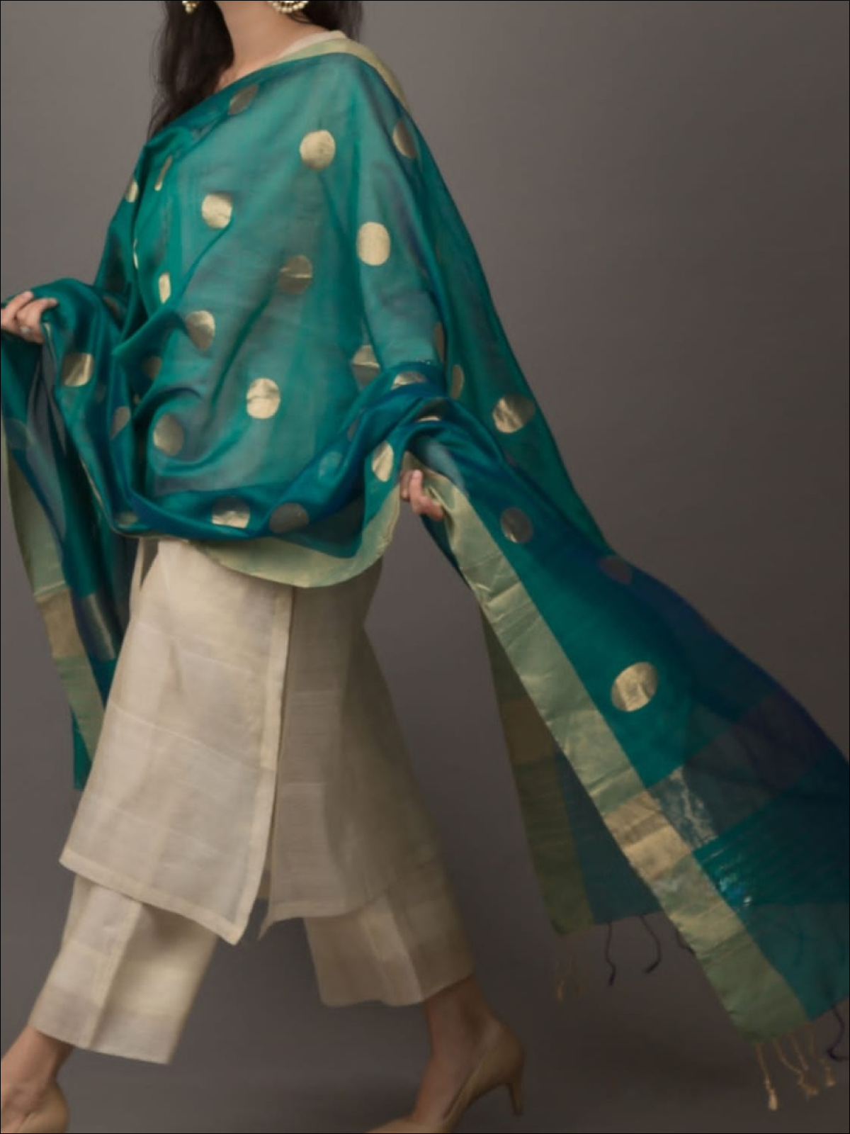 Light Green Hand Painted Floral Anarkali Kurta Pant Set With Dupatta