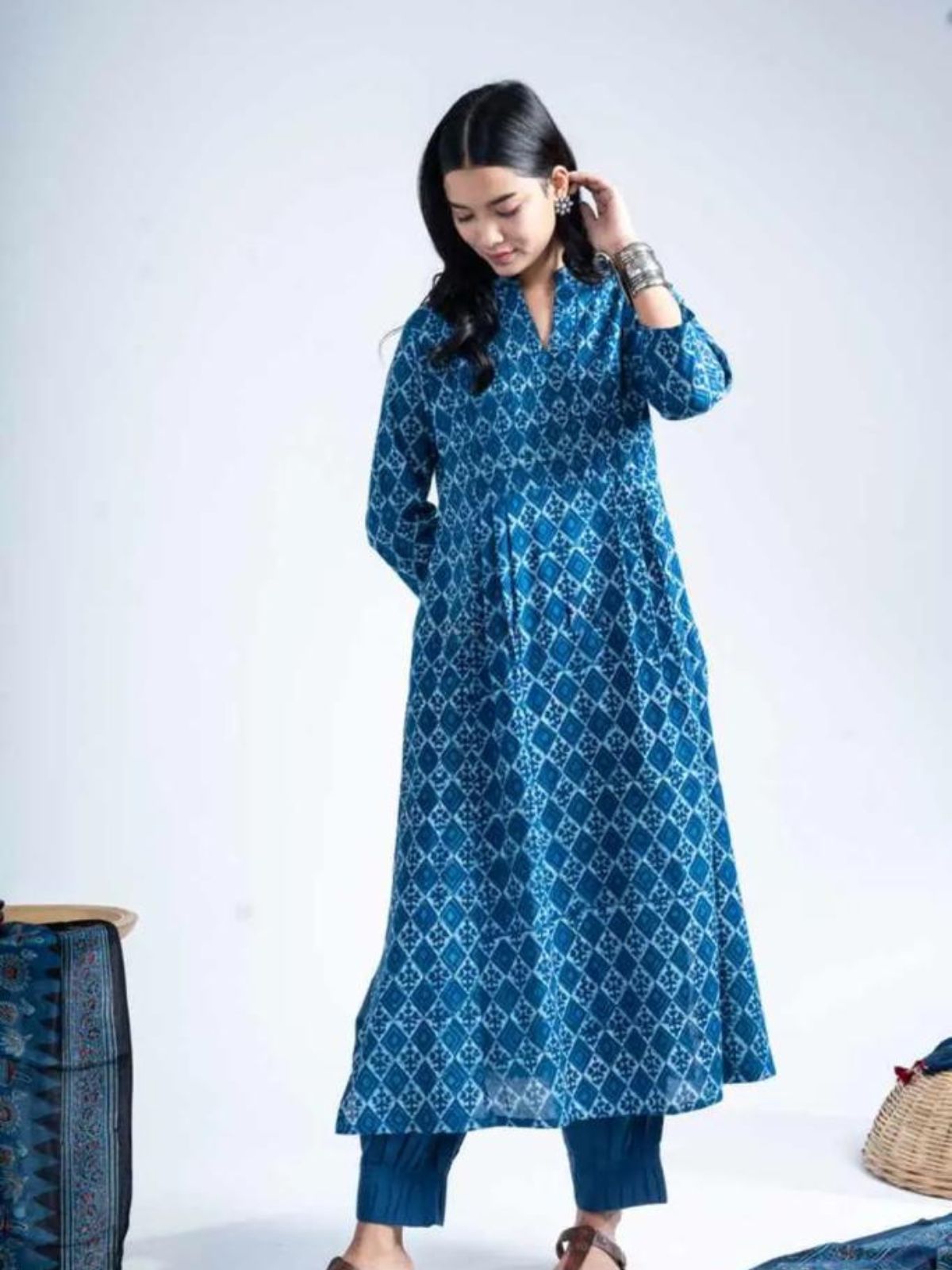 Printed Cotton Mirror Work Kurta