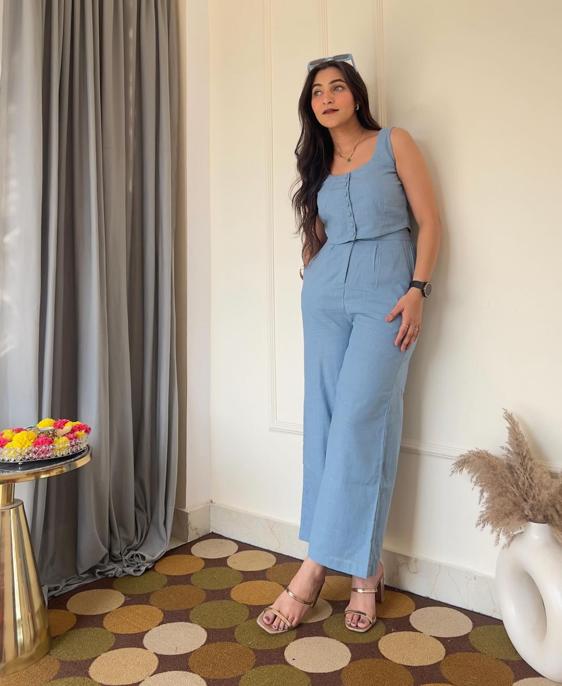 IT'S NOT JUST A SET, IT’S A STYLE ADVENTURE. PICTURE YOURSELF IN THE COTTON SLUB BLUE DAZZLE IT'S NOT JUST AN OUTFIT, IT'S A MOOD. PERFECT FOR THOSE DAYS WHEN YOU WANT TO FEEL EFFORTLESSLY FABULOUS. THE MATCHING TOP IS THE BOSS OF CASUAL CHIC