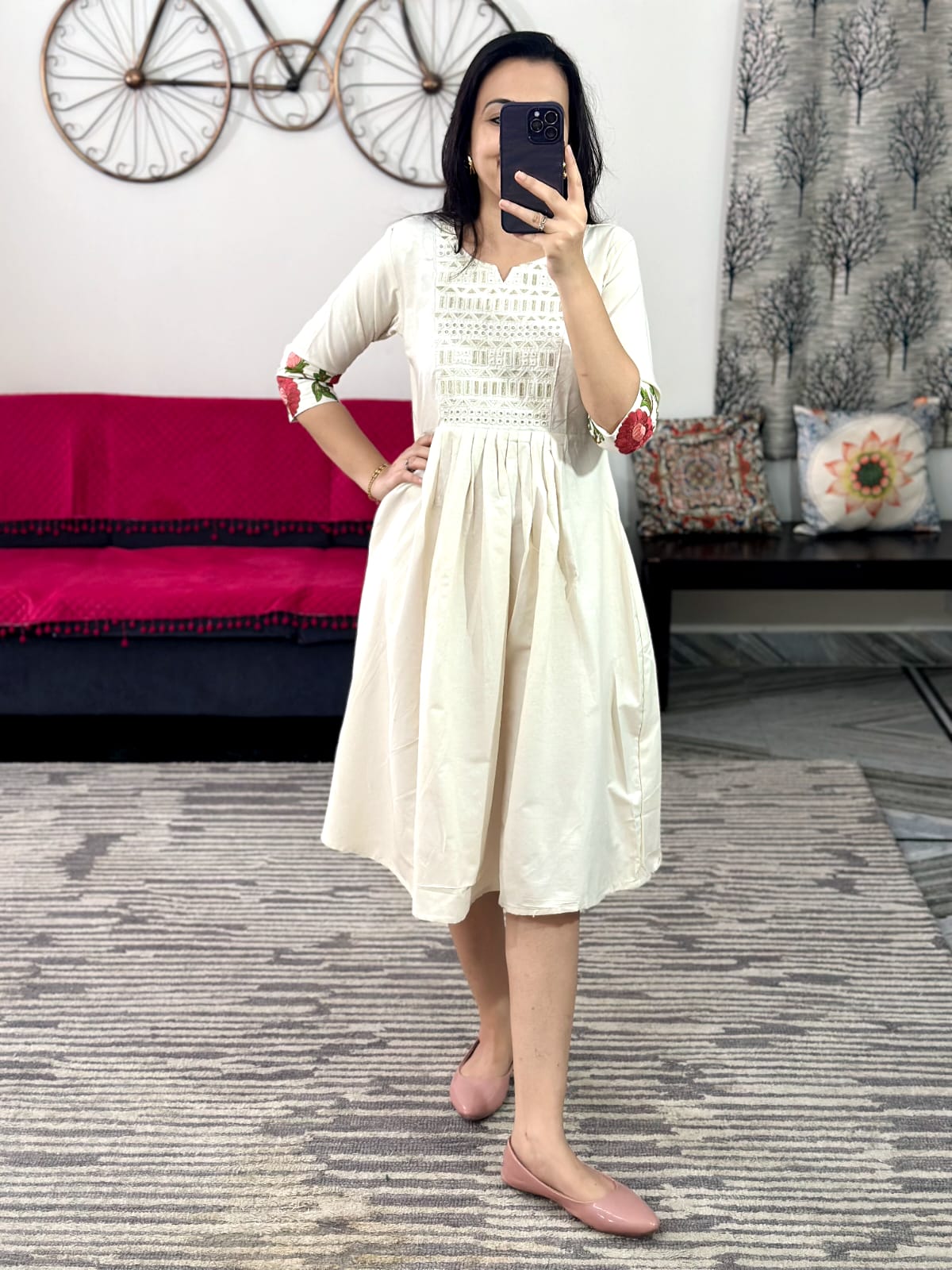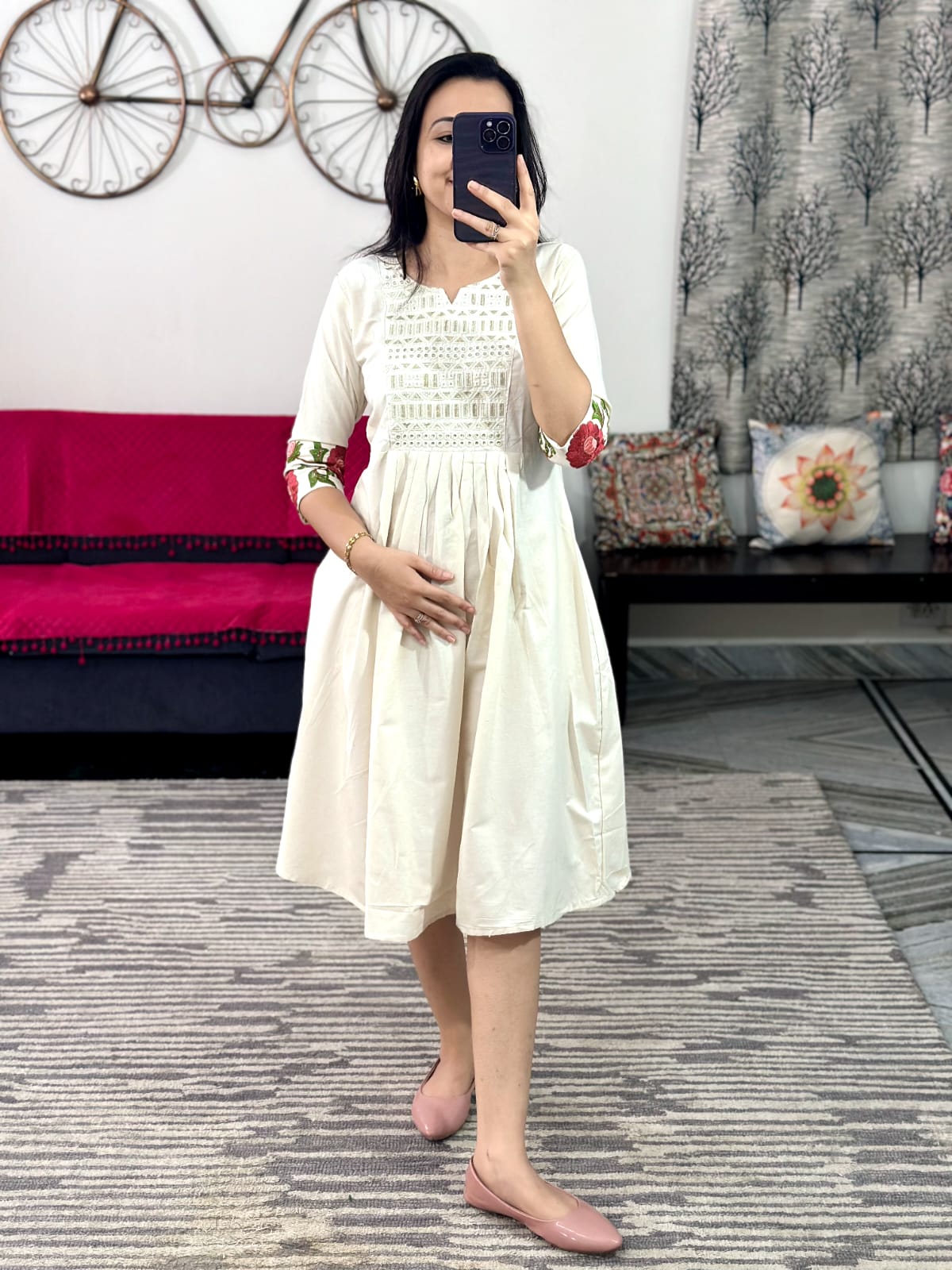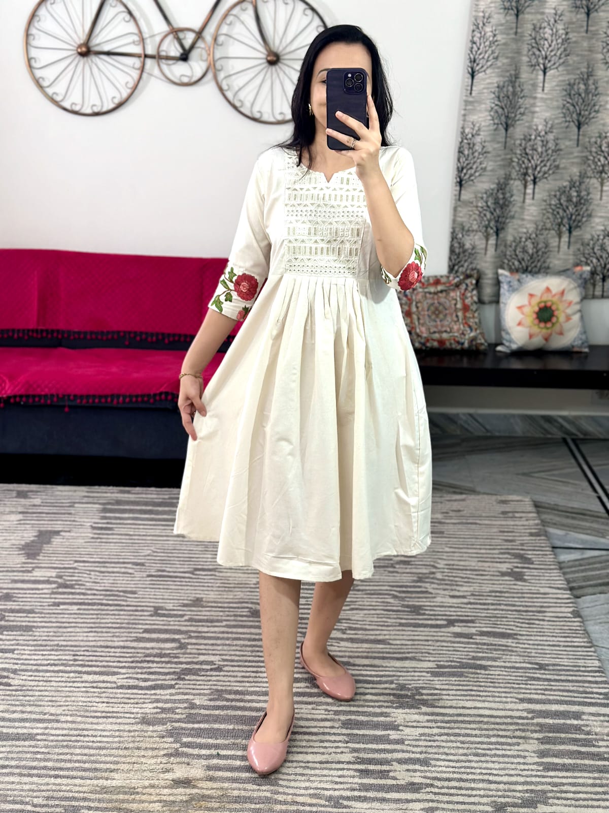Cotton fabric stylish & very comfortable midi dress with embroidery work
