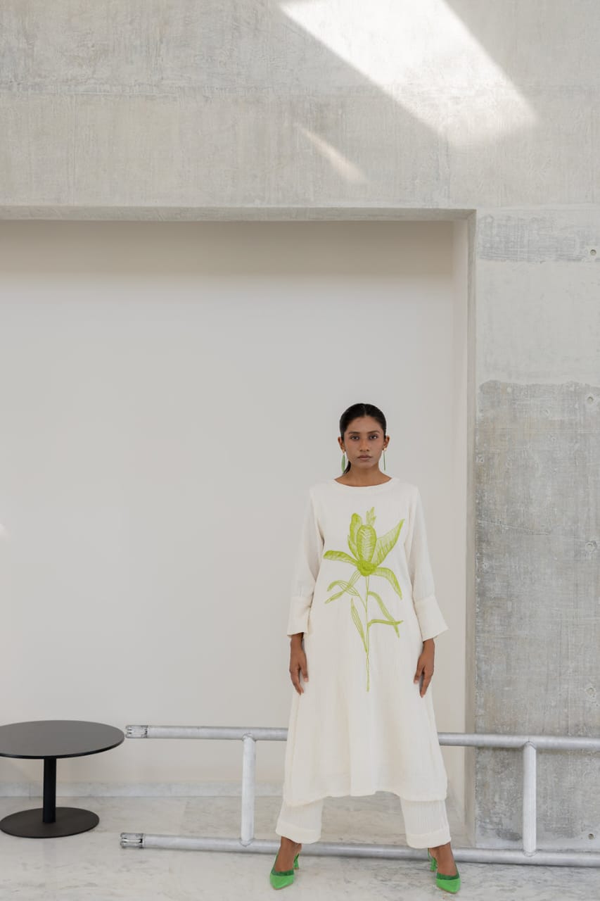 This embroidered leaf print outfit combines intricate design with elegance, making it a perfect choice for formal events. The hand-stitched details add a touch of luxury to any occasion. Its unique style and craftsmanship are sure to make a statement, setting you apart from the rest.