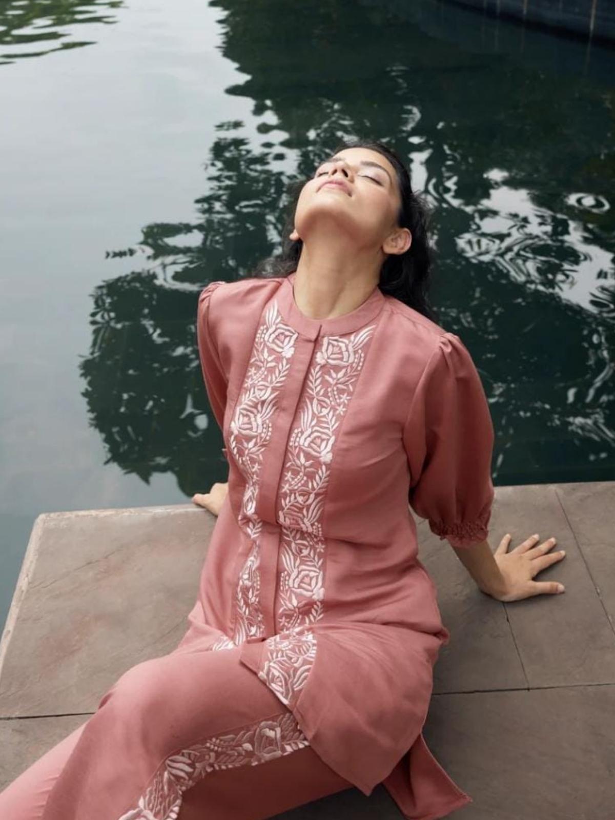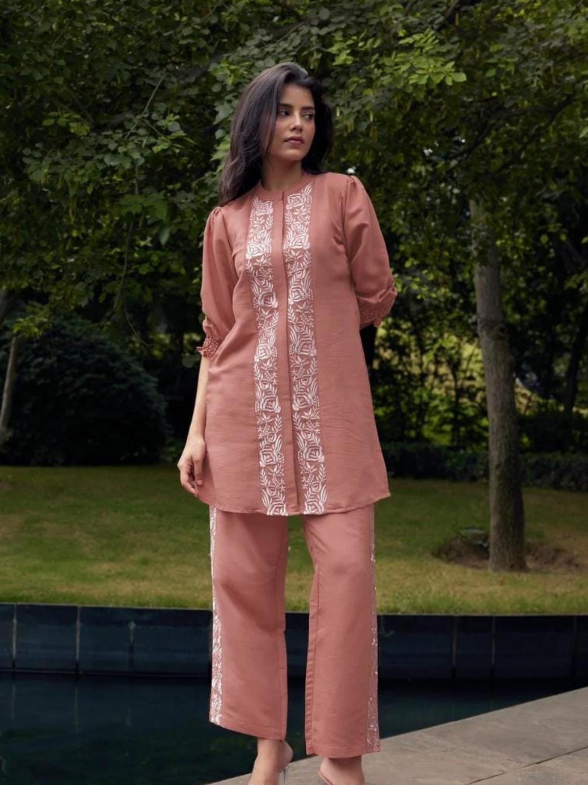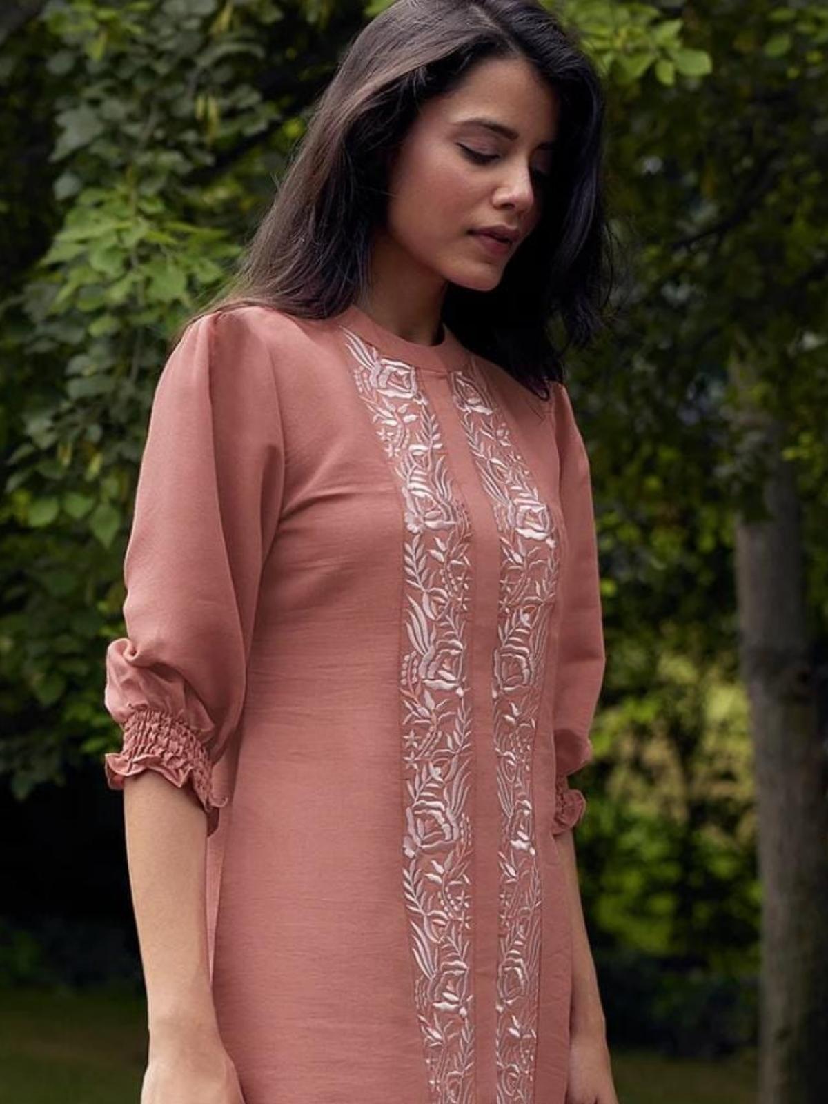 Elevate your style with this stunning puffed sleevees kurta with a beautiful embroidery. This outfit is crafted to make you stand out in any occasion.