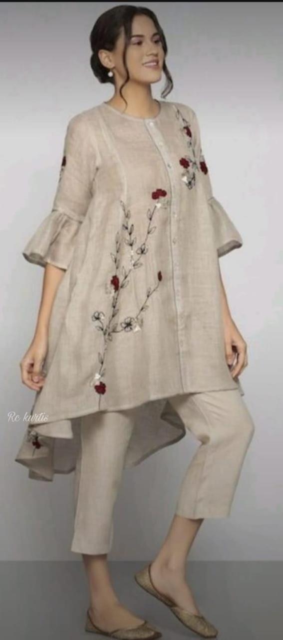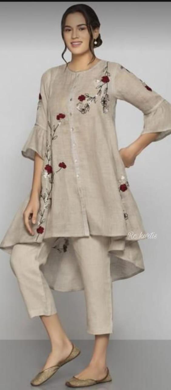 Our latest Gorgeous premium quality high low tunic set with heavy hand embroidery with high ankle length pant.