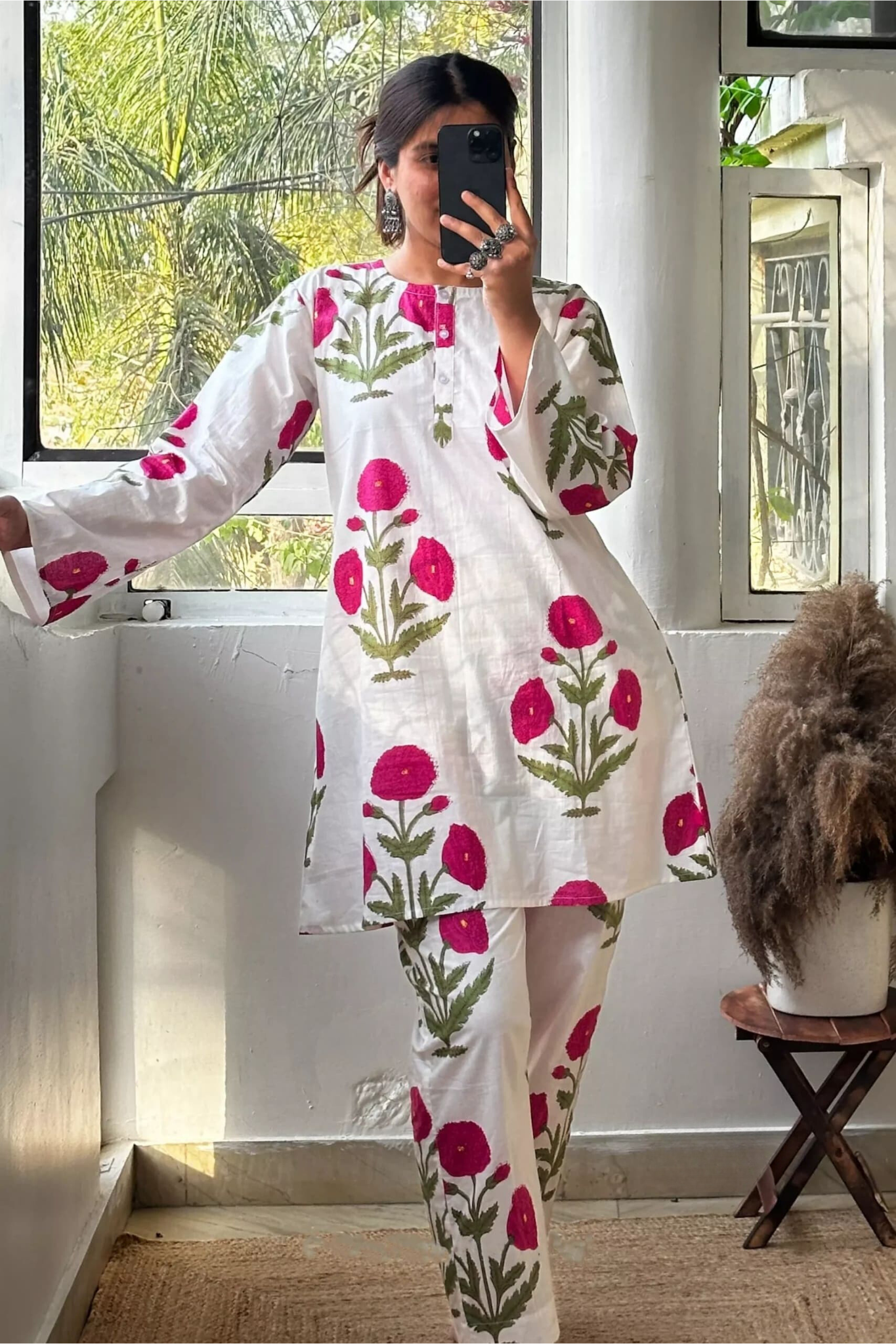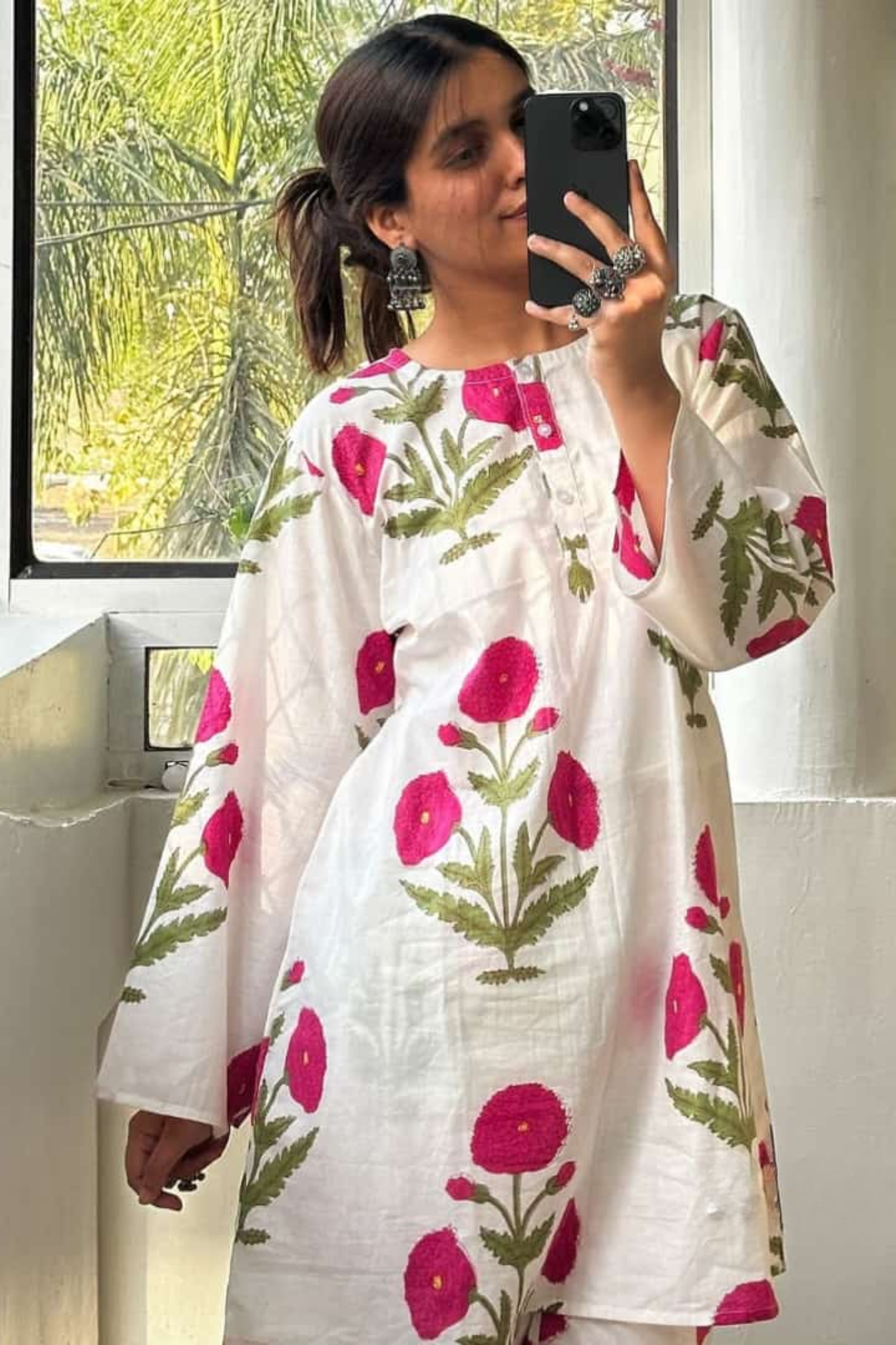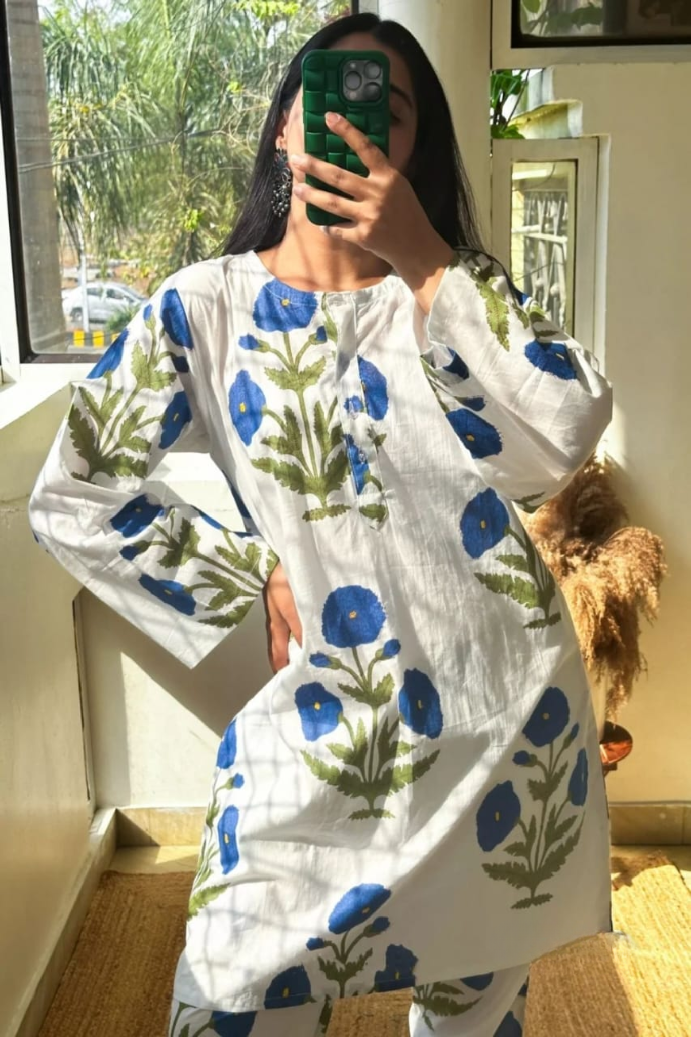 Beat the heat in style in our  Handblocked Mughal printed Co-ord set.100 percent pure cotton co-ord set.Cotton is breathable, lightweight, and perfect for keeping cool while still looking stylish.