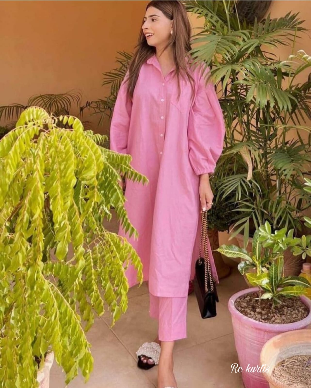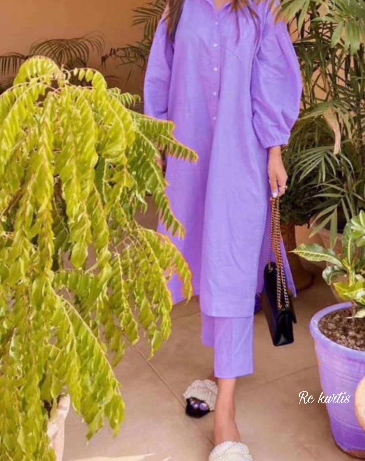 Collar style kurta with 2 openable button and stylish balloon sleeves and Elastic on arm . Kurta has gathers on shoulder.