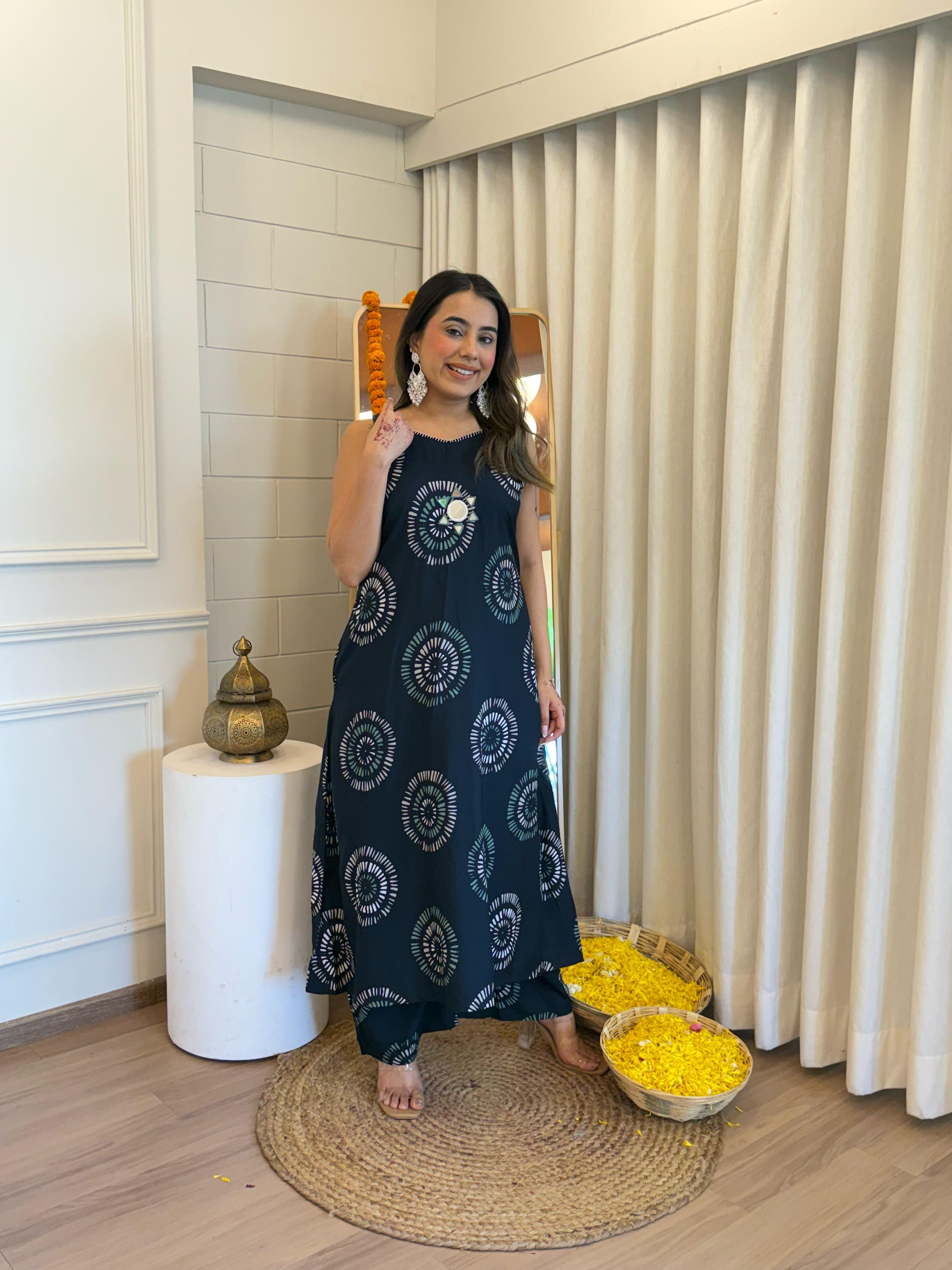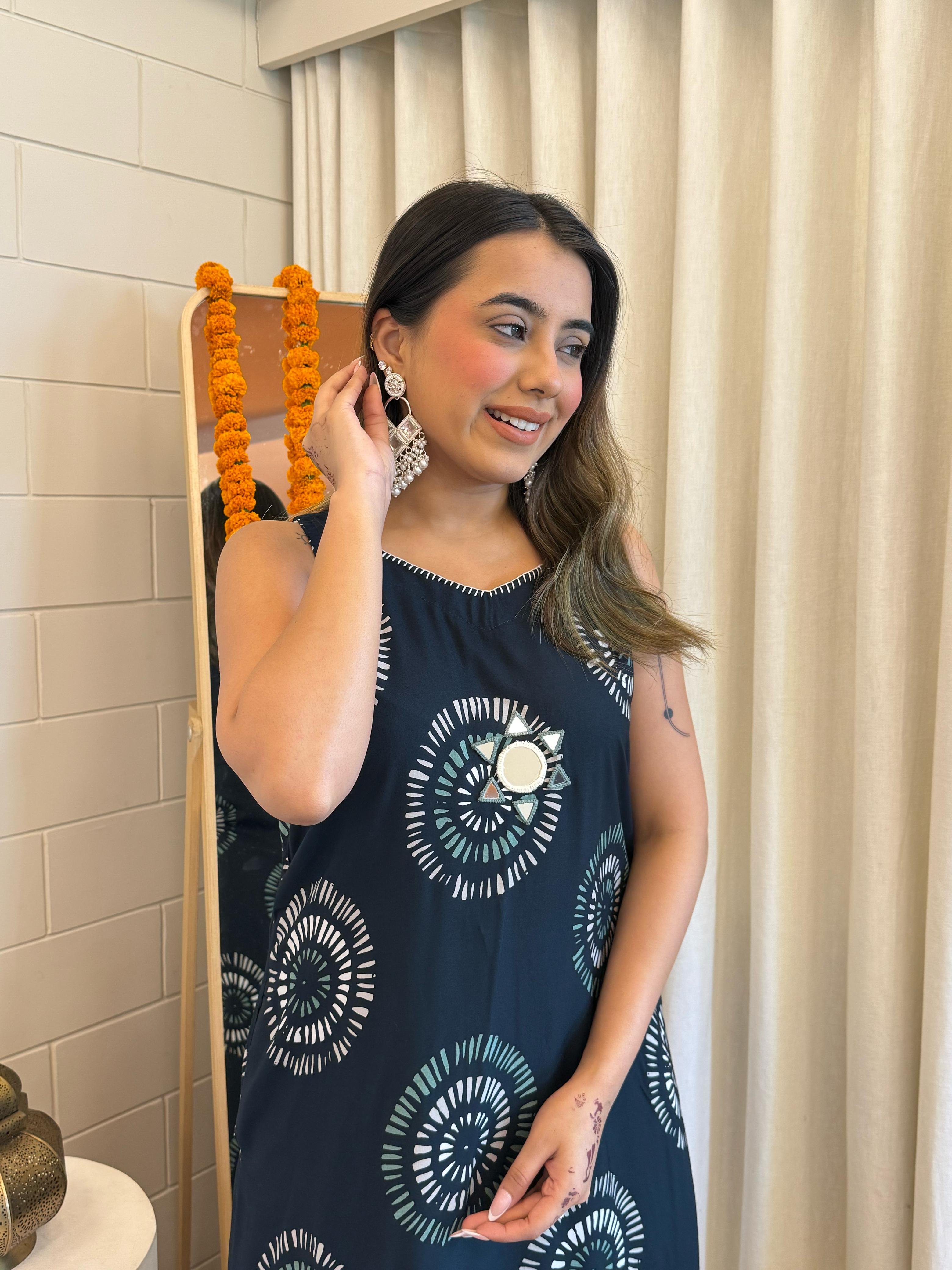 Launching beautiful Ready to Wear Kurti Palazzo set in Premium Katha Fabric with REAL MIRROR work detailed with Tagai work on Neckline with pocket in kurti paired with Palazzo*l*
