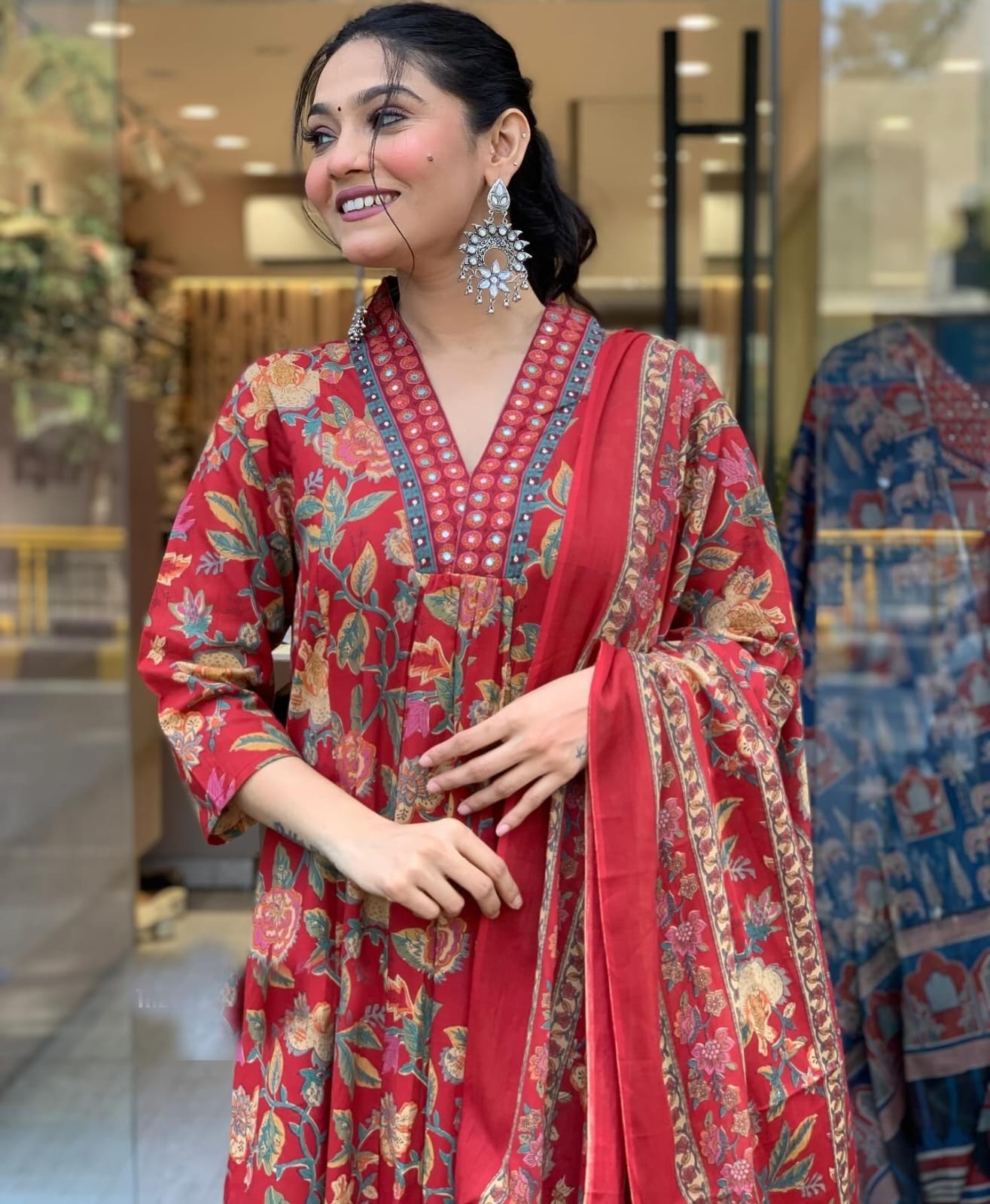 Beautiful cotton anarkali kurta suit set with flair