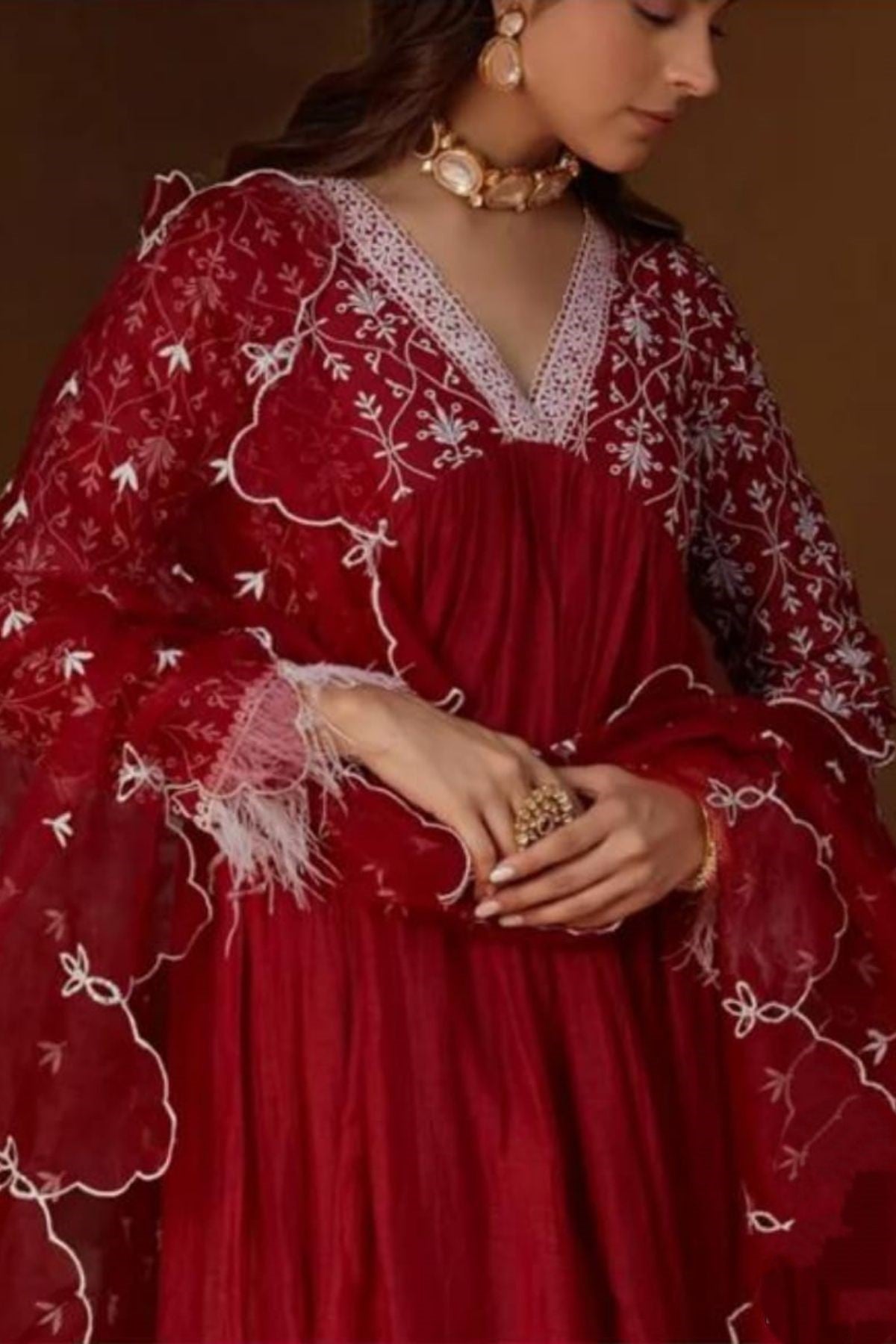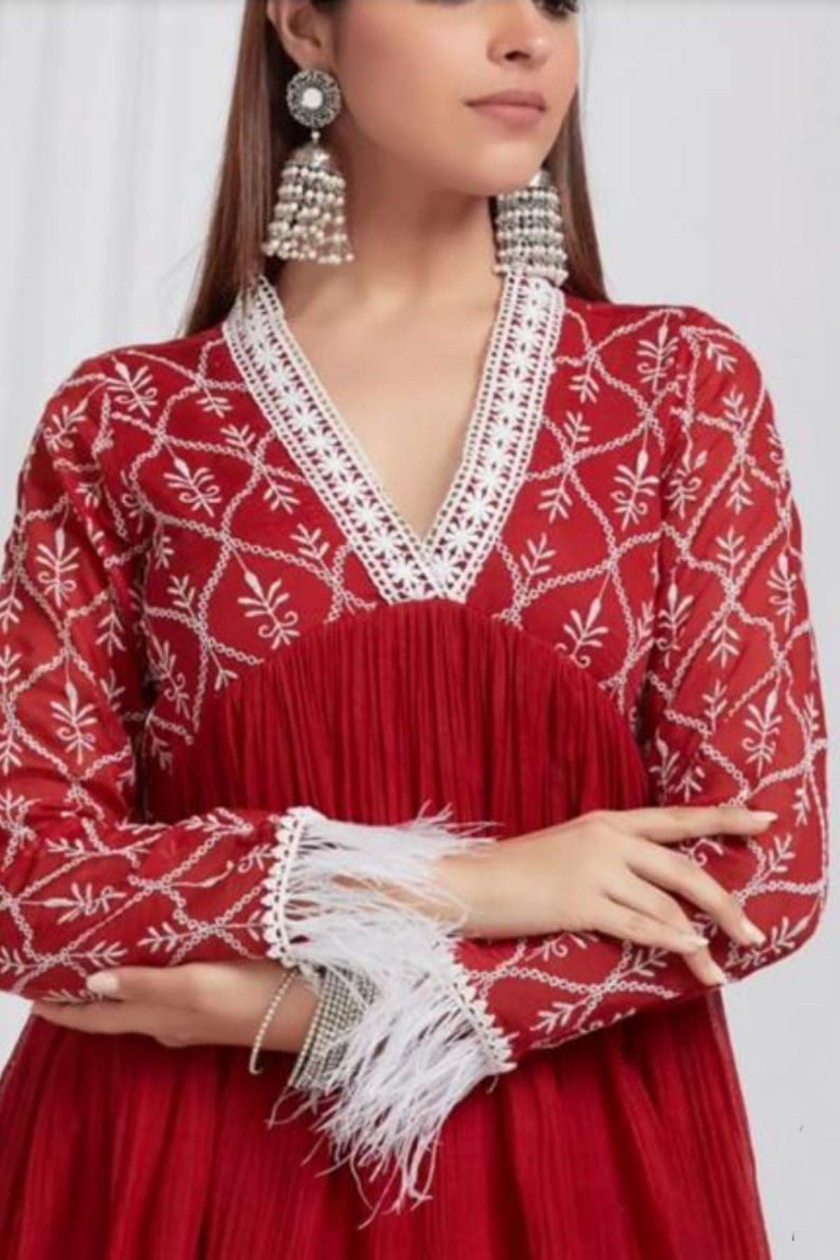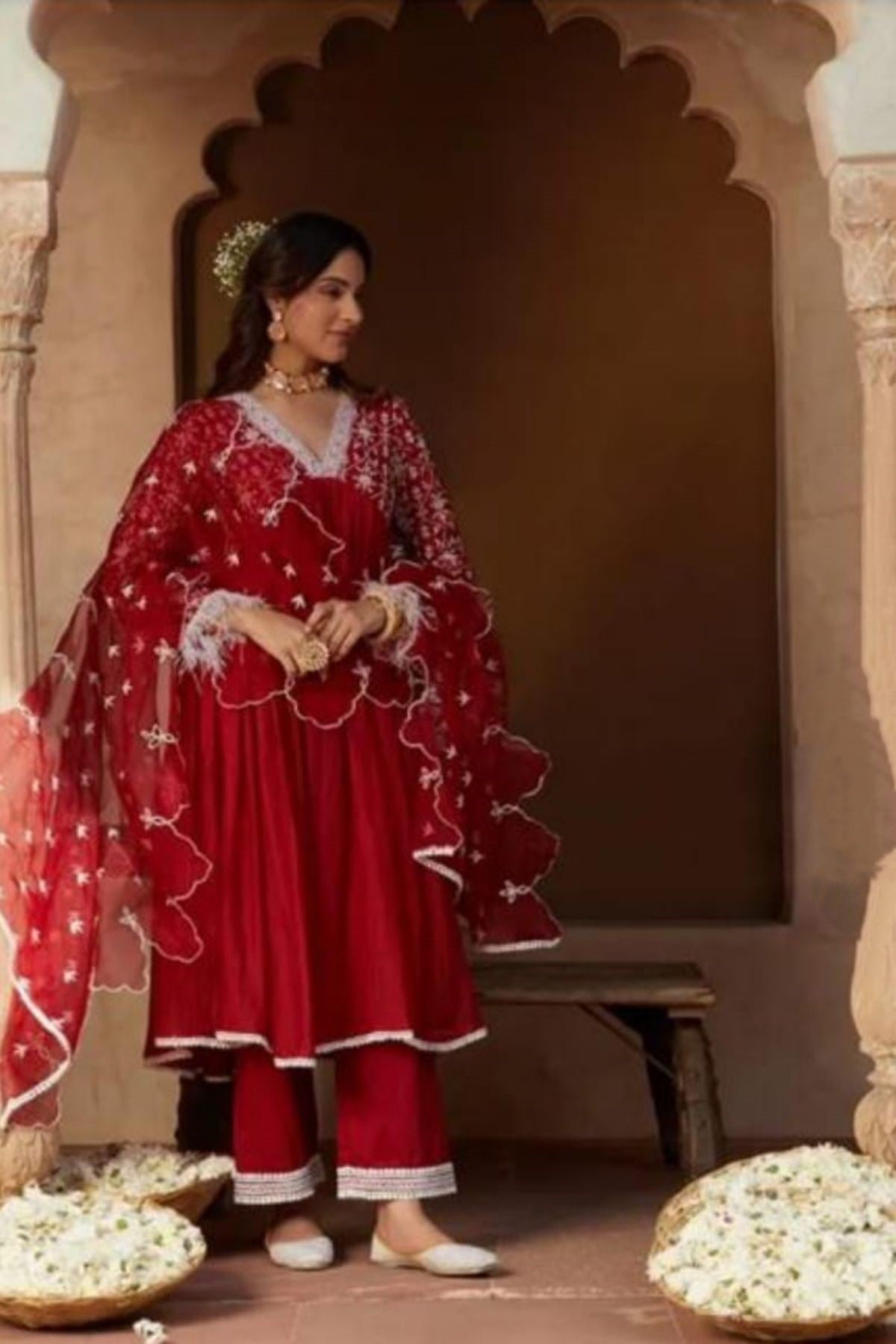 Pure viscose Chanderi Kurta with cotton Pants. Curated in premium quality silk chanderi fabric full sleeves, lace detailing at overall