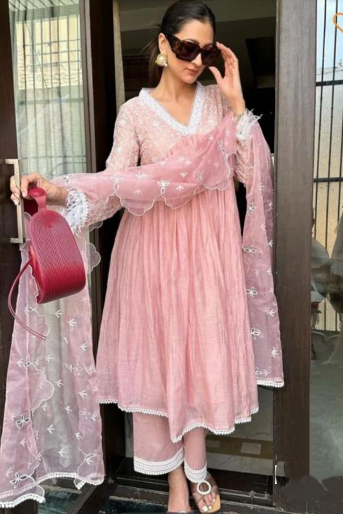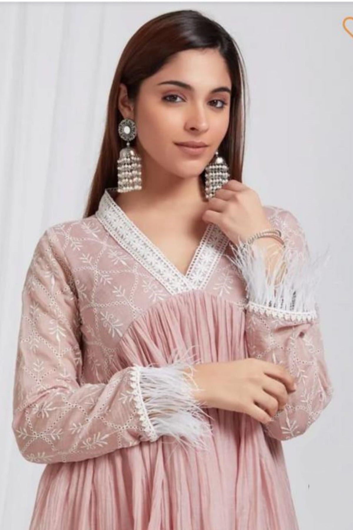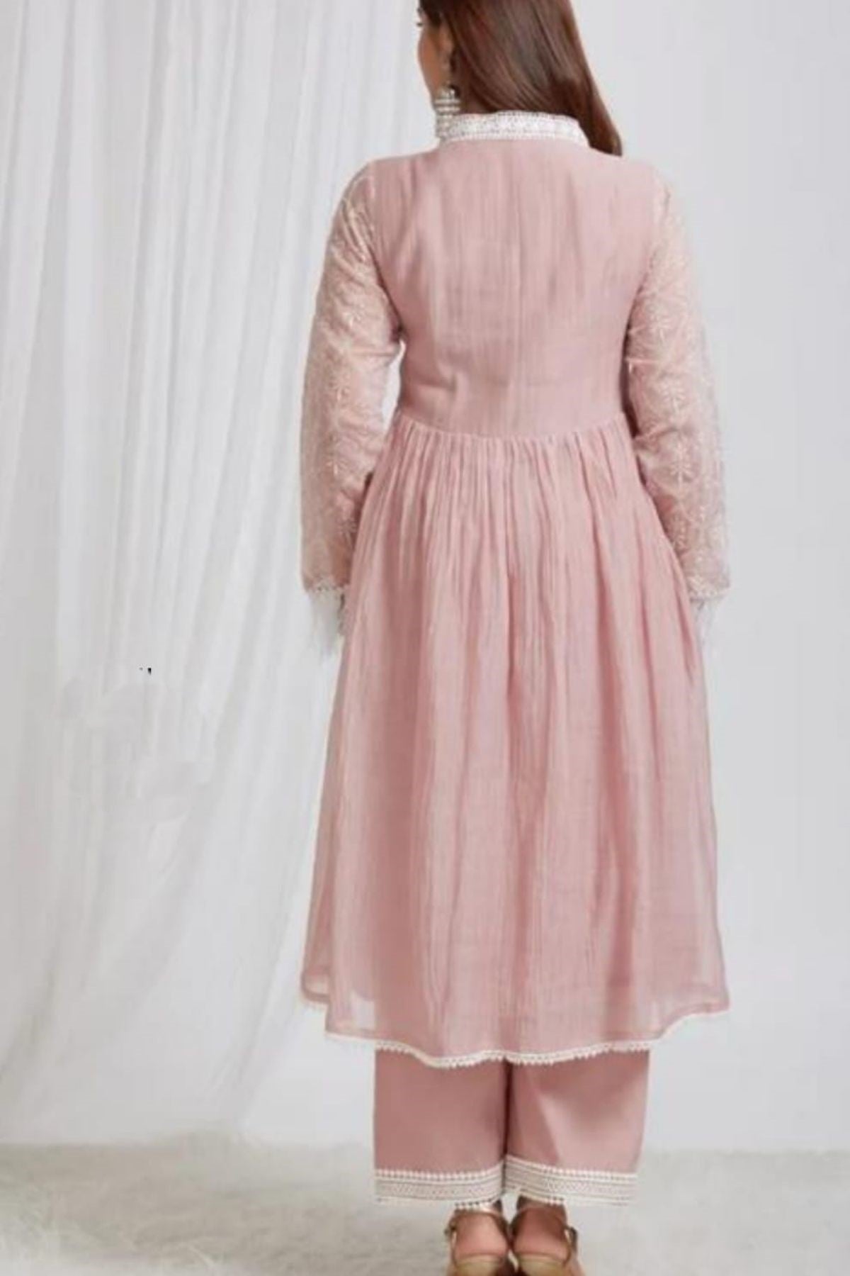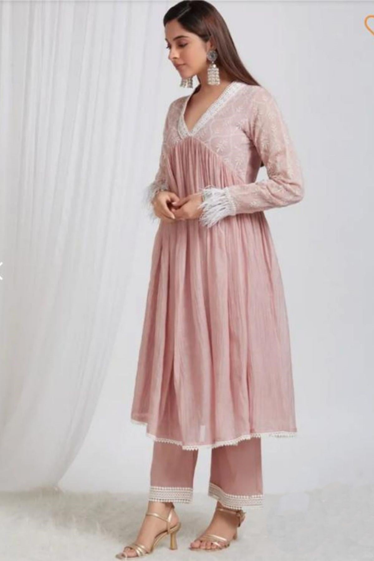 The kurta comes with an attached mulmul lining. The pants in pure cotton feature lace at the bottom, an elasticated front nd back . Style this ensemble with a statement pearl set and box heels,