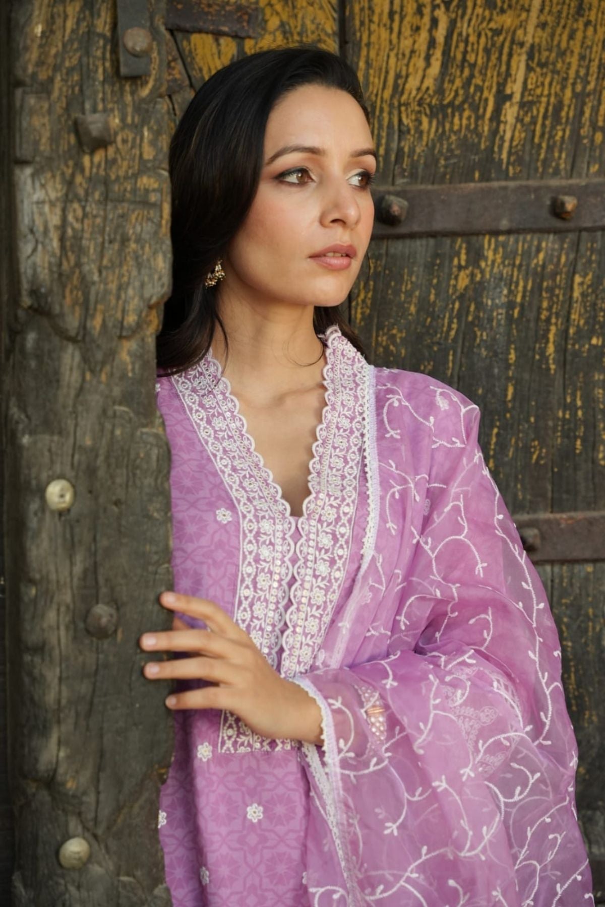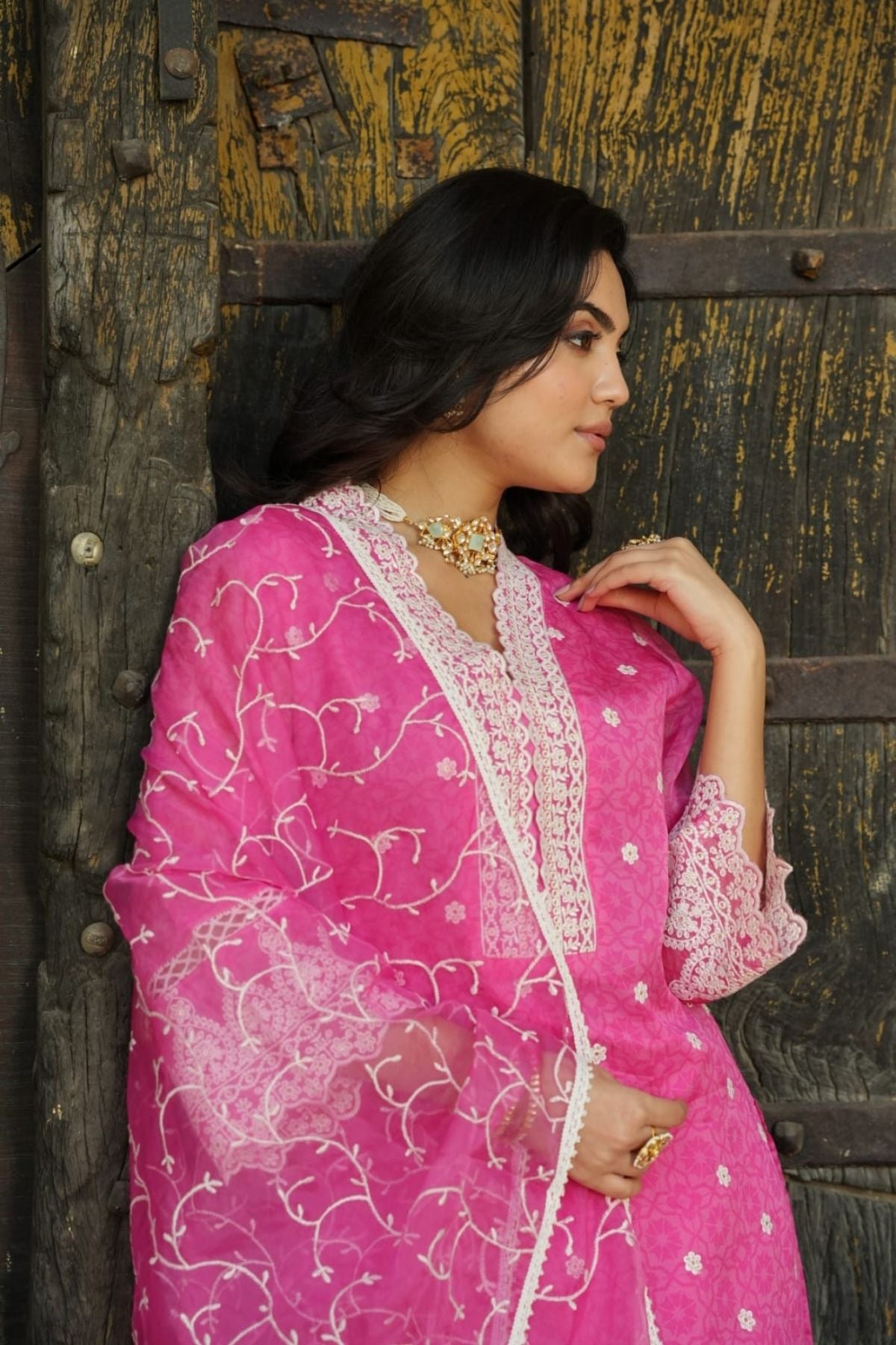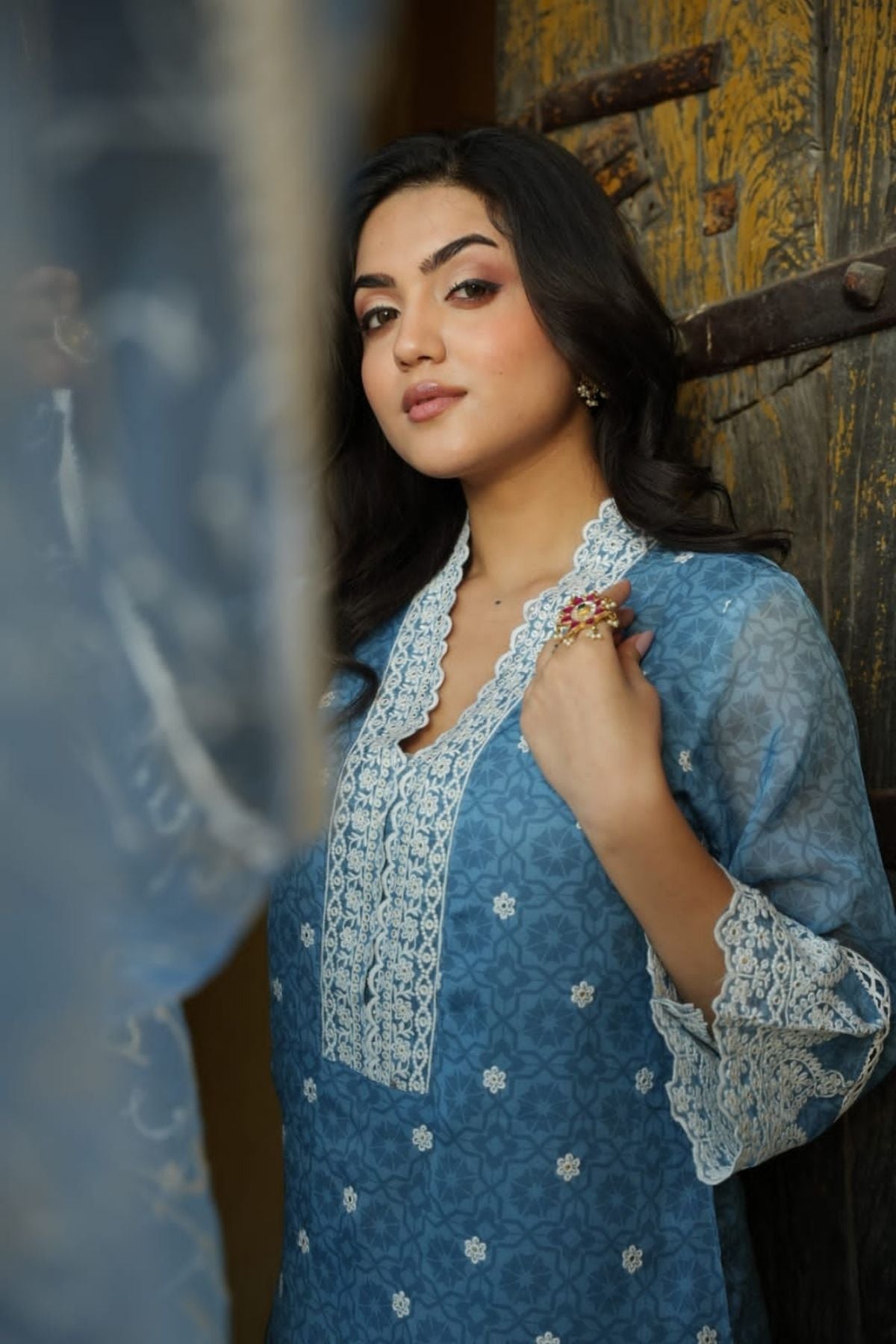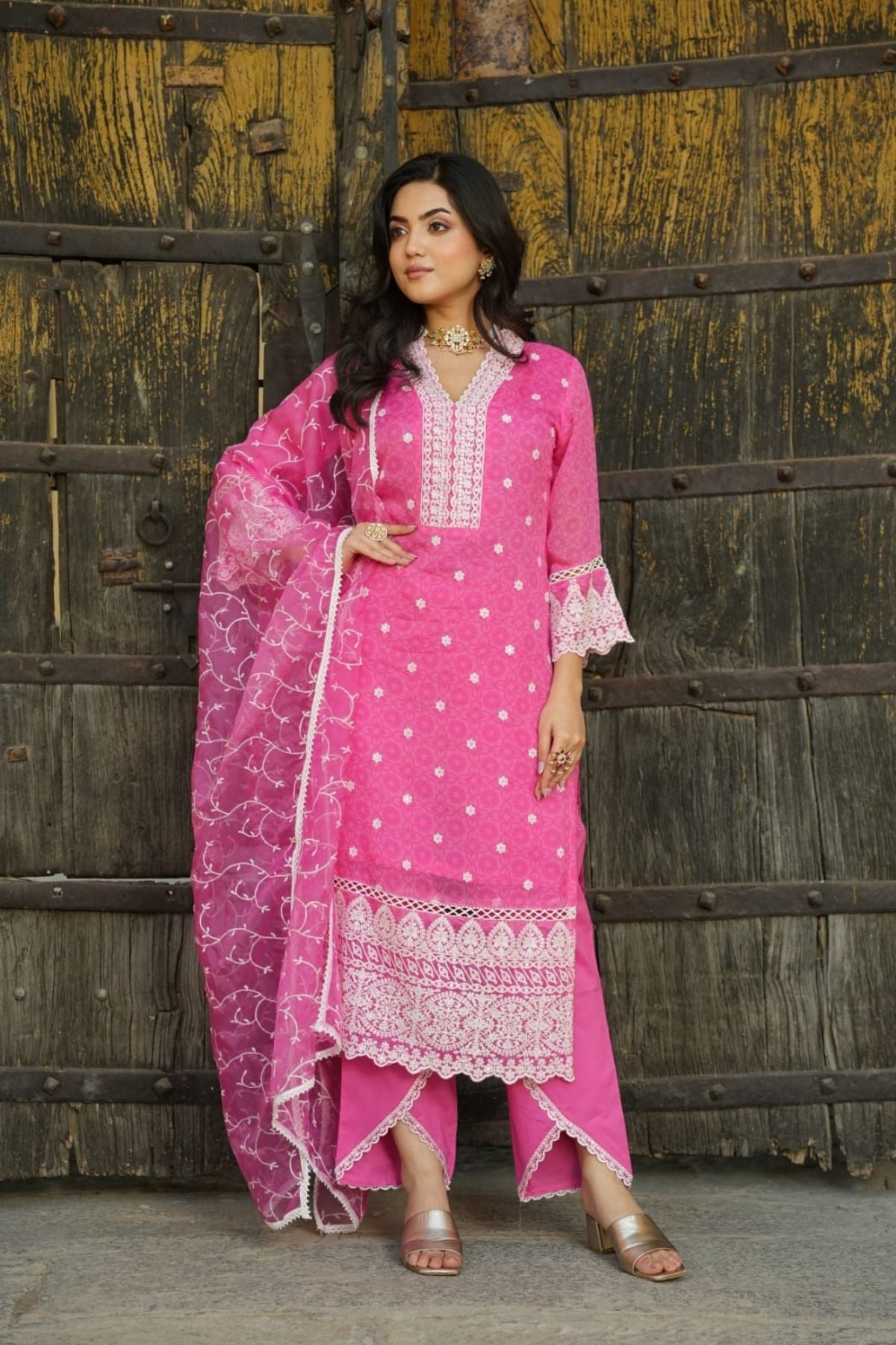 Organza beautiful straight dress with heavy embroidery  with duppatta and stylish pants.