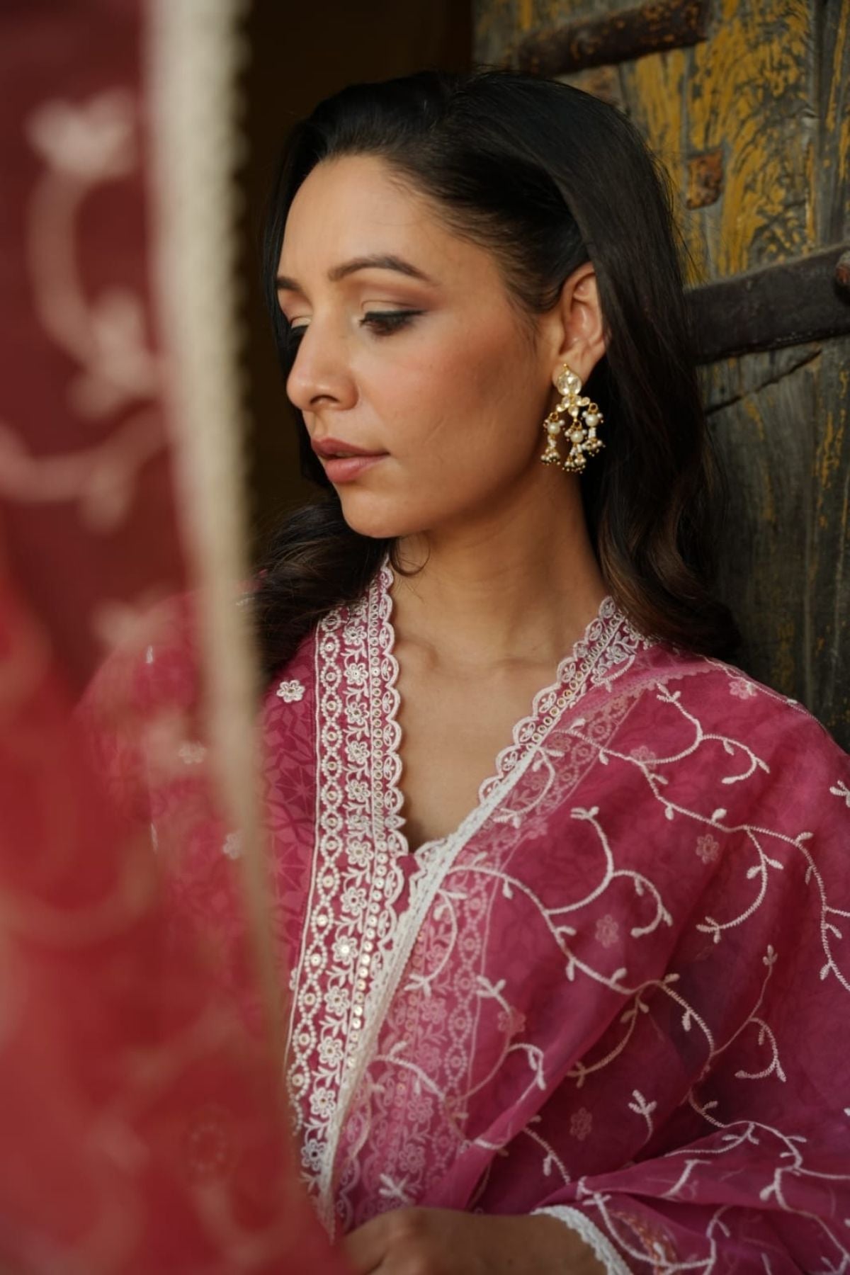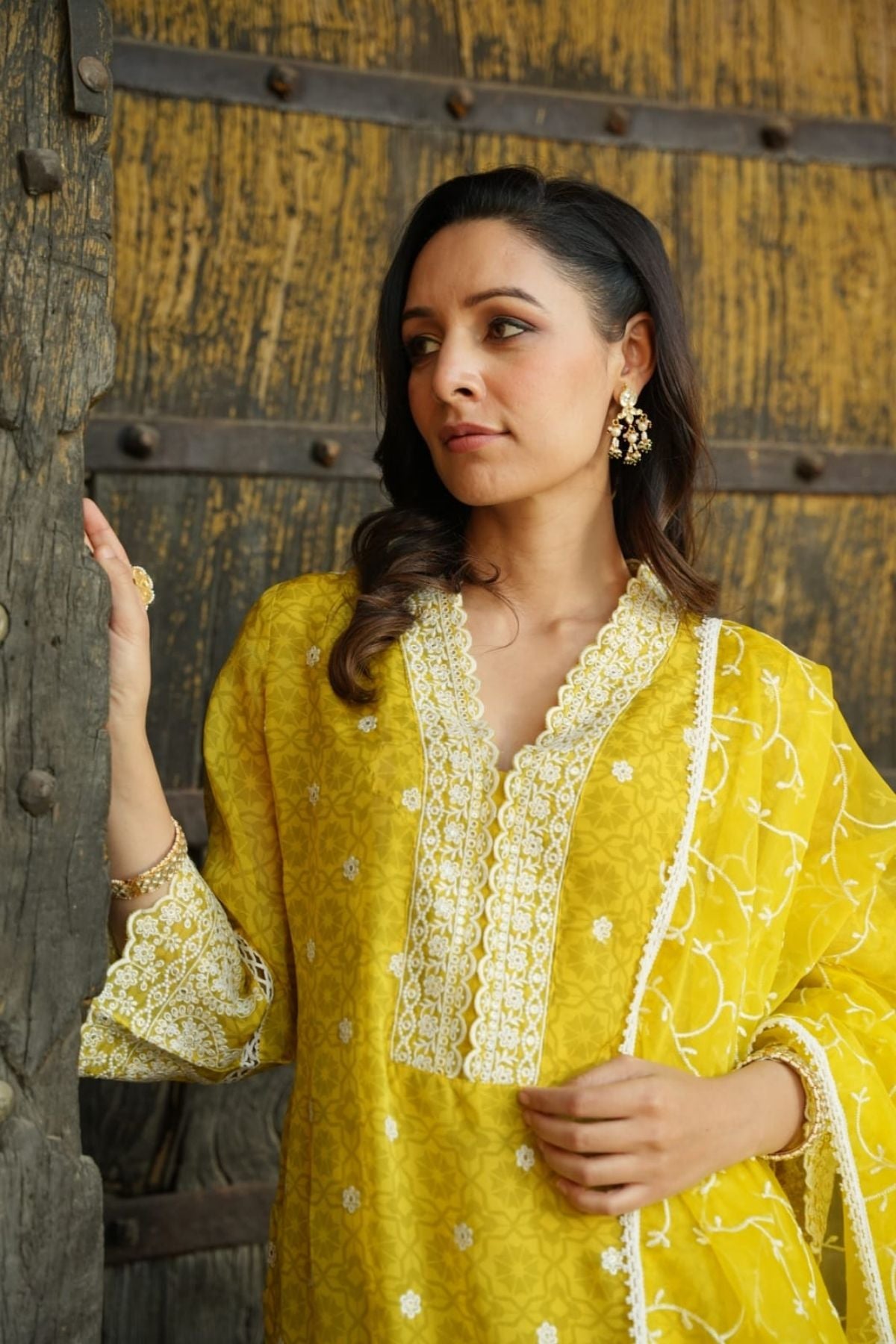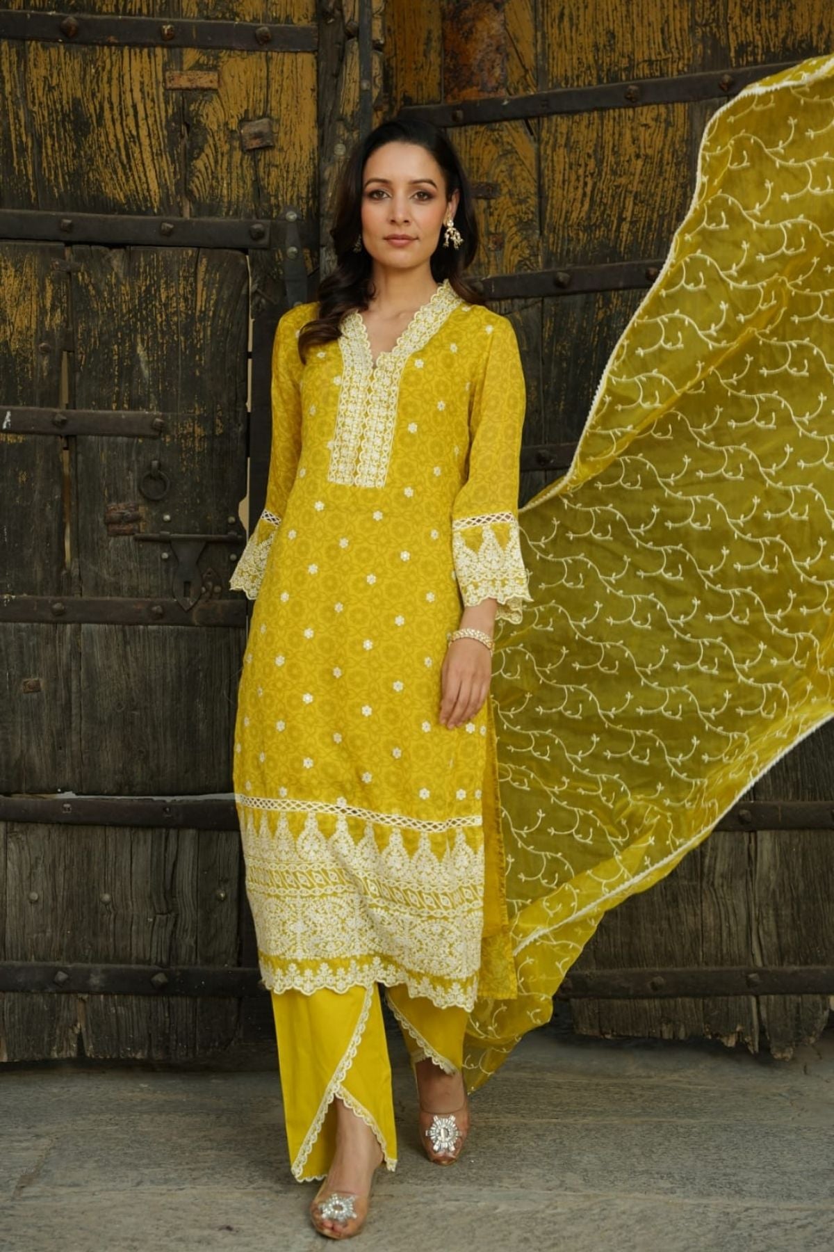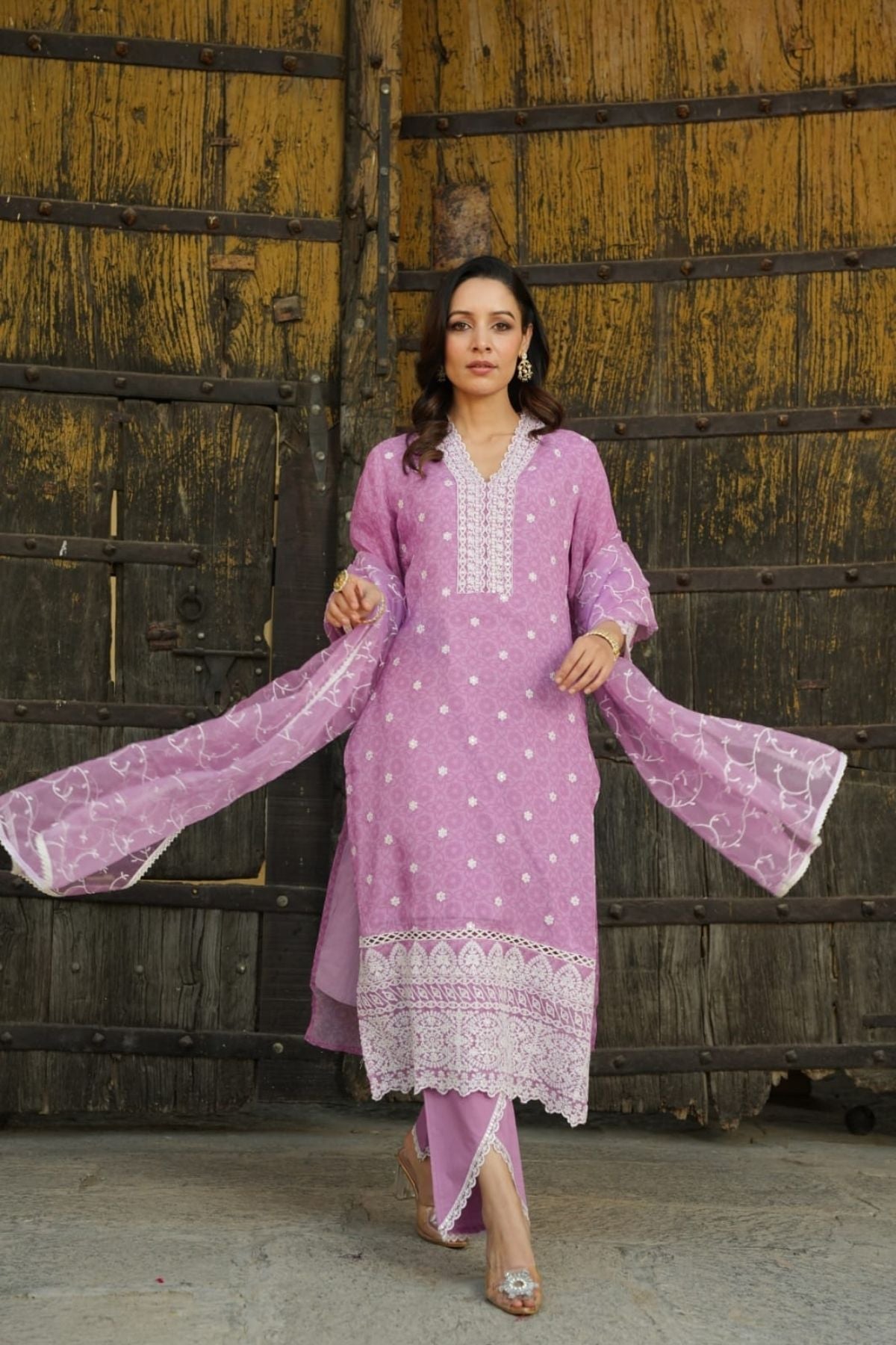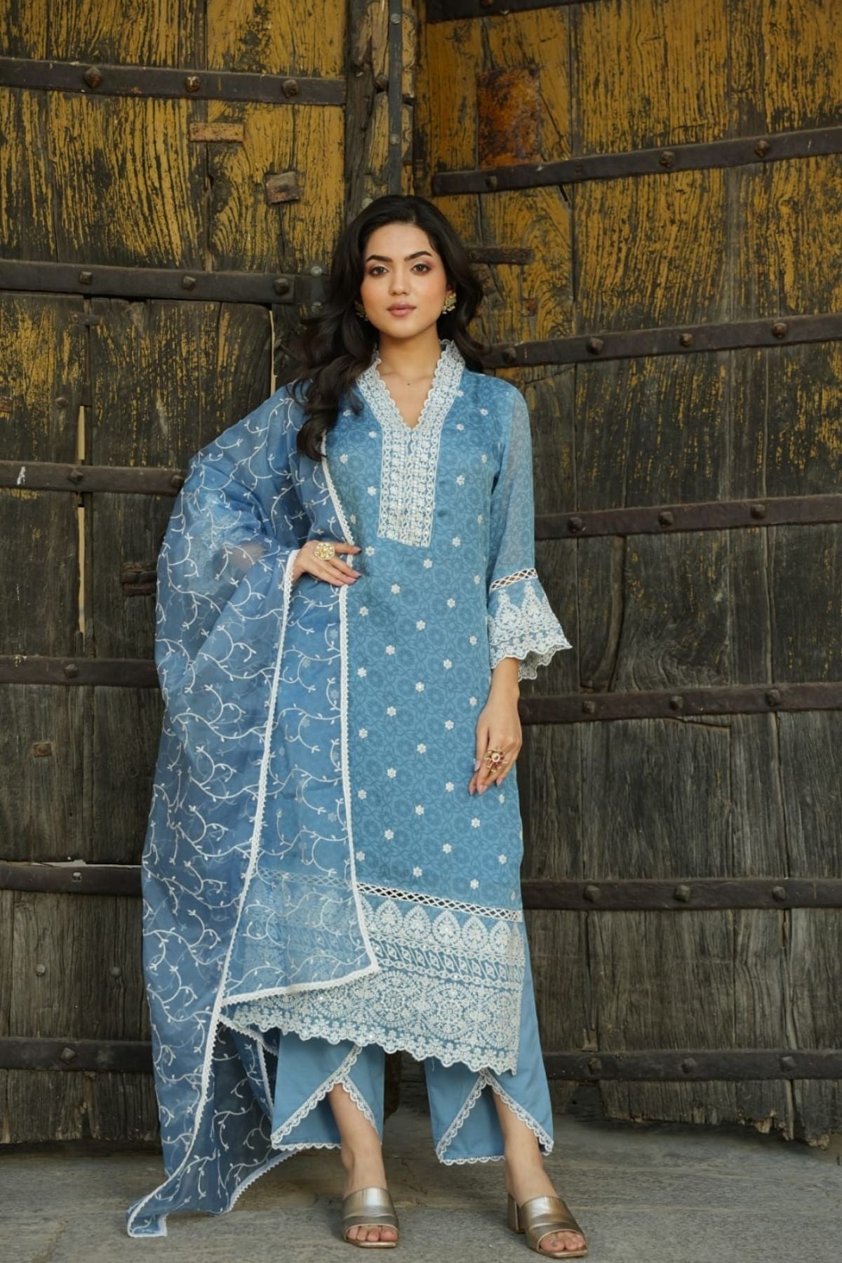 Organza beautiful straight dress with heavy embroidery  with duppatta and stylish pants.