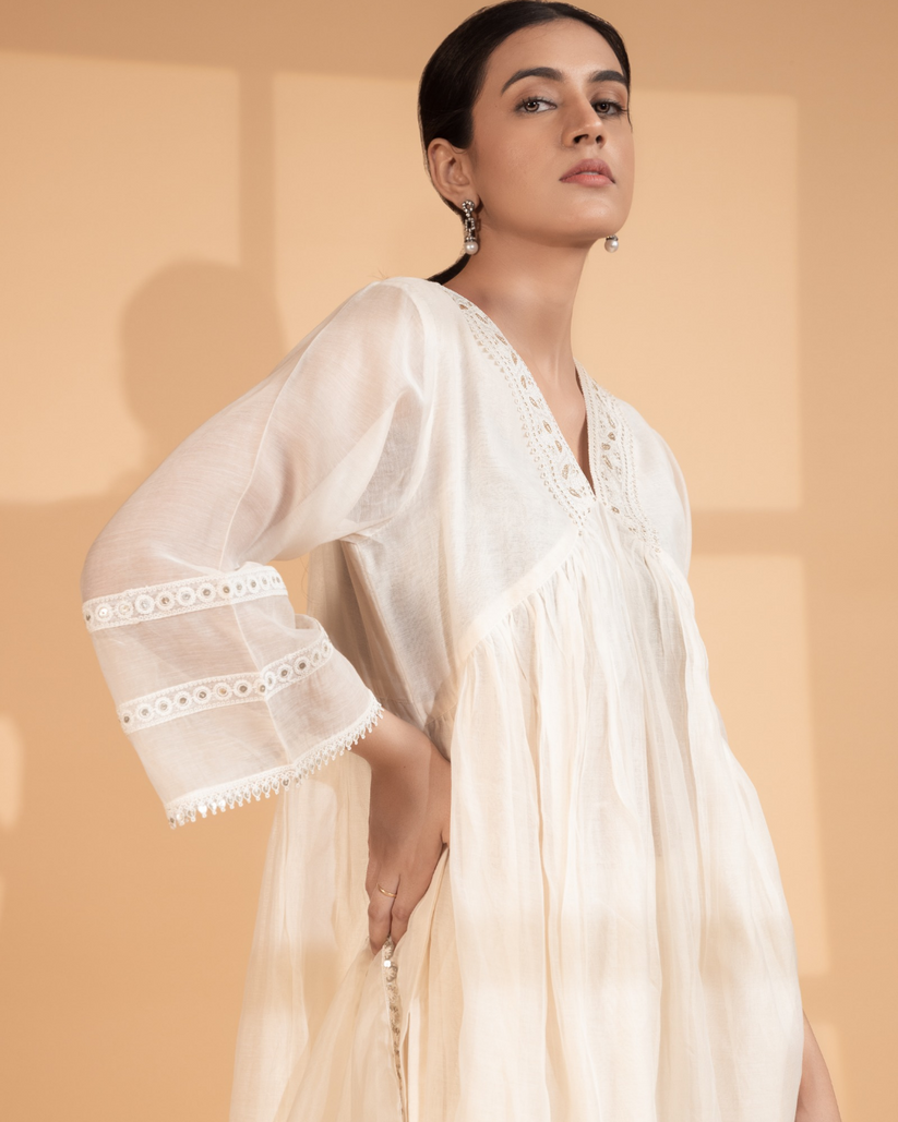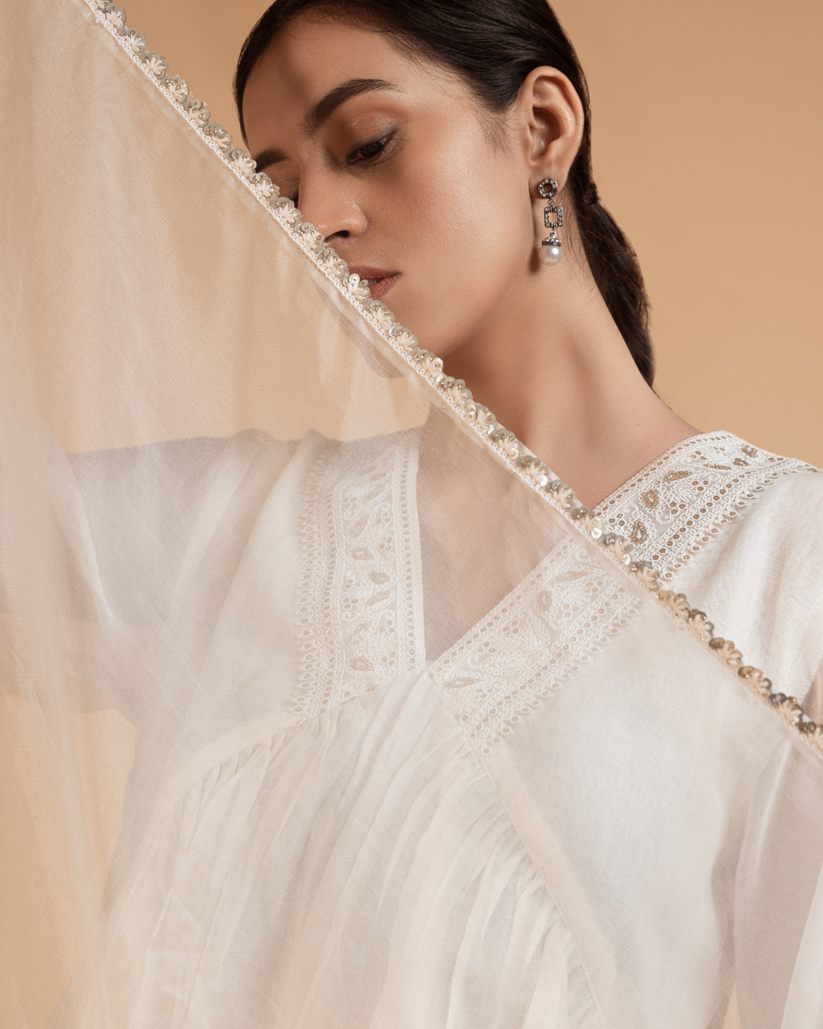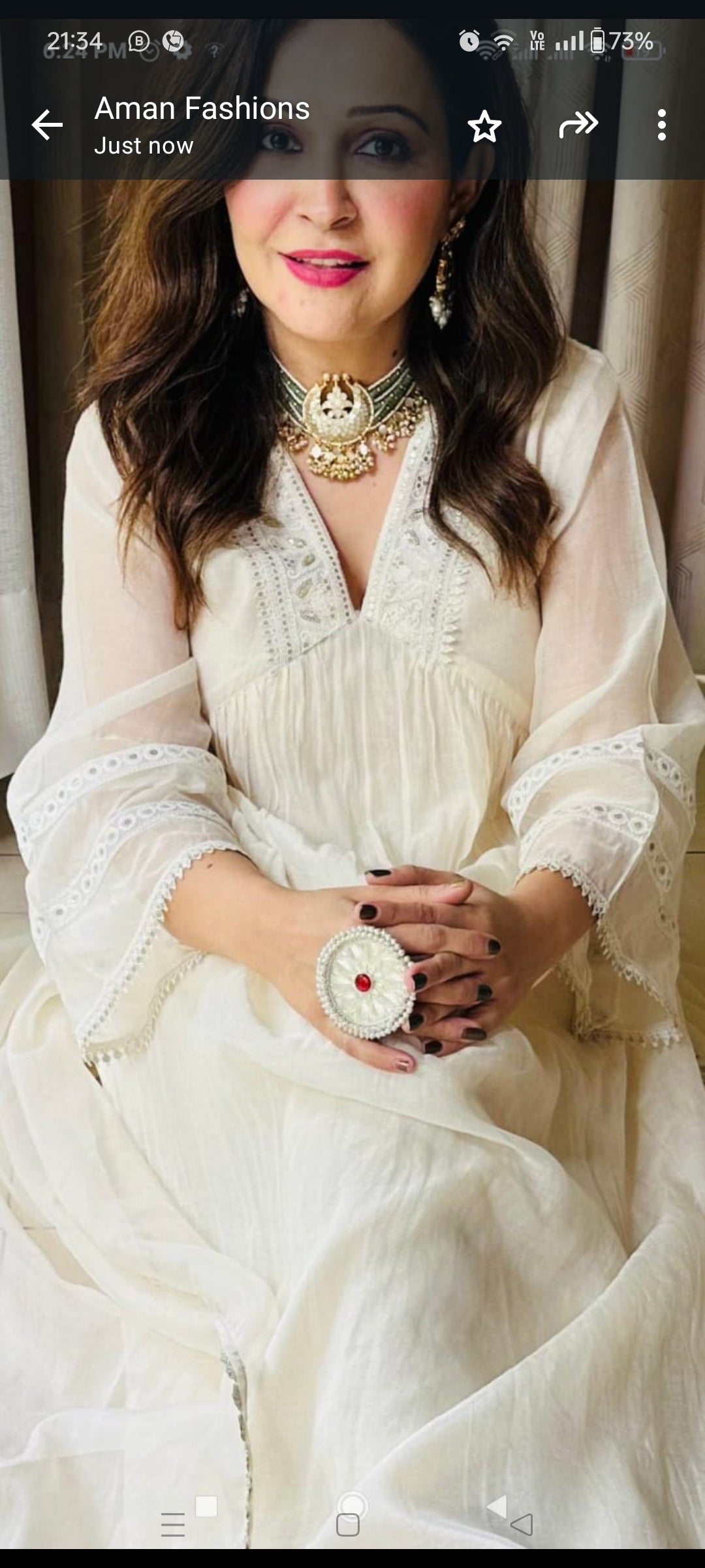 New designer embroidered Anarkali Gown Paired With Cotton Pant And Chanderi duppata set