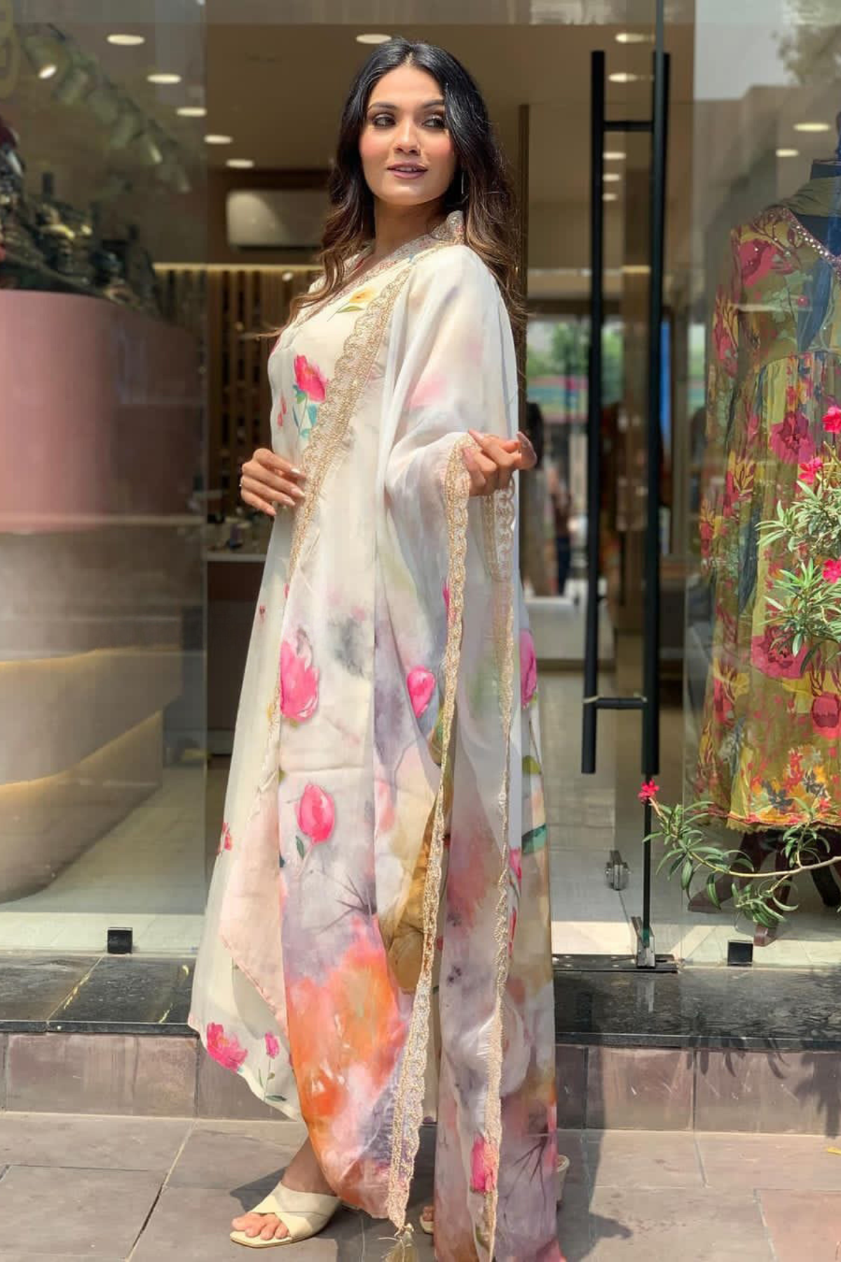 Shop our latest collection of chanderi suit with cotton lining , cotton pant with organza dupatta.The colour combination of this set will go with any of your day/night outing.