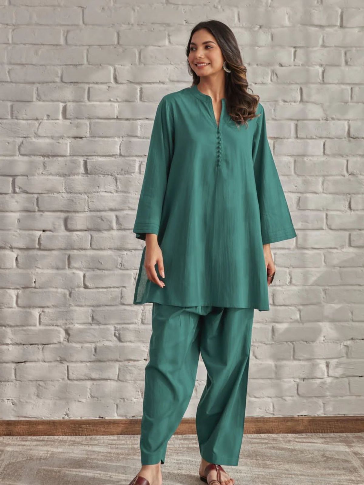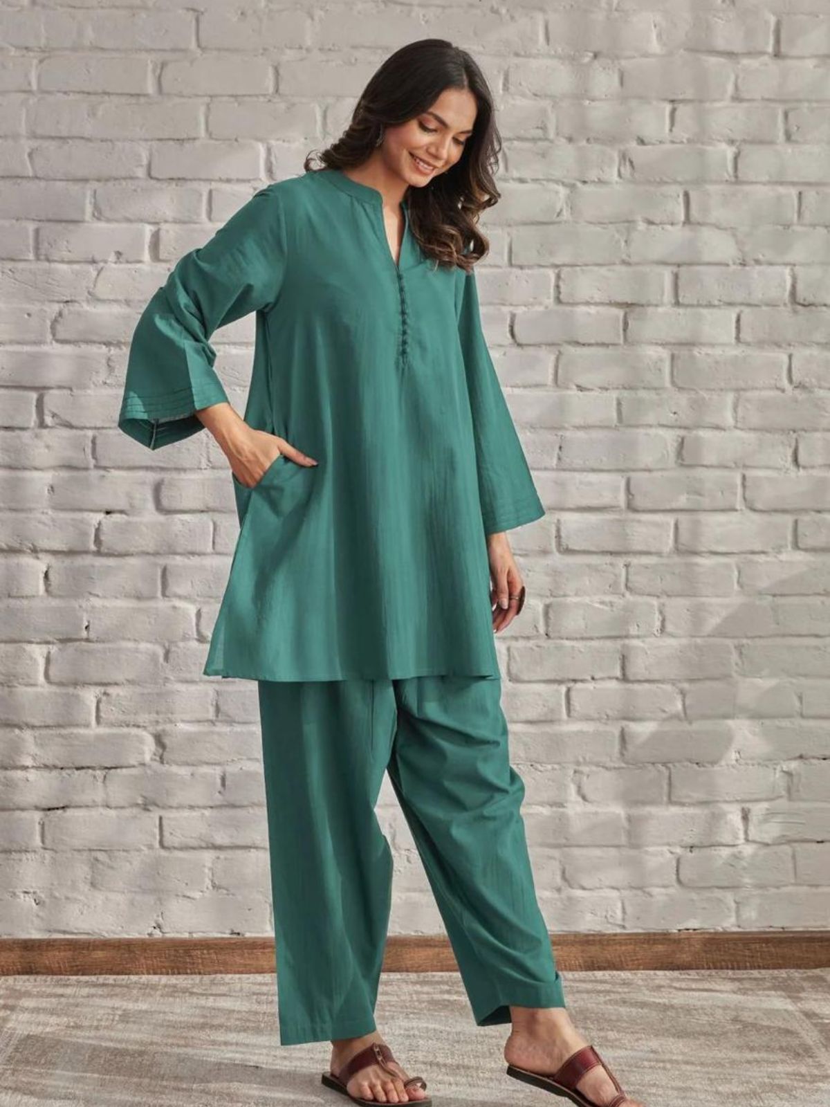 Introducing our Solid Colors Cotton Coord Set – a timeless classic for versatile elegance. This ensemble exudes sophistication in its simplicity, featuring a solid green hue that transce hiinds trends. Crafted from comfortable cotton, the set includes coordinated pieces for a effortlessly polished look