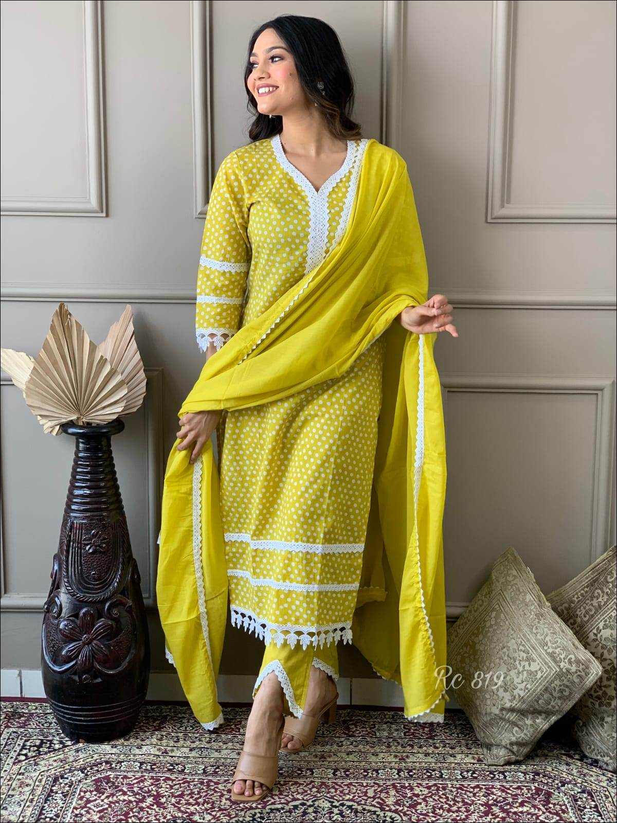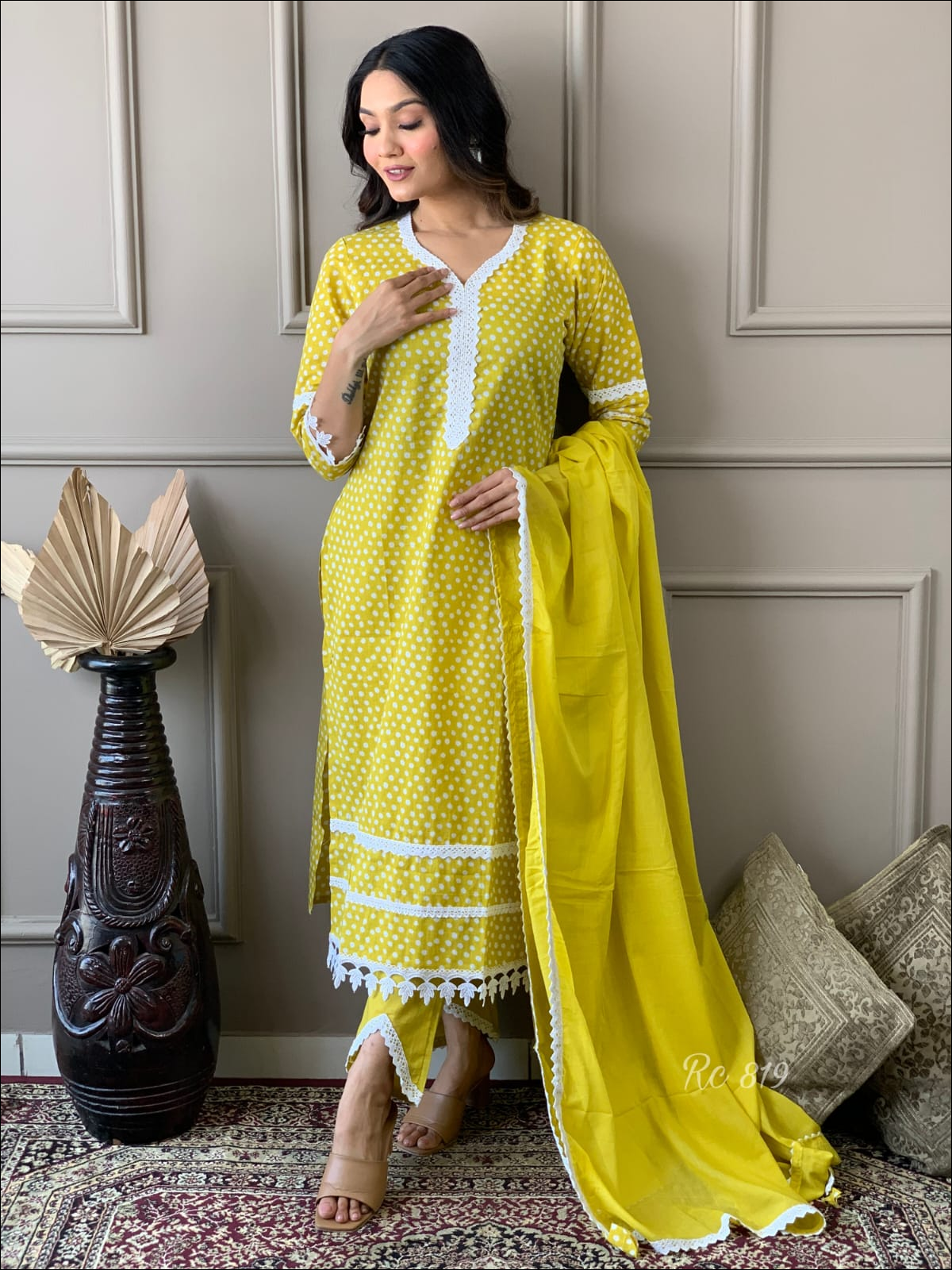 paired with cotton pant with lace work.