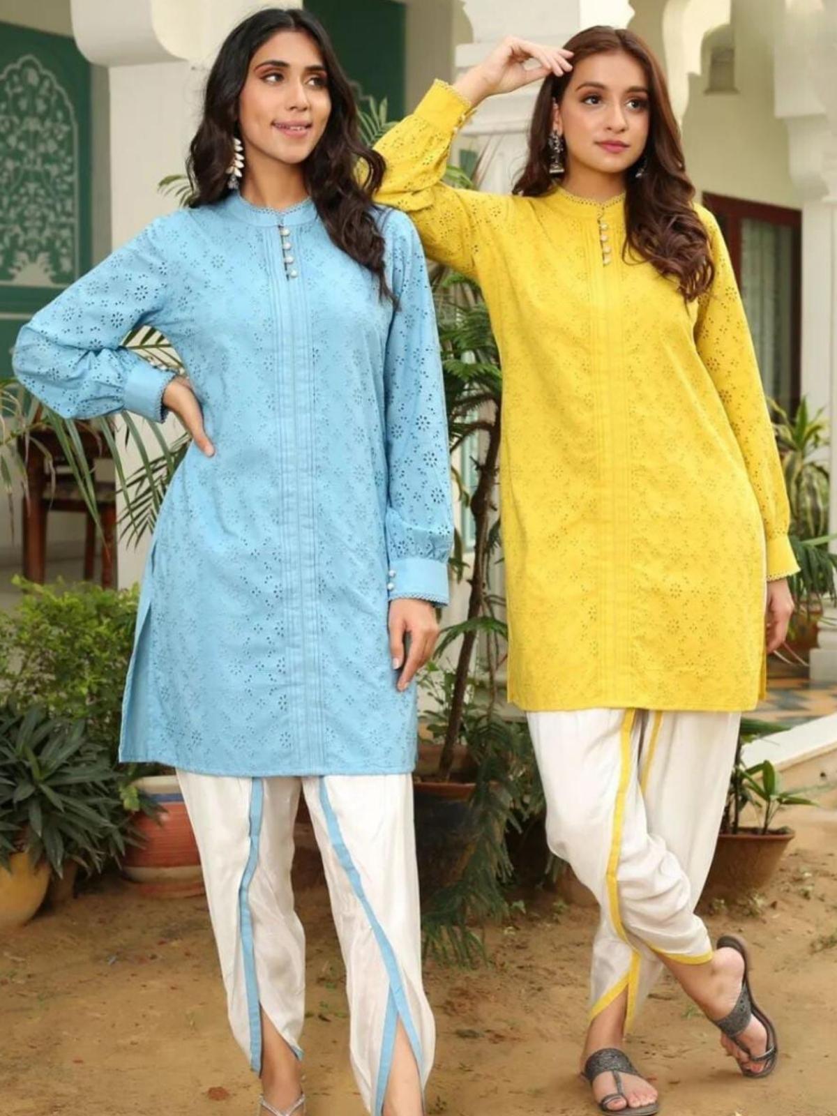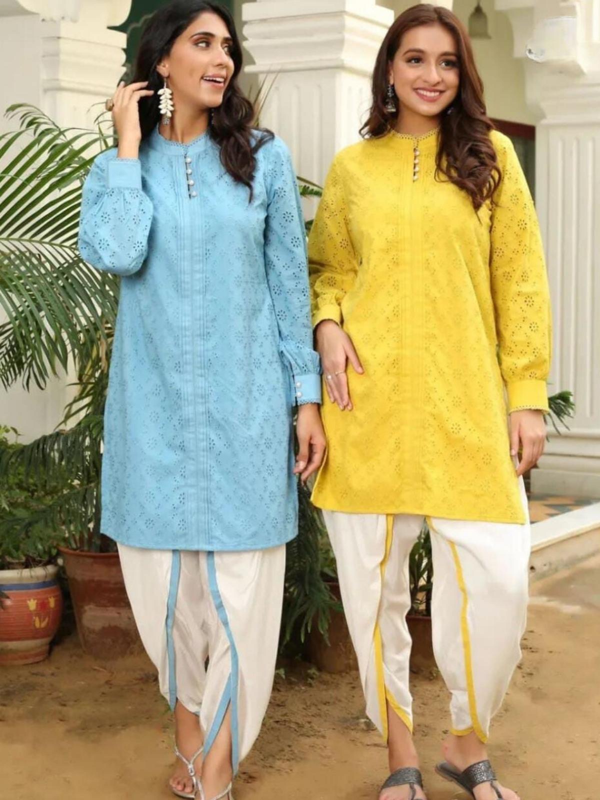 Spread some magic with this cotton shifley kurti with full Linning attached and pure cotton dhoti. A different outfit this festive season to make you look class apart.