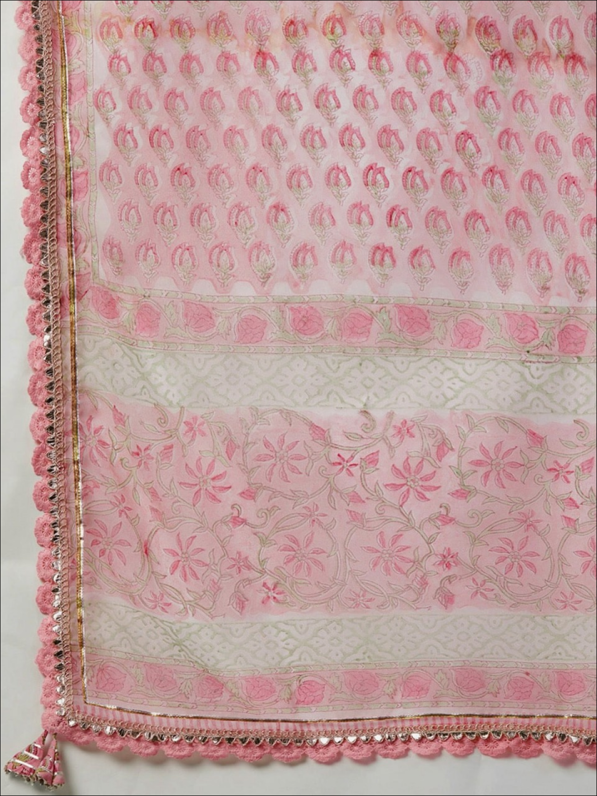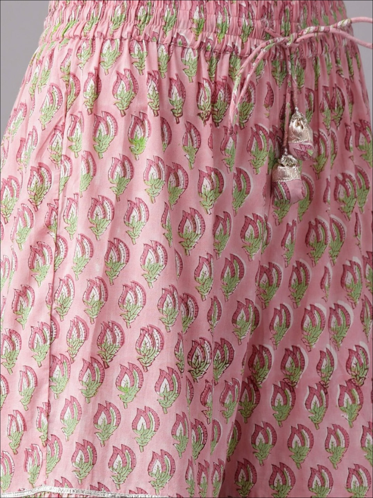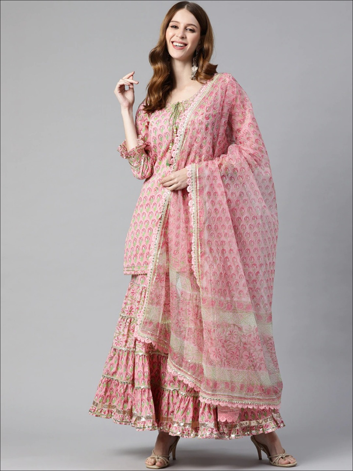 Ethnic Motifs Printed Mirror Work Pure Cotton Kurti with Sharara & With Dupatta