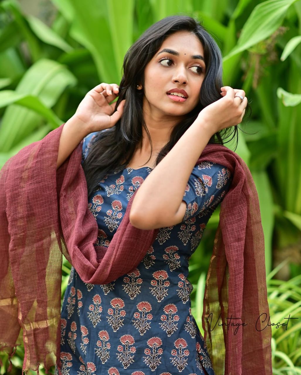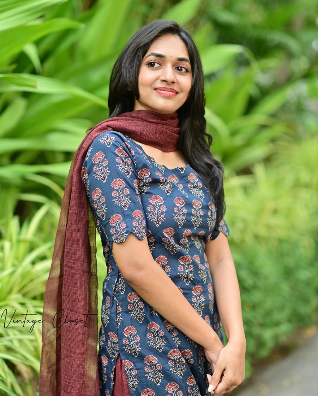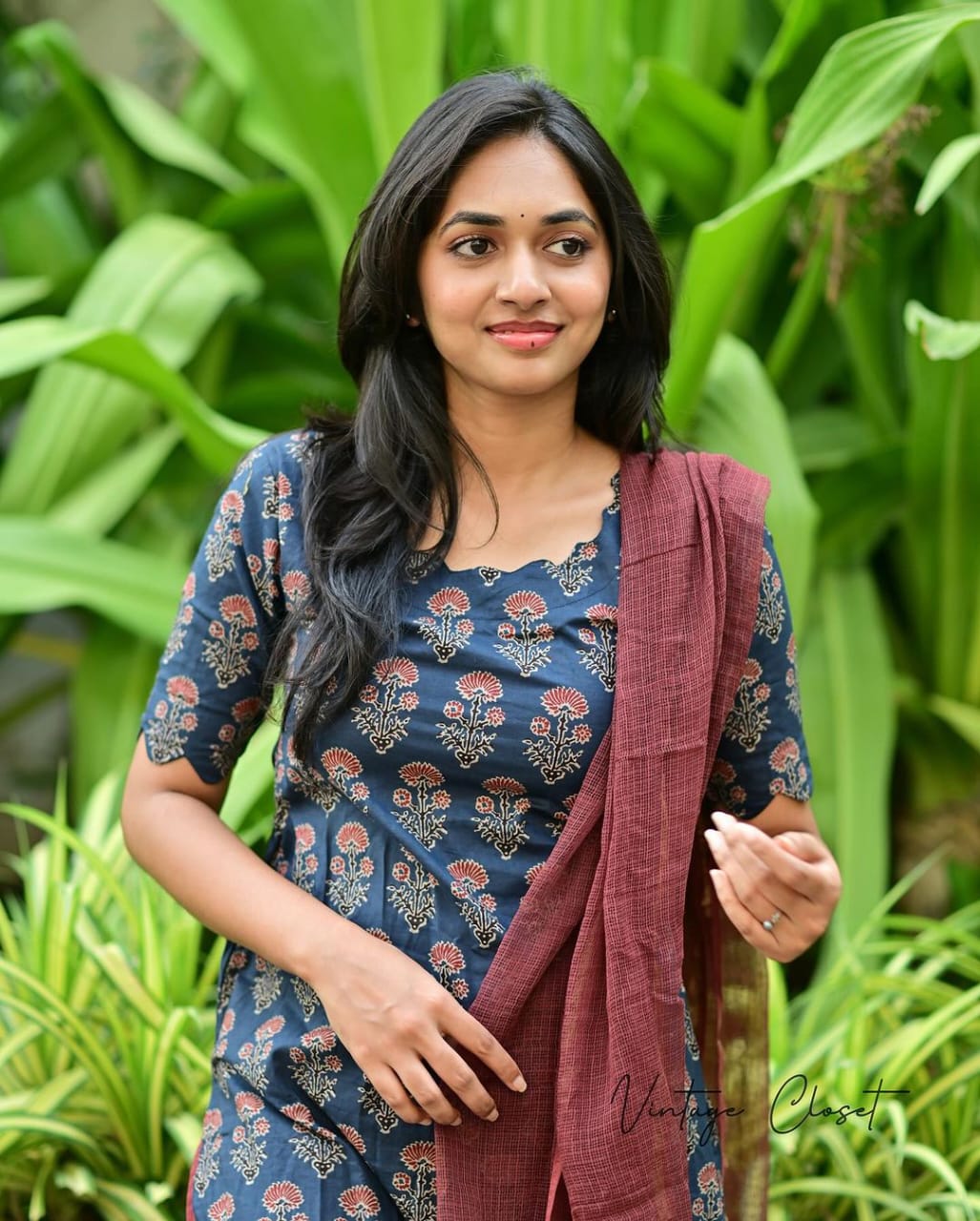 *Kurti with wave pattern neckline sleeve and ends paired with Palazzo bottom and full size kota doria dupatta*