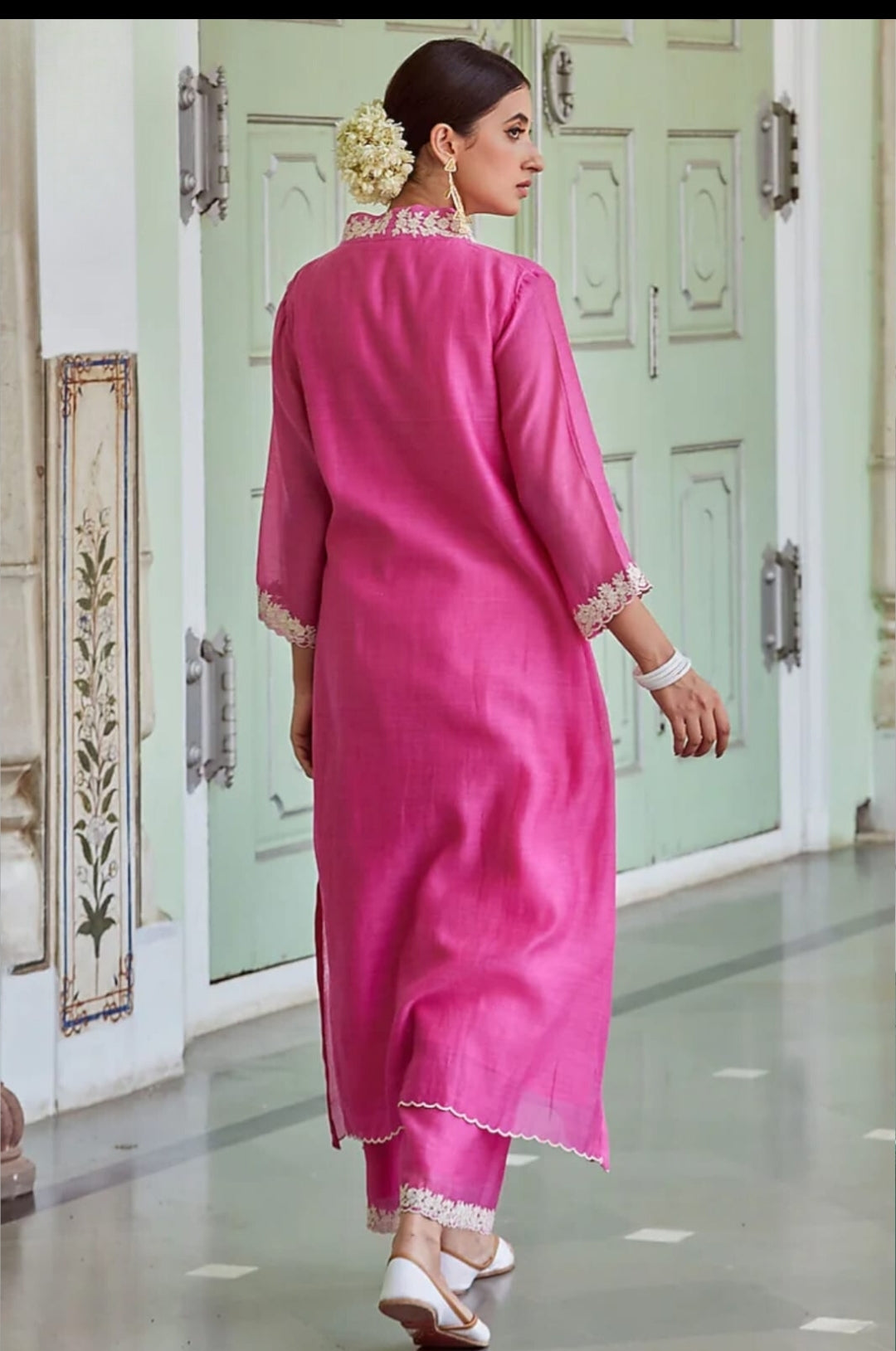 Fabric-Premium Chanderi Kurti with Cotton lining,Chanderi Palazzo with Lining