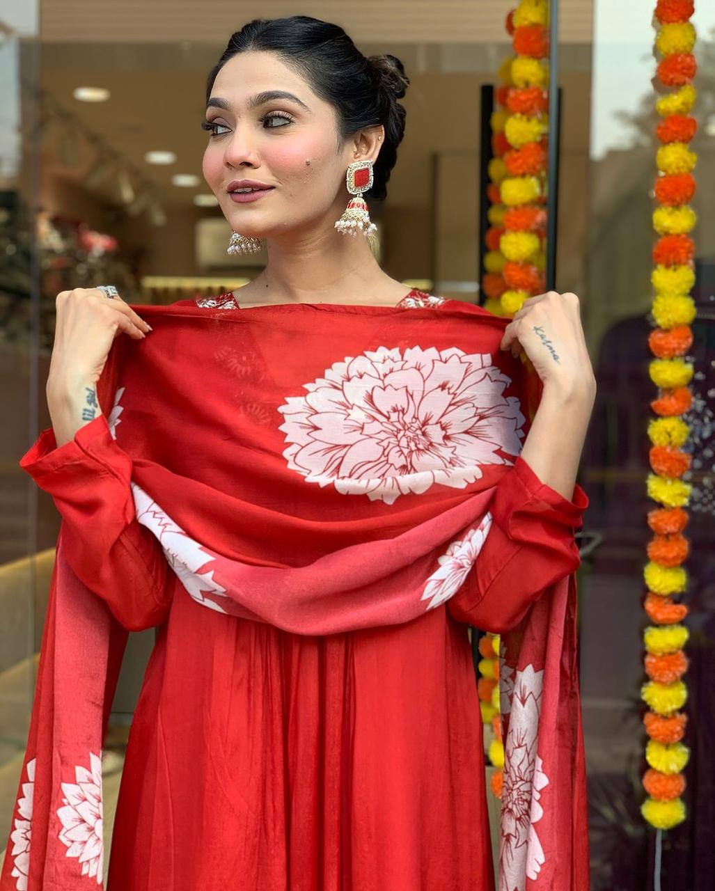Look stylish in our new , discharge Cotton 60'60 kurta pant & duppata set for all day comfort*
