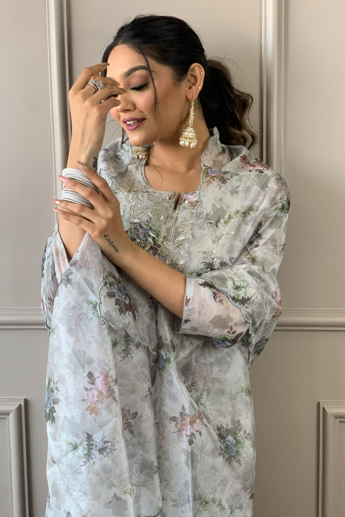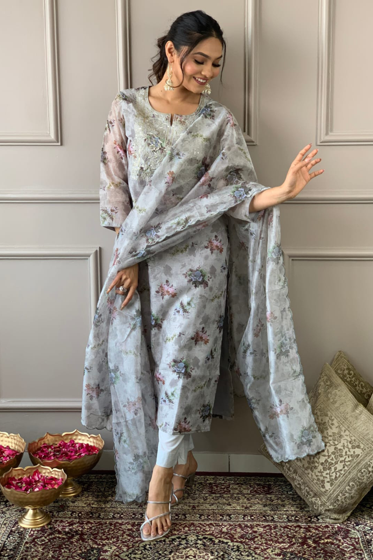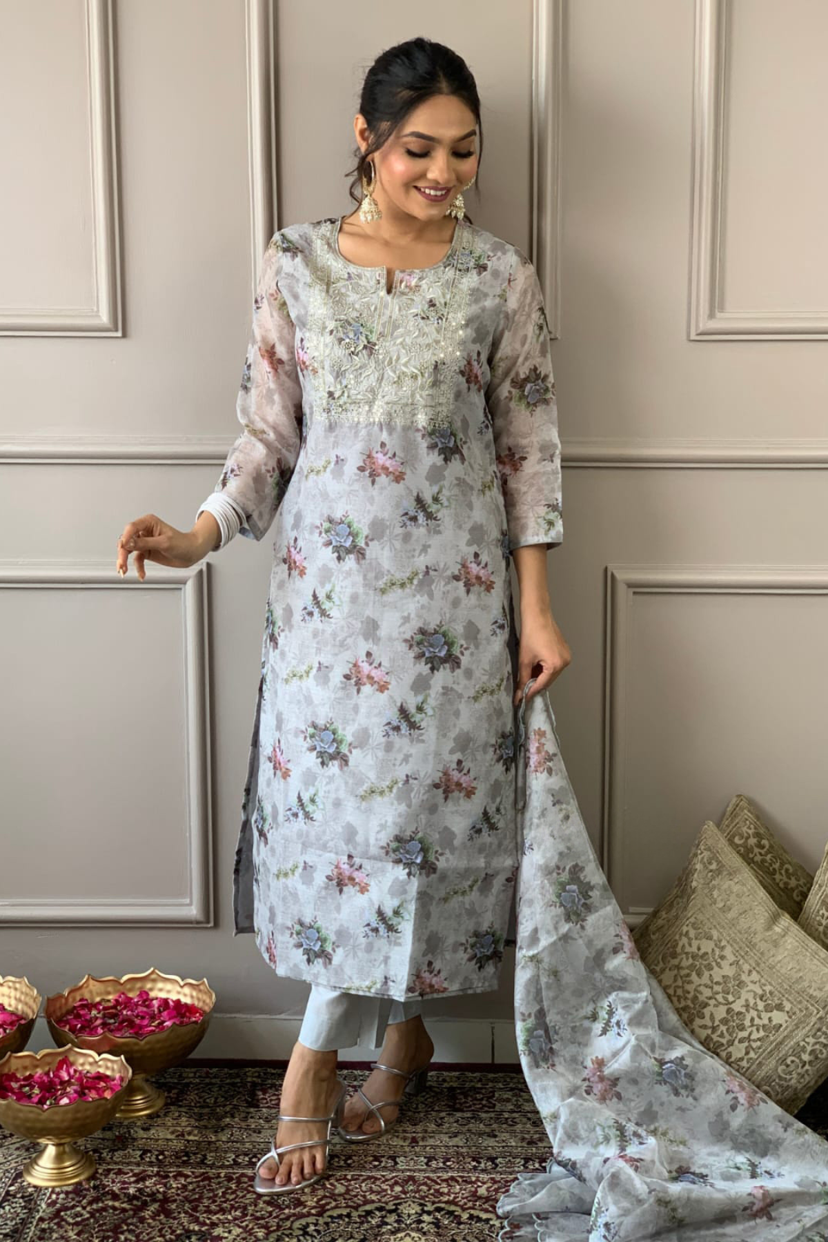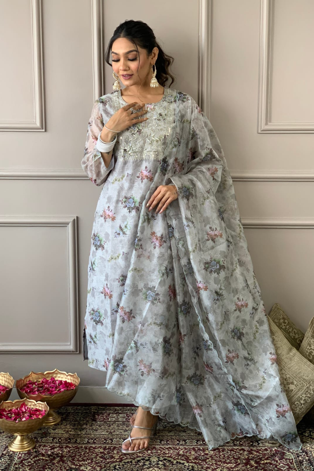 Look gorgeous this festive season with floral premium silk chanderi kurti with digital print & embroidery work in premium quality with soft cotton lining.