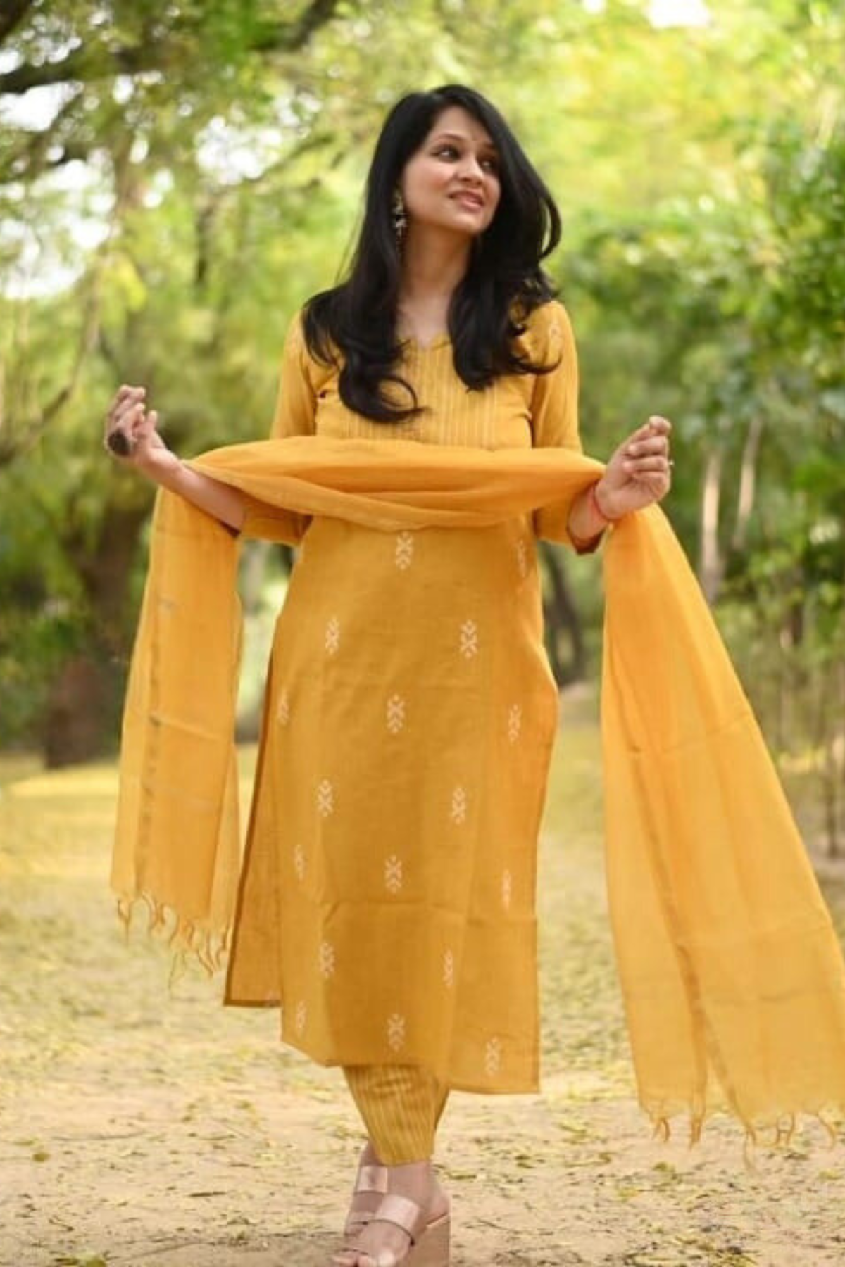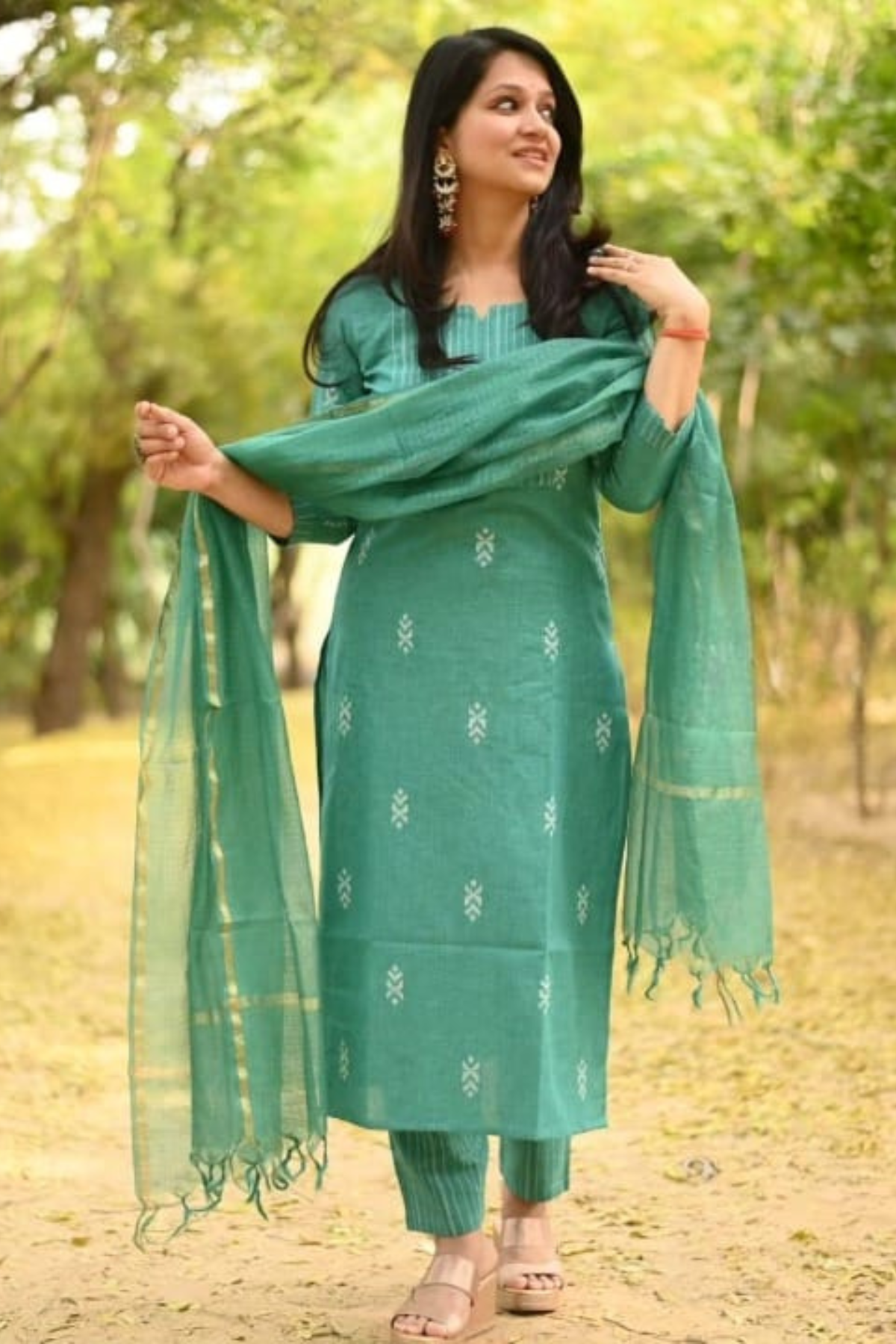 You will be so much in love with pure handloom south cotton hand woven fabric out fir. A combination of South handloom thread handloom cotton fabric and self hand woven butti ,same south cotton pant paired with kota Doria duppata.