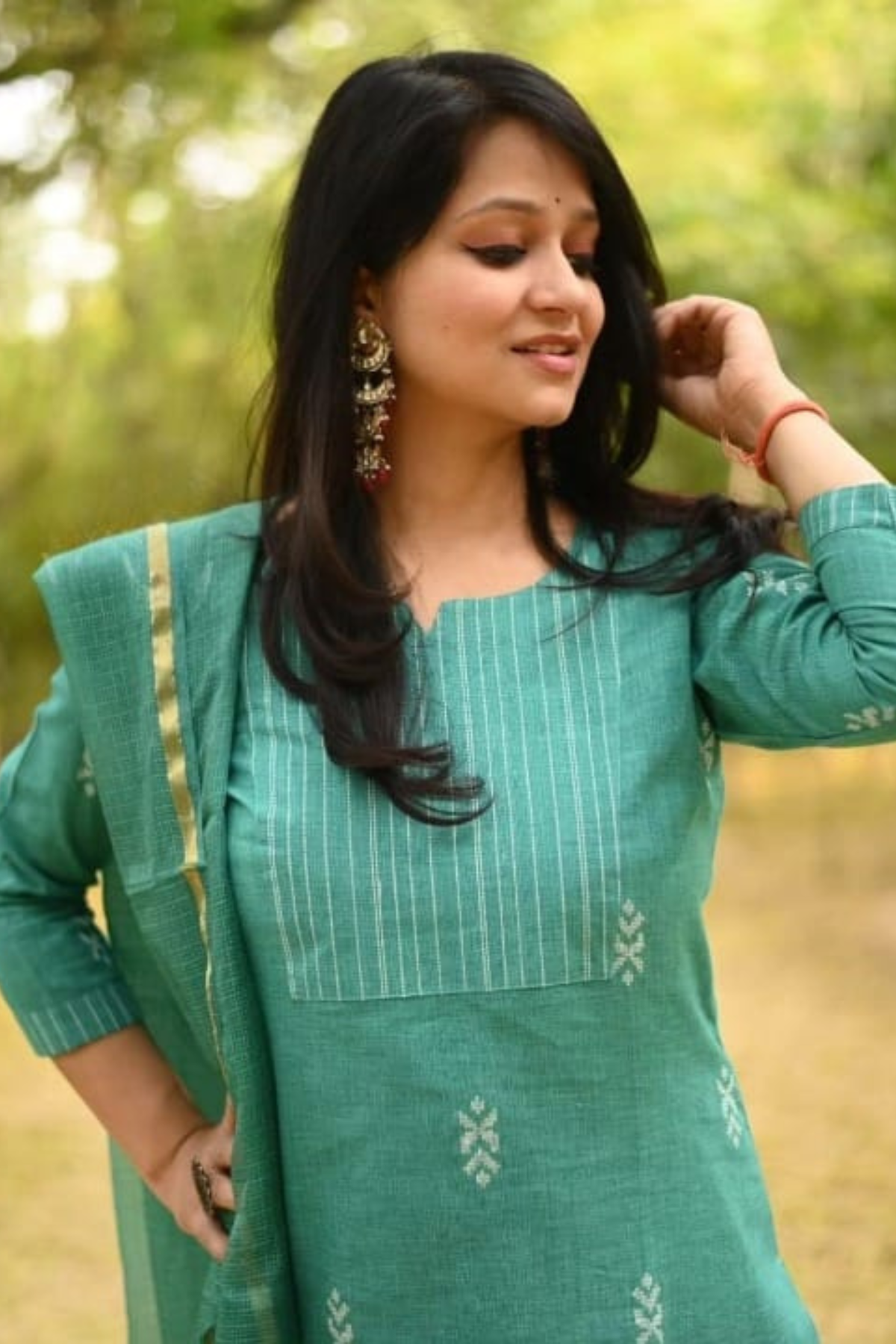*Fabric- south cotton self hand made butti handloom kurta pant*