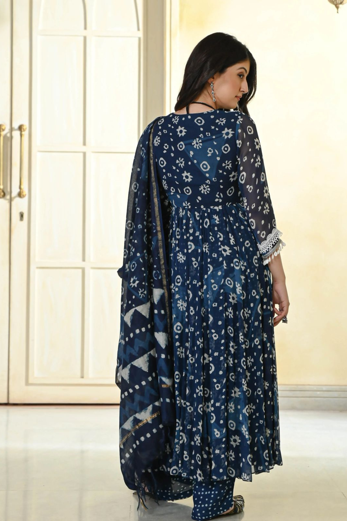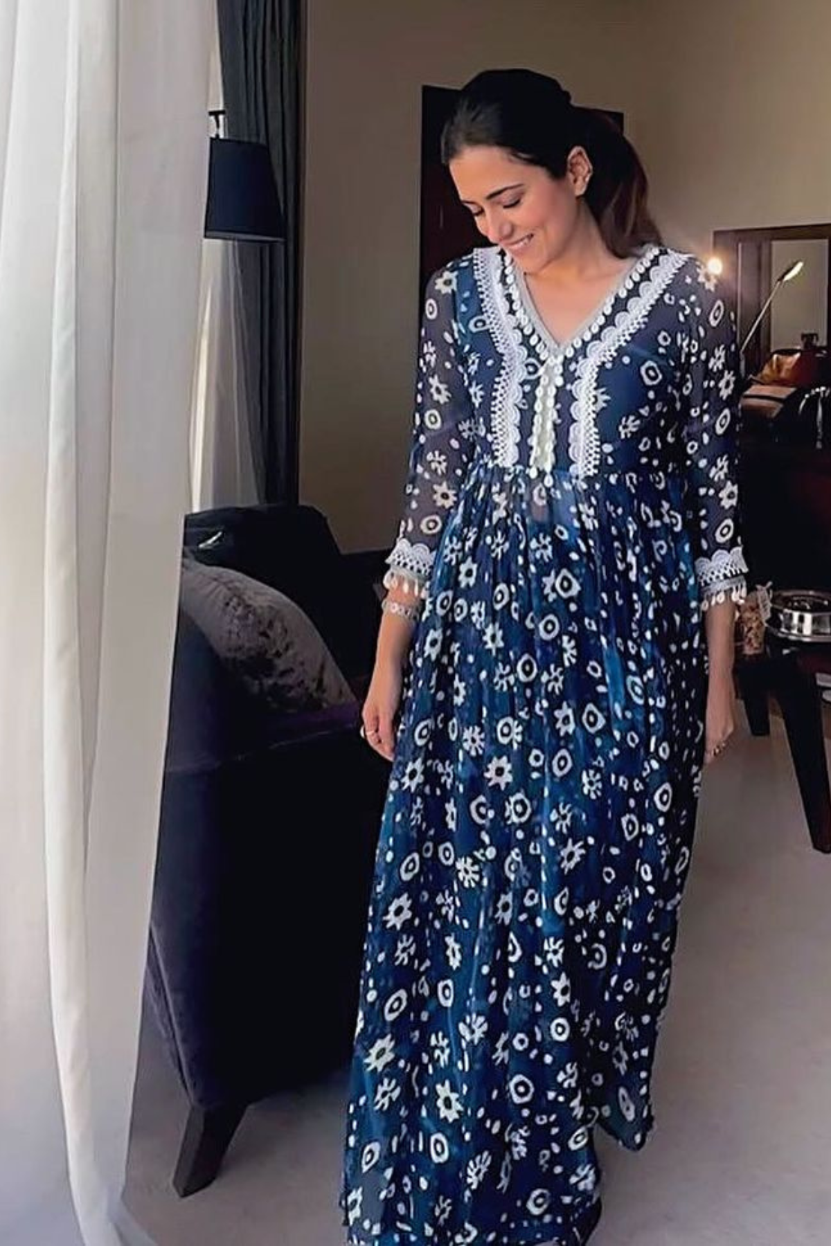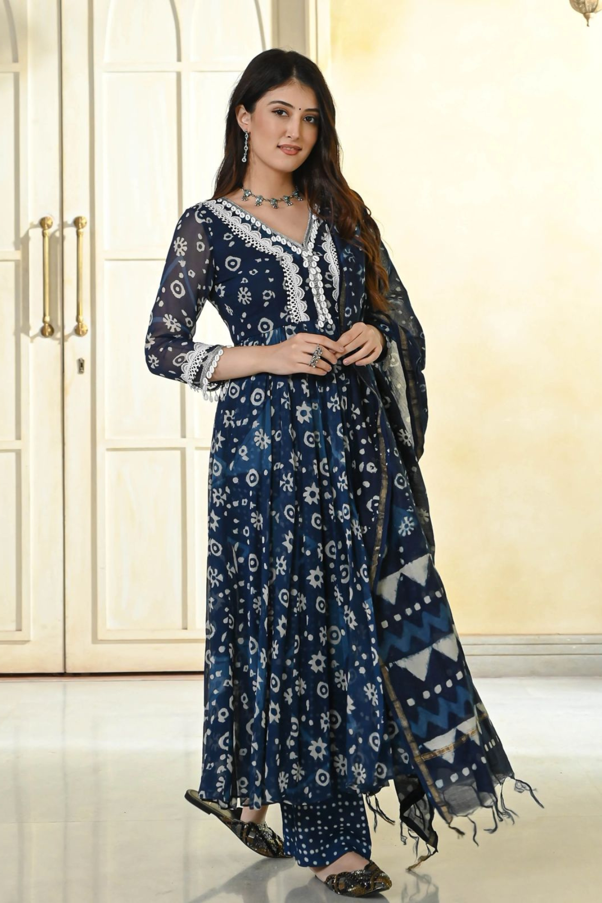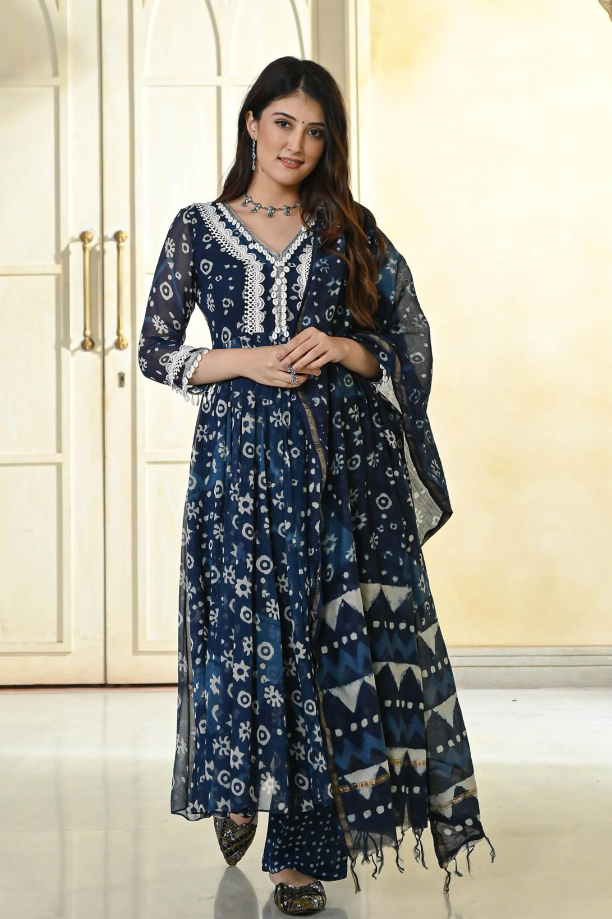 Premium Export Quality Cotton Fabric Printed Long gown Kurti With Pant And mal mal Dupatta