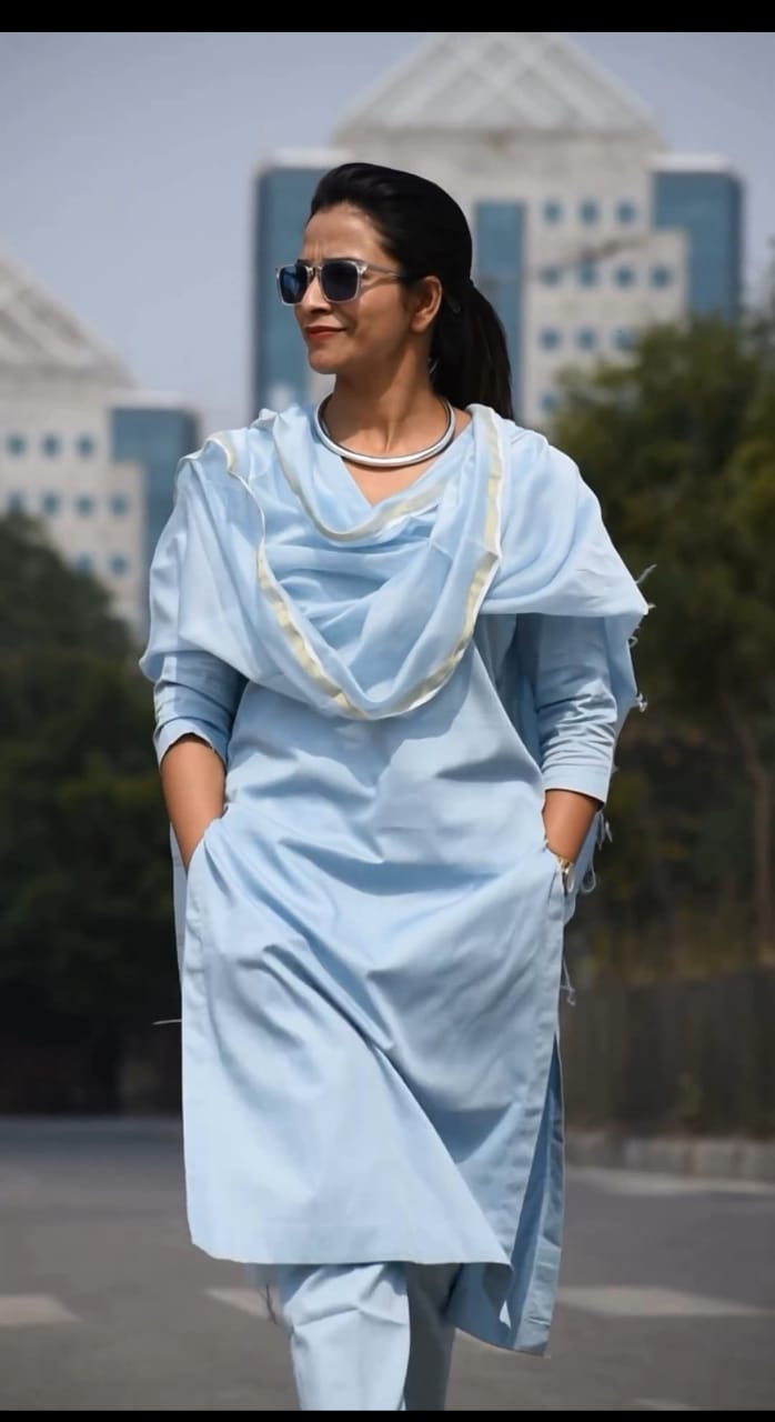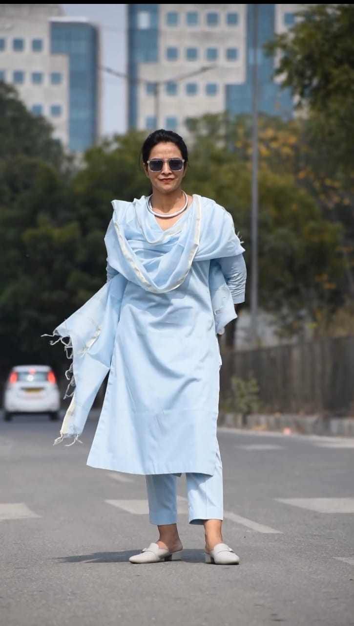 Cotton 60'60, Dyed kurti, pant paired with Kota doriya dupatta.
