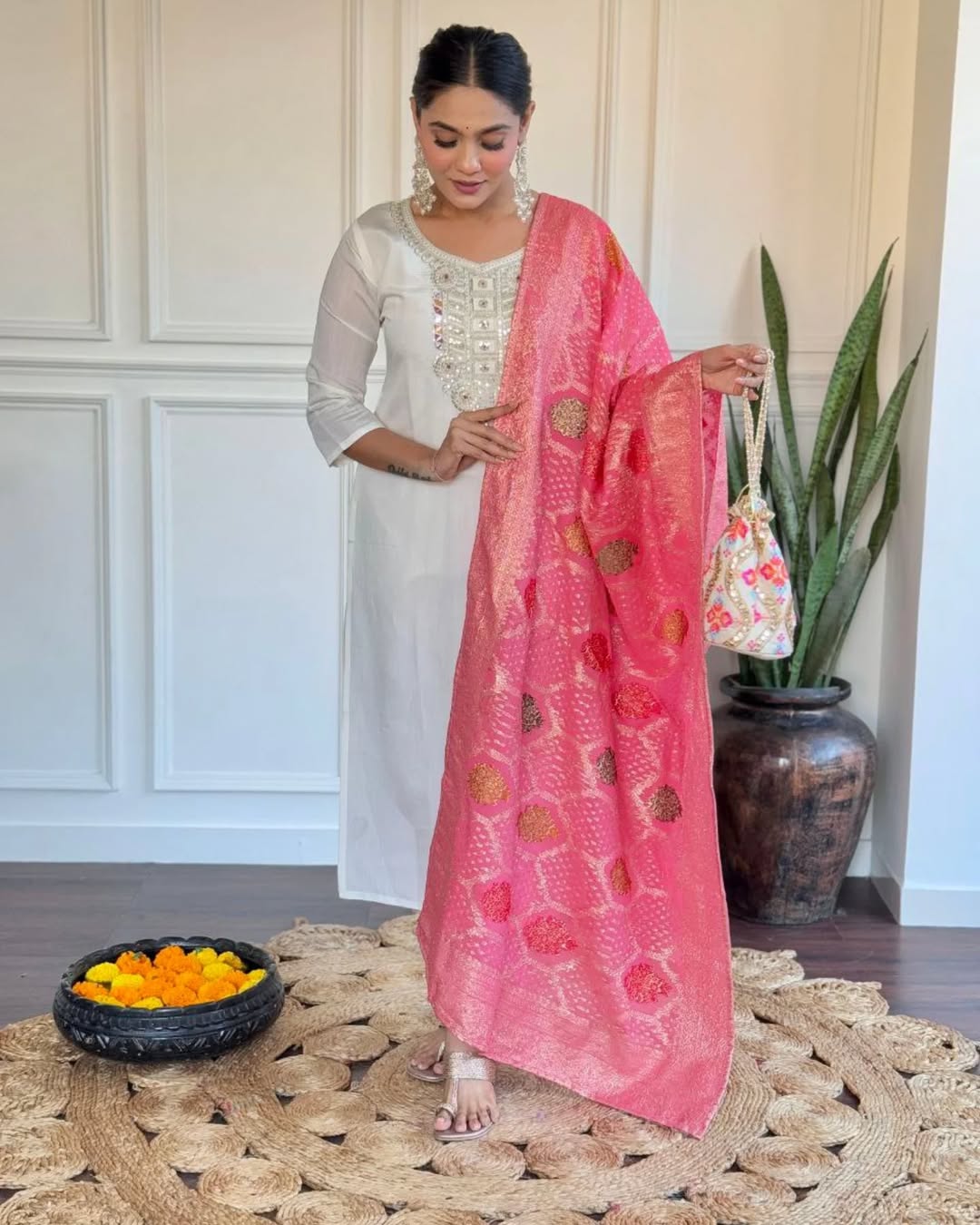 Dupatta Fabric -HEAVY JACQUARD WEAVING PRINT WITH FULL ZARI WORK