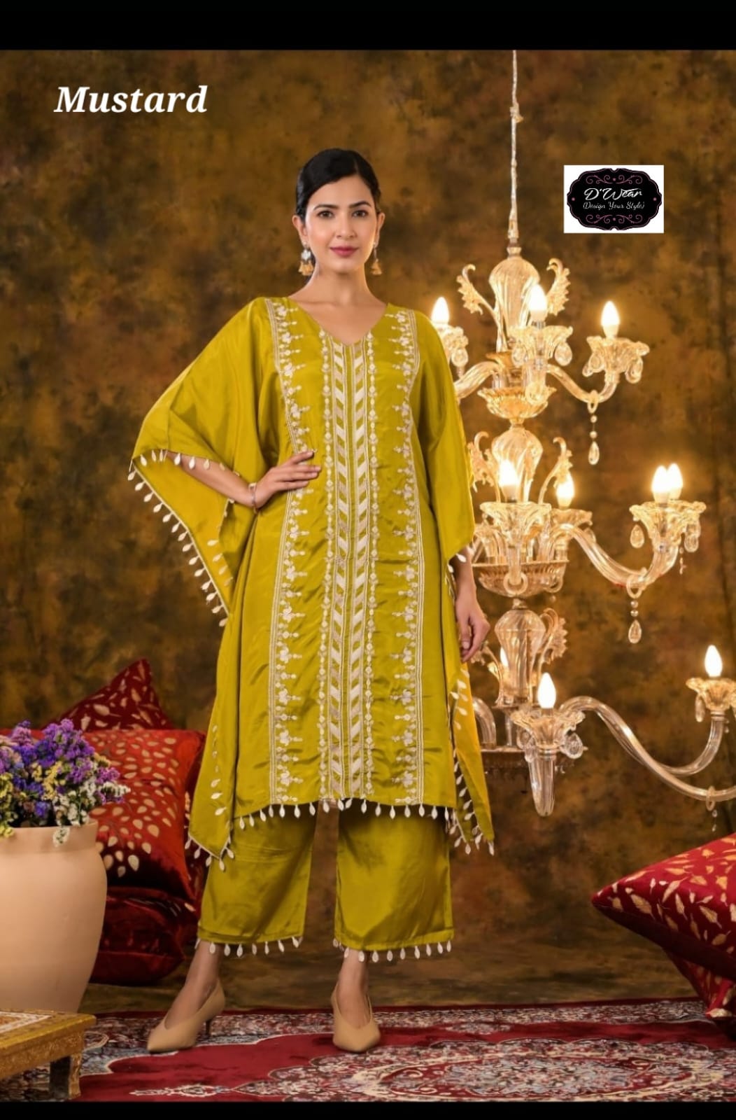 Launching Beautiful Kaftan Outfit with Heavy Embroidery work all over the kaftan all borders detailed with lace paired with Palazzo with lace border