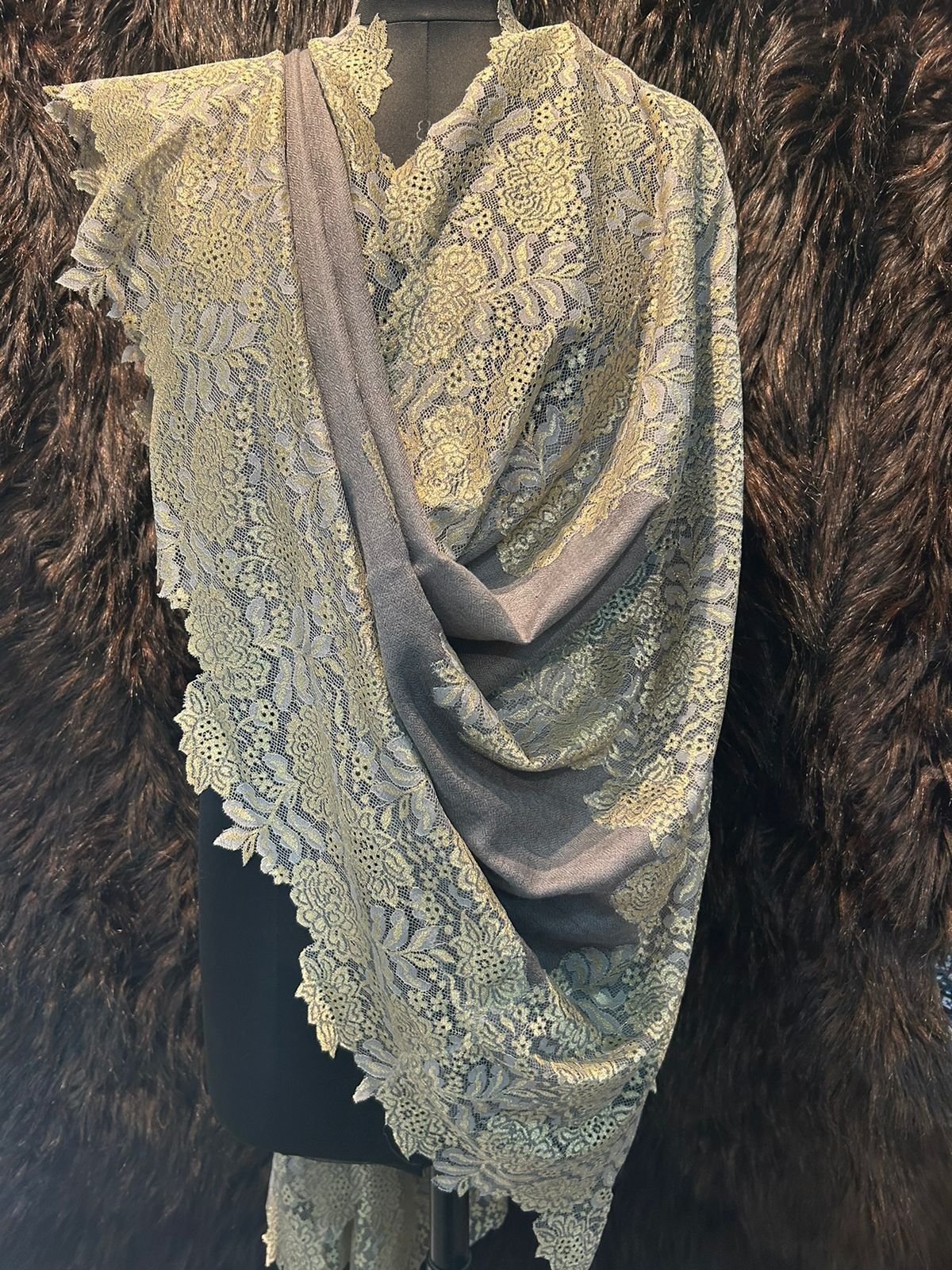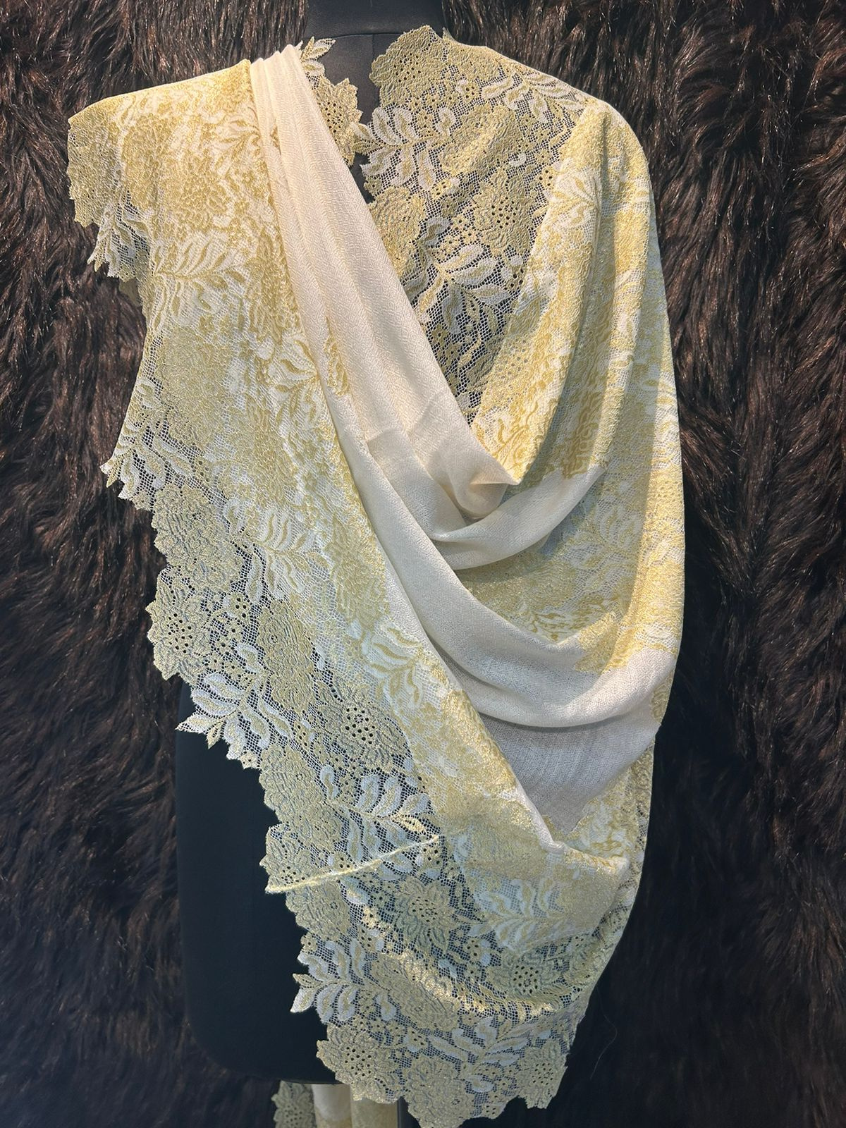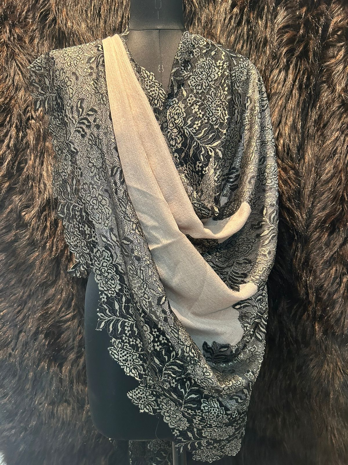 Pashmina wool shining lace stole. A perfect stole to feel cozy and comfortable in the winter season.