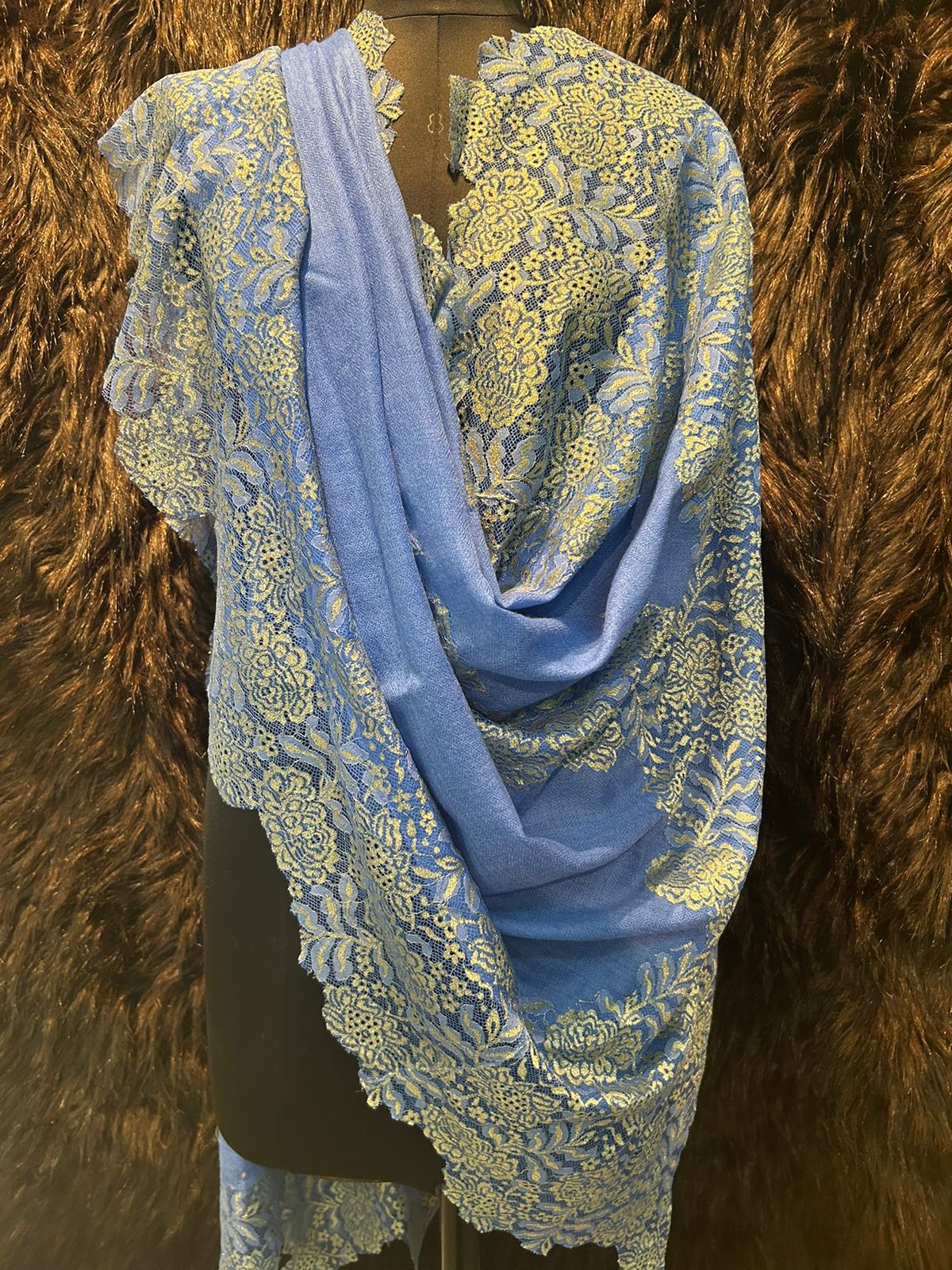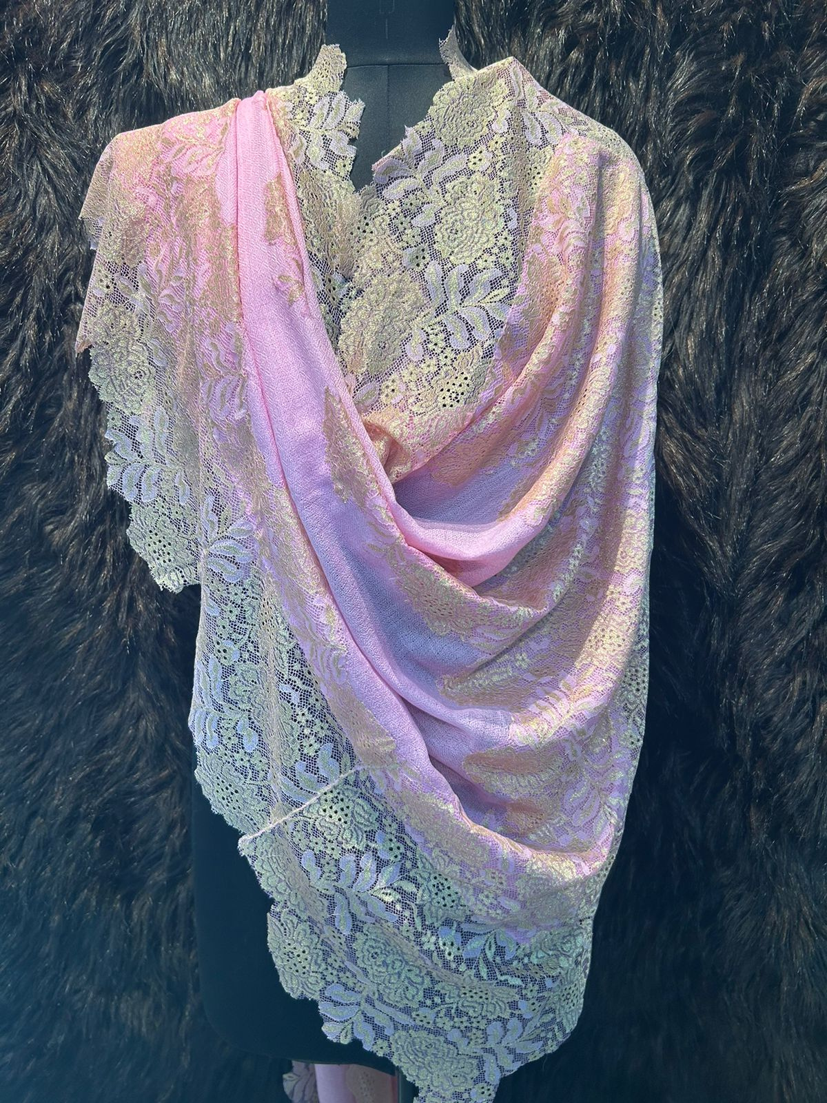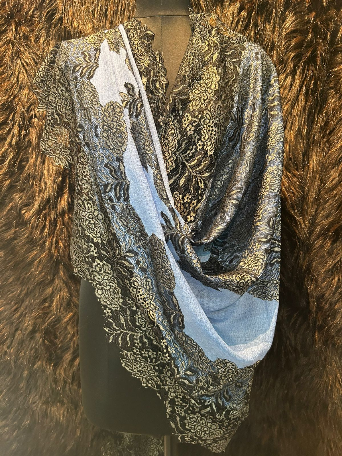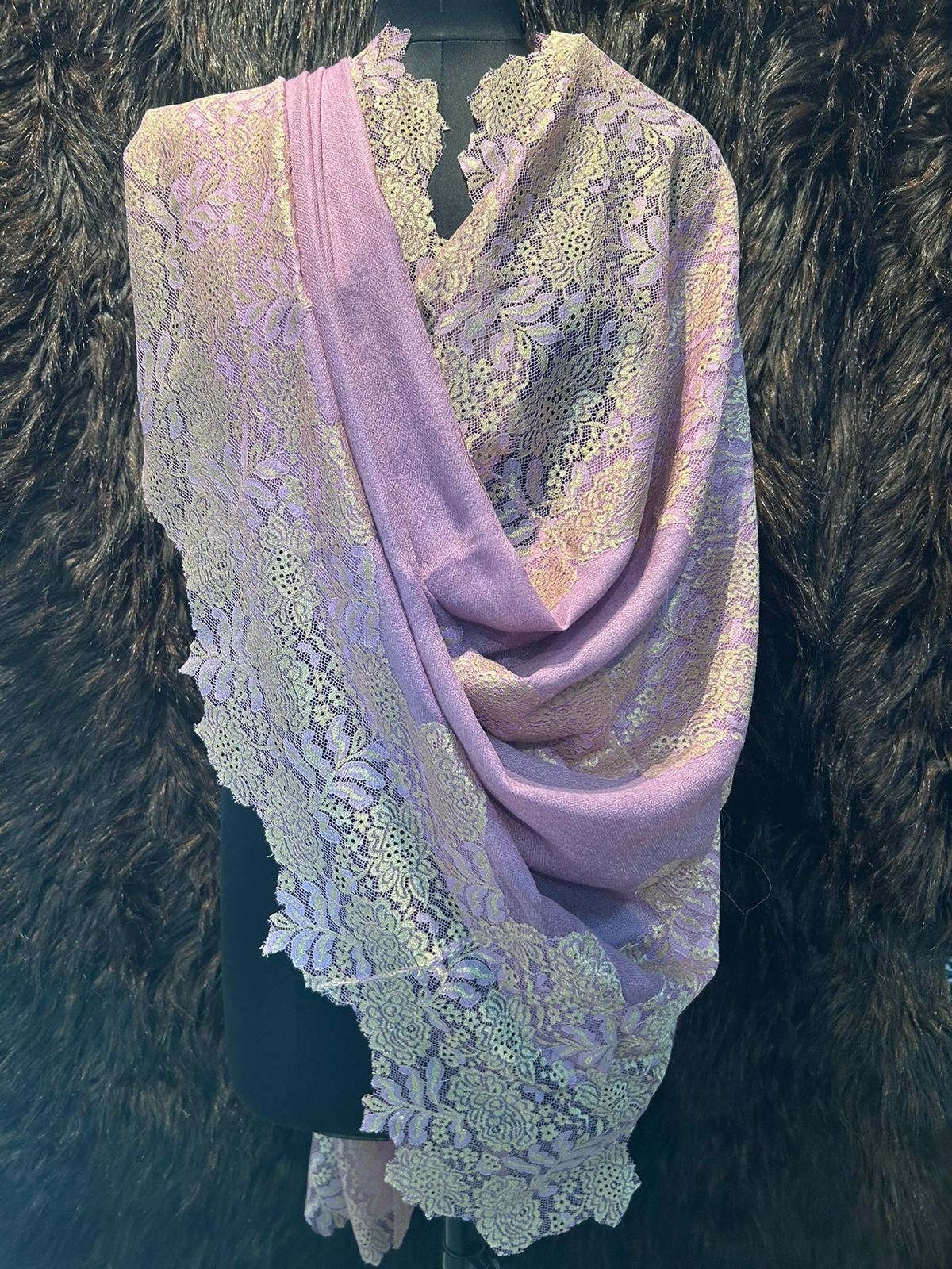 Pashmina wool shining lace stole. A perfect stole to feel cozy and comfortable in the winter season.