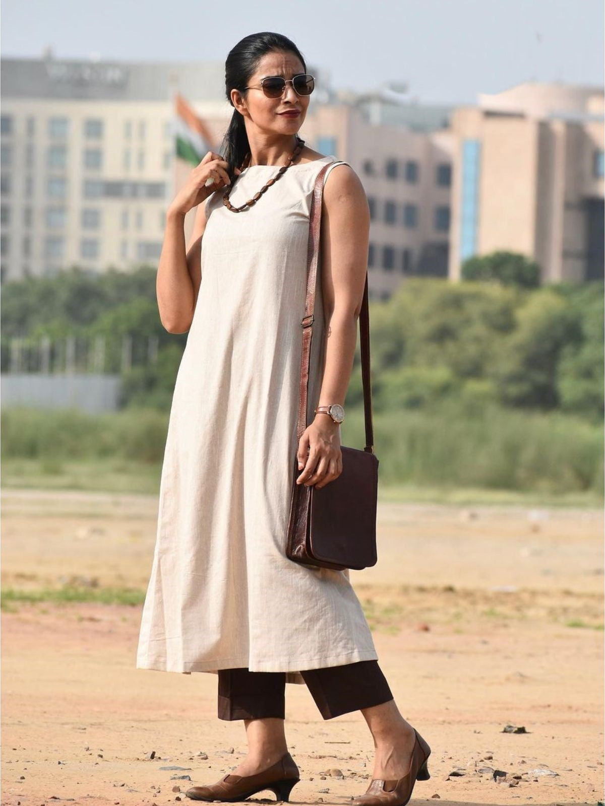 Pure Cotton kurti with palazzo.  Hot colour and very smart. A perfect look for summers.  Sleeveless kurti for smart women