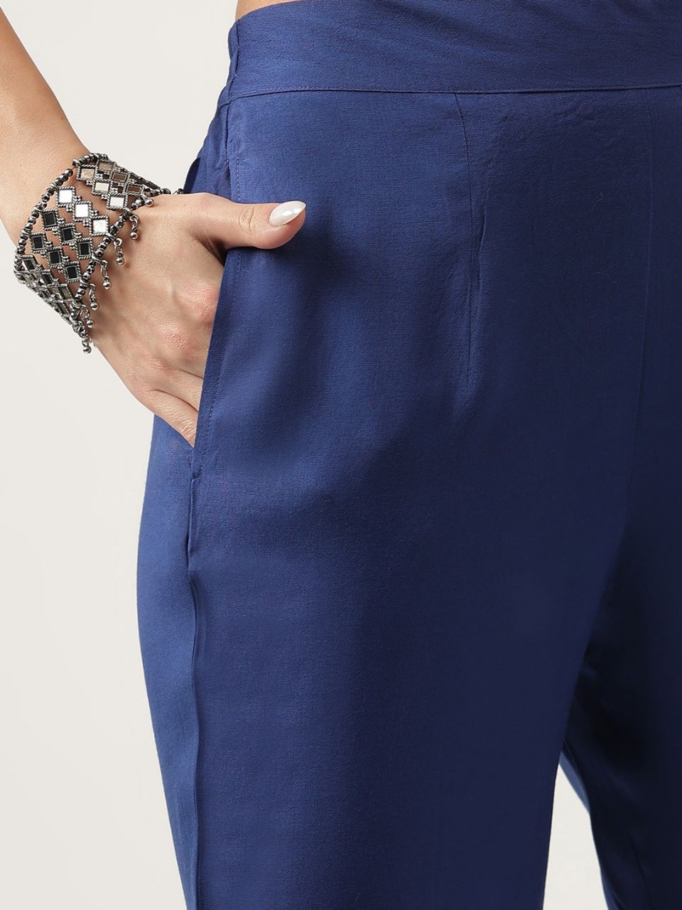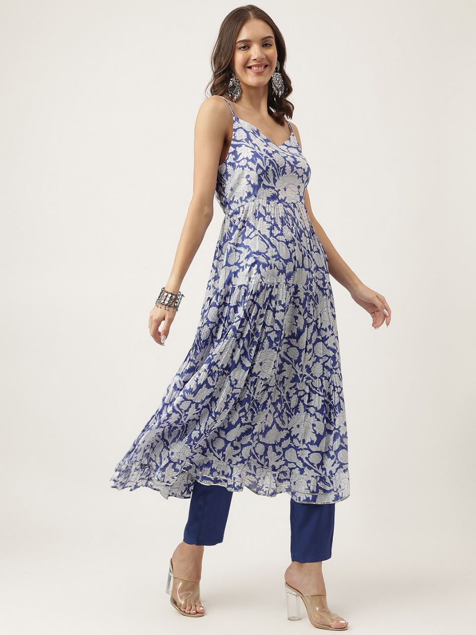 Ethnic Printed Straight Kurta with Trousers & With Dupatta