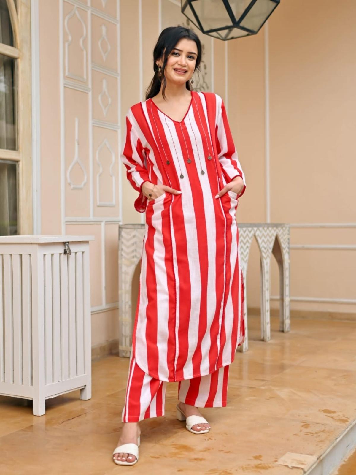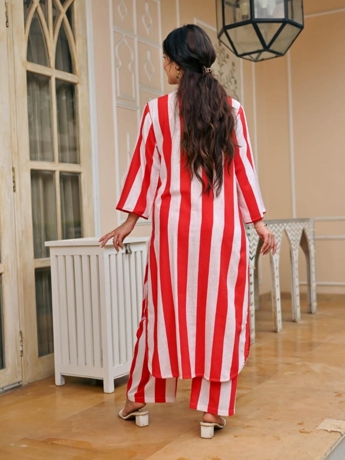 This casual striped co-ord is a perfect outfit to wear all day long. Pair it with sandals for a stylish and cool look.