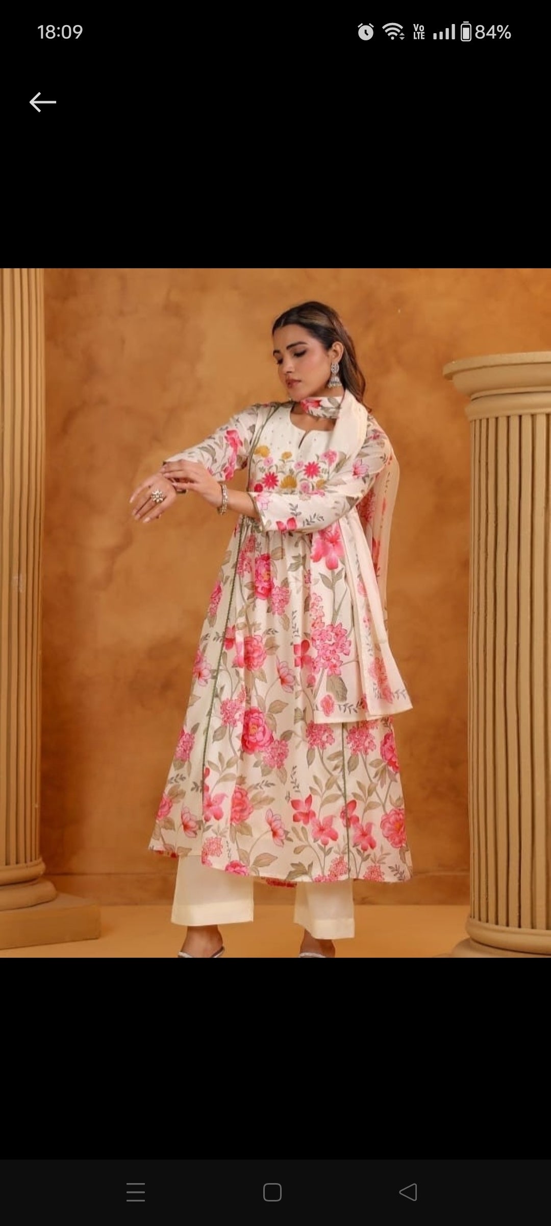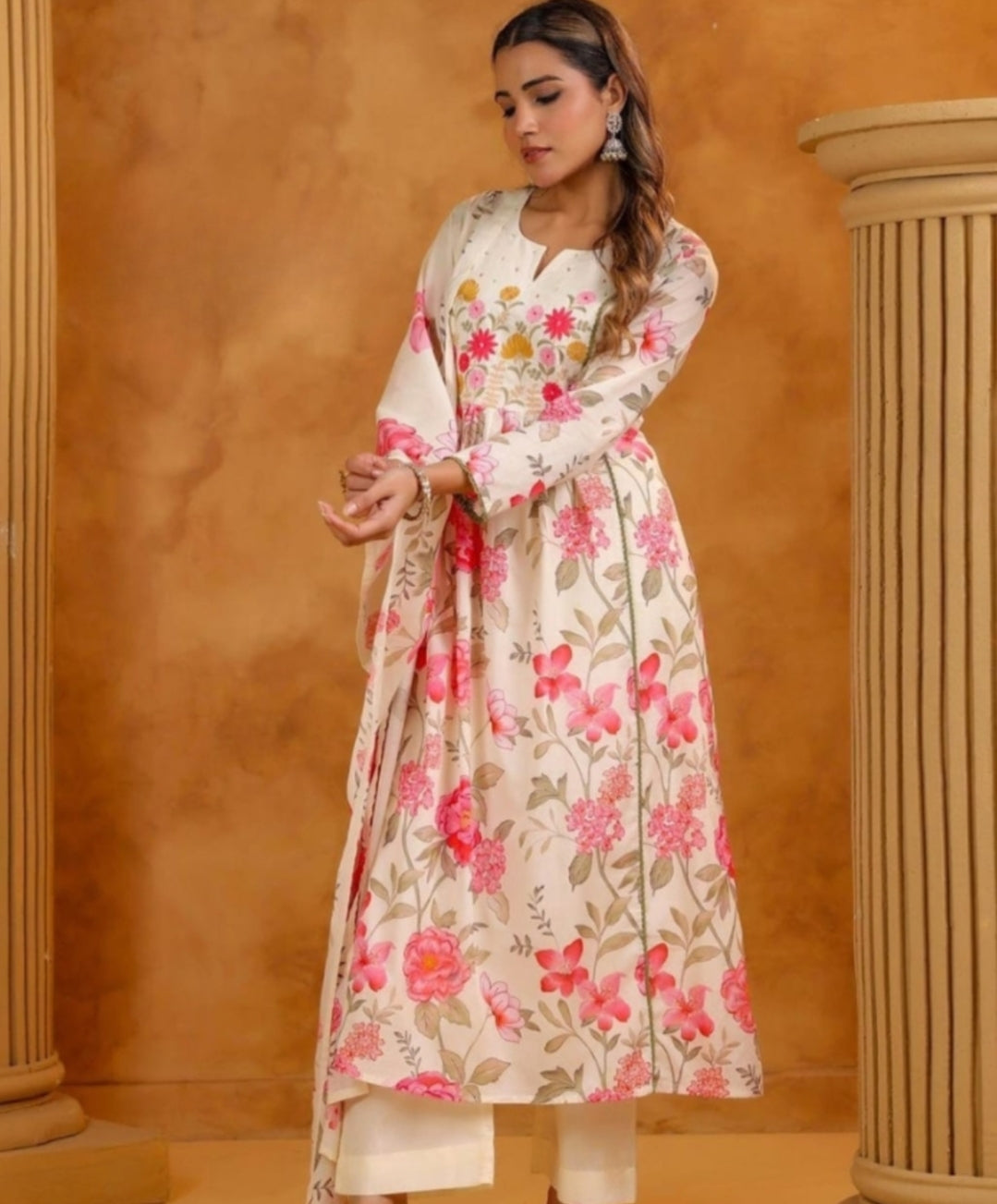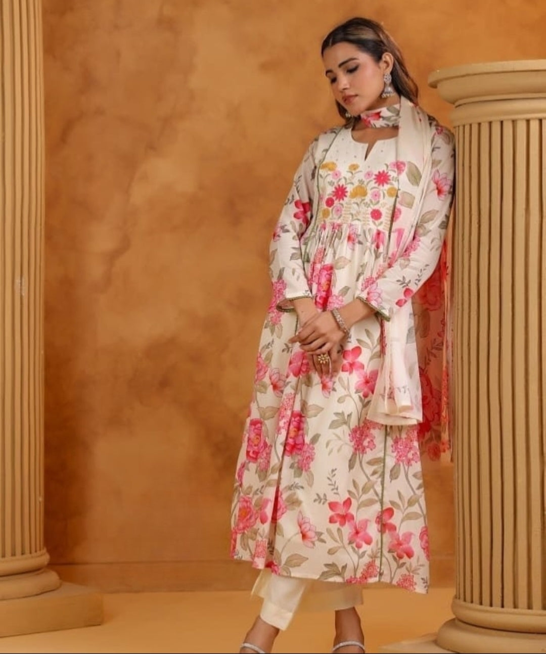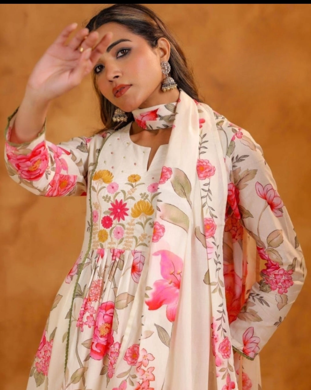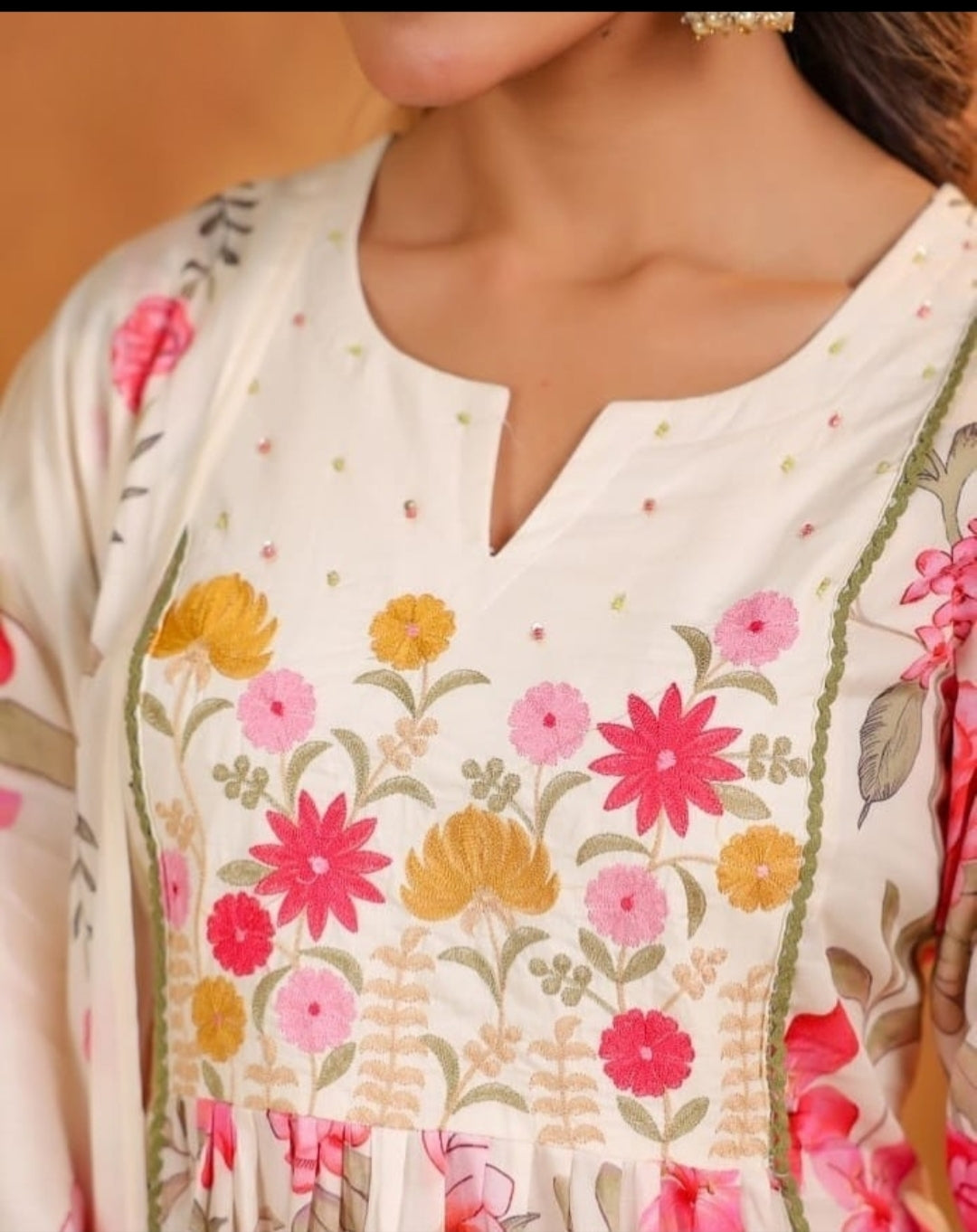 Beautiful embroidery work anarkali kurta pant dupatta set in new summer colour
