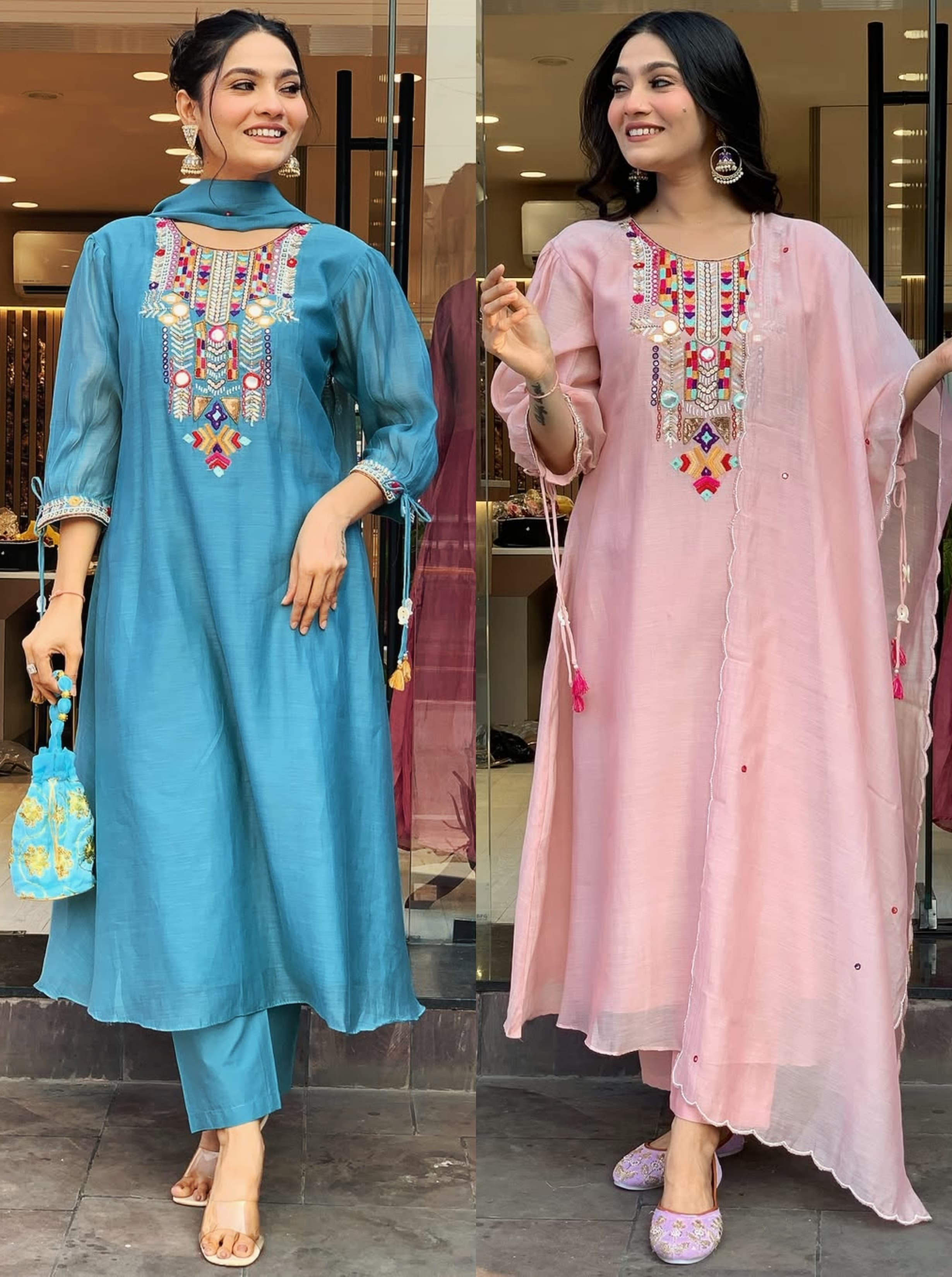 Fabric Best heavy Bangalore dup Chanderi fabric kurti with pant and latkan Dupatta
