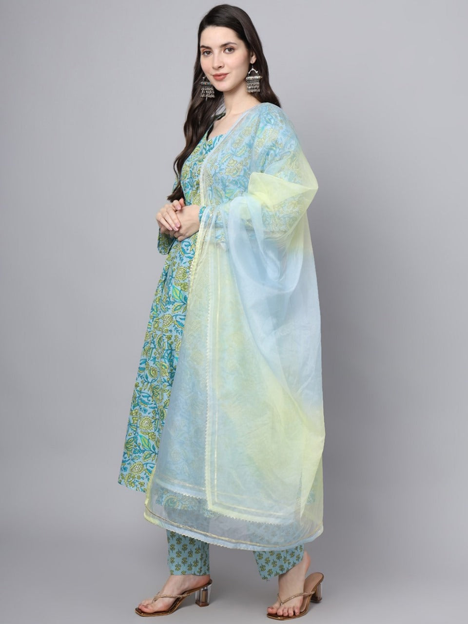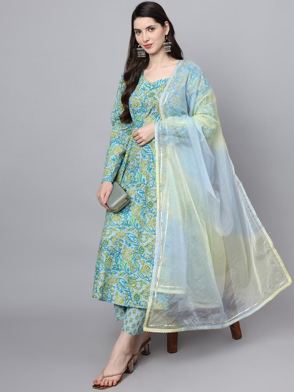 Women Floral Printed Regular Gotta Patti Pure Cotton Kurta with Trousers & With Dupatta