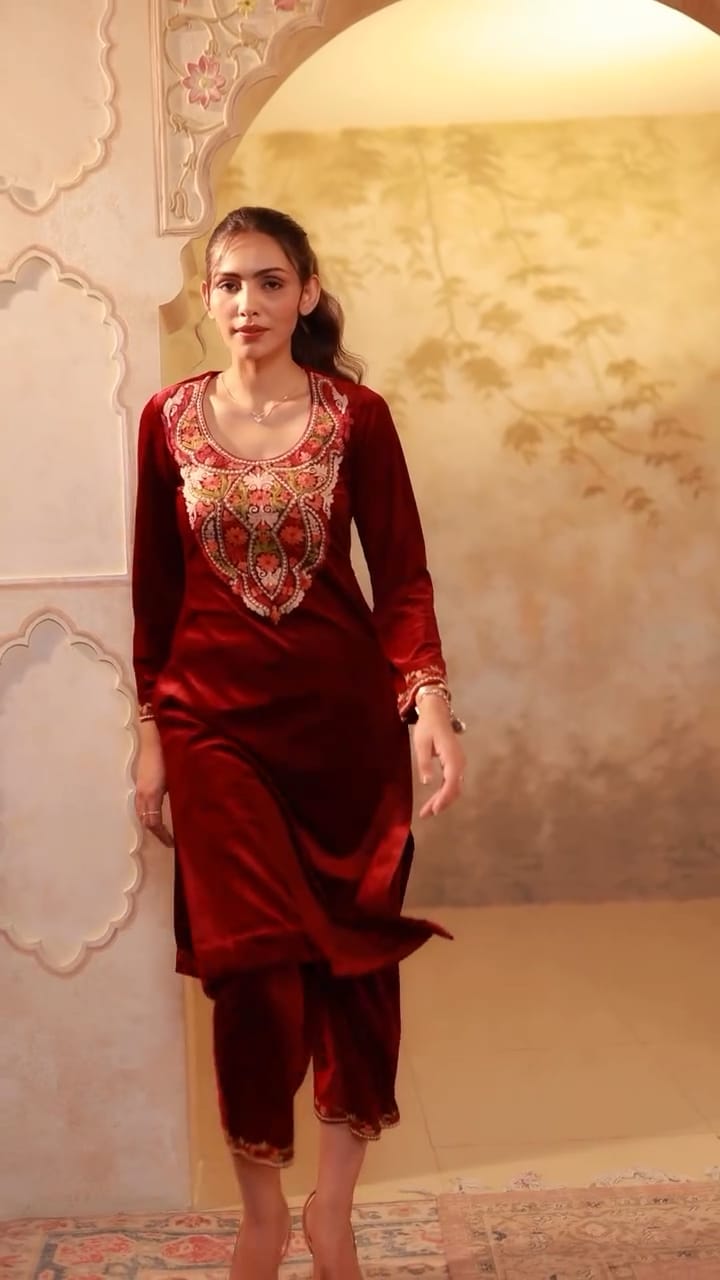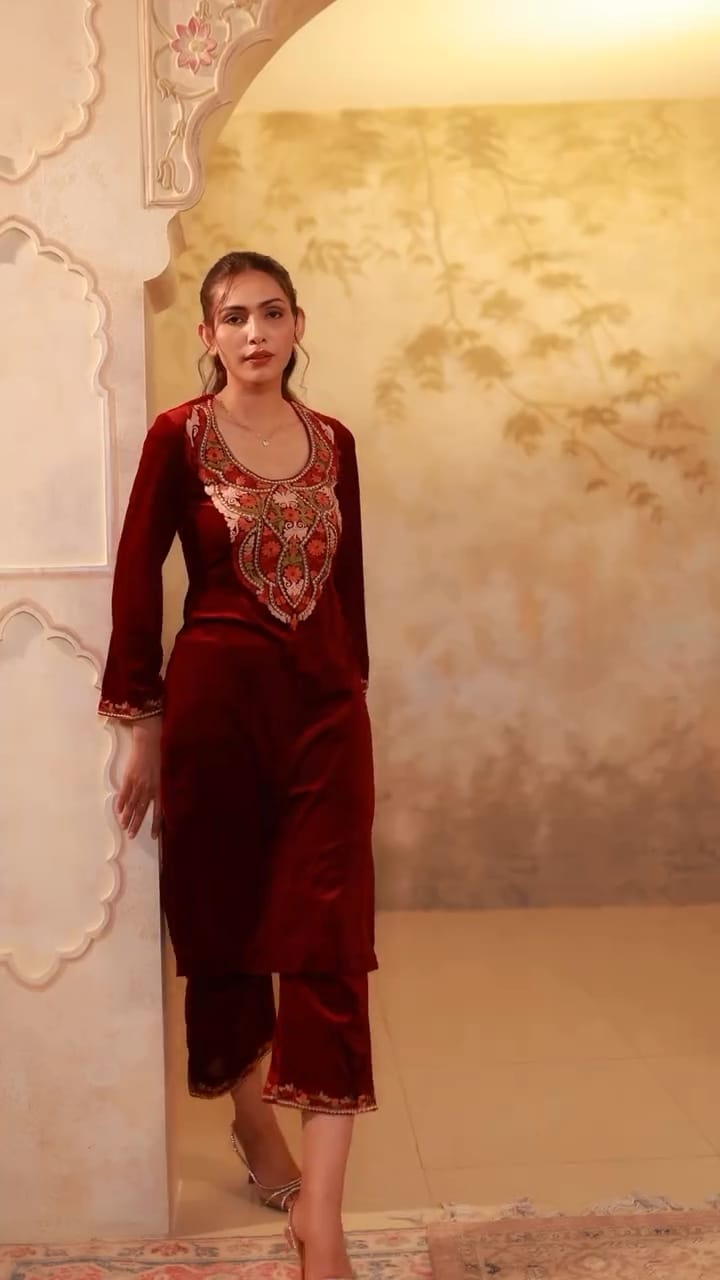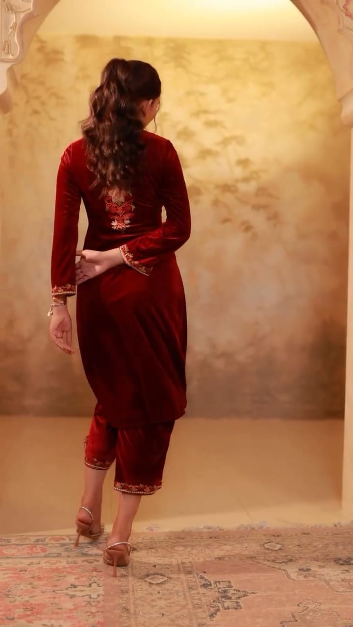 Maroon Velvet Suit Set_