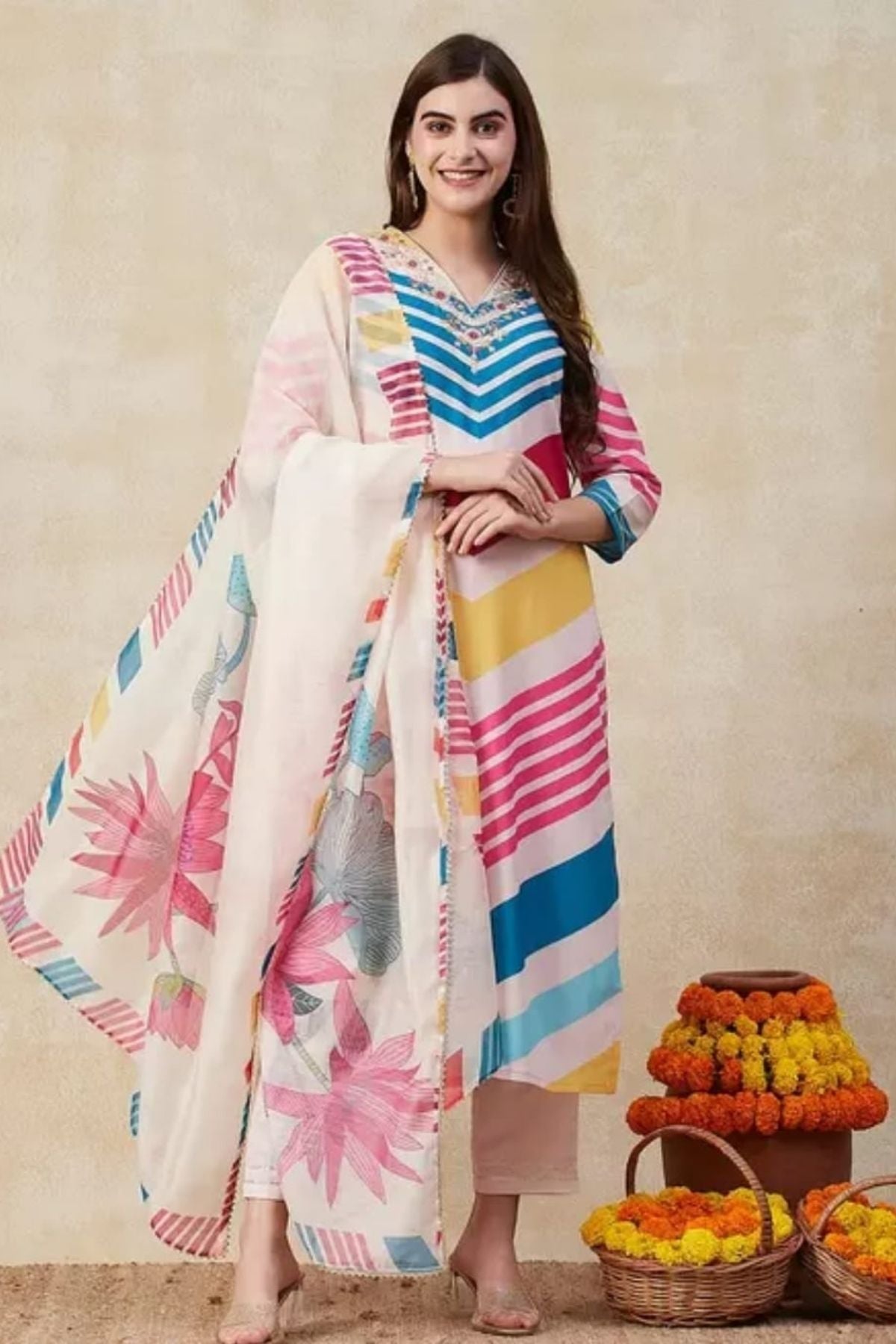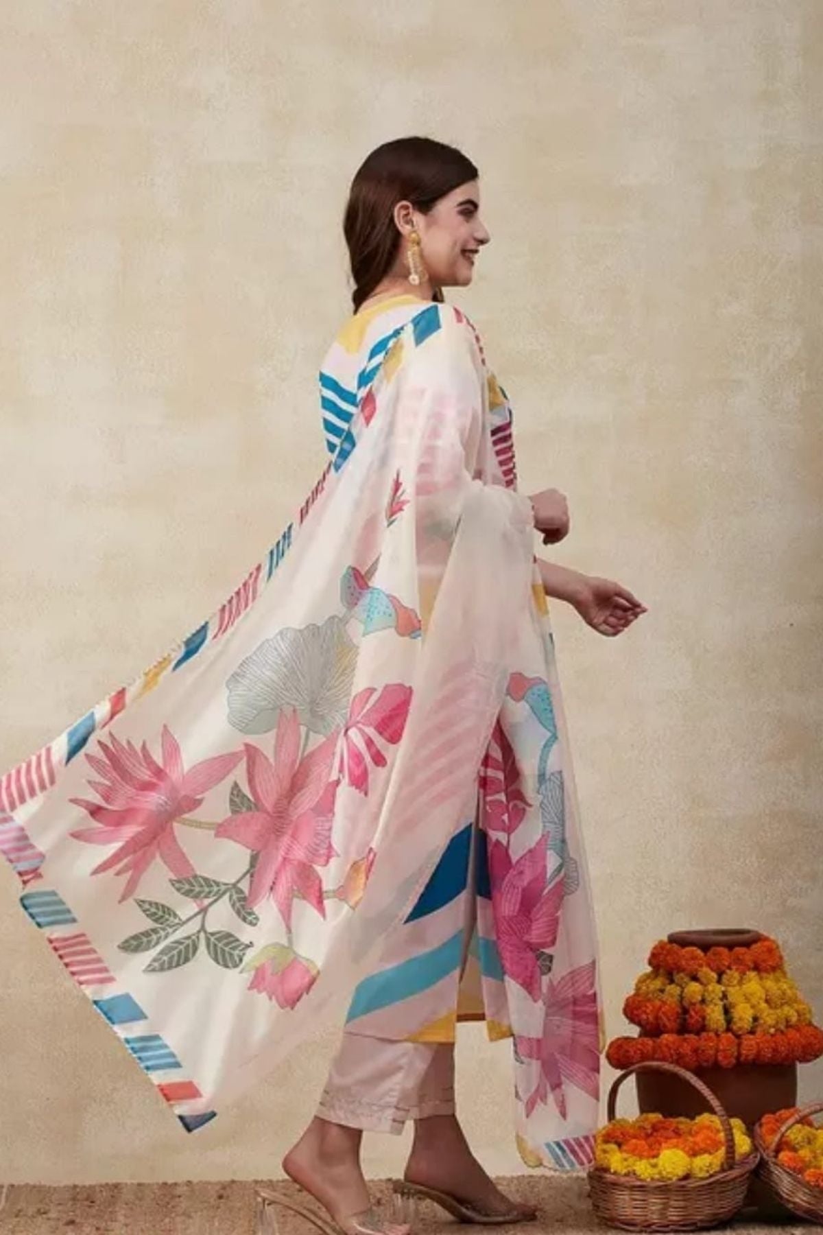 Look gorgeous in this cotton printed 3 piece  suit set with dupatta
