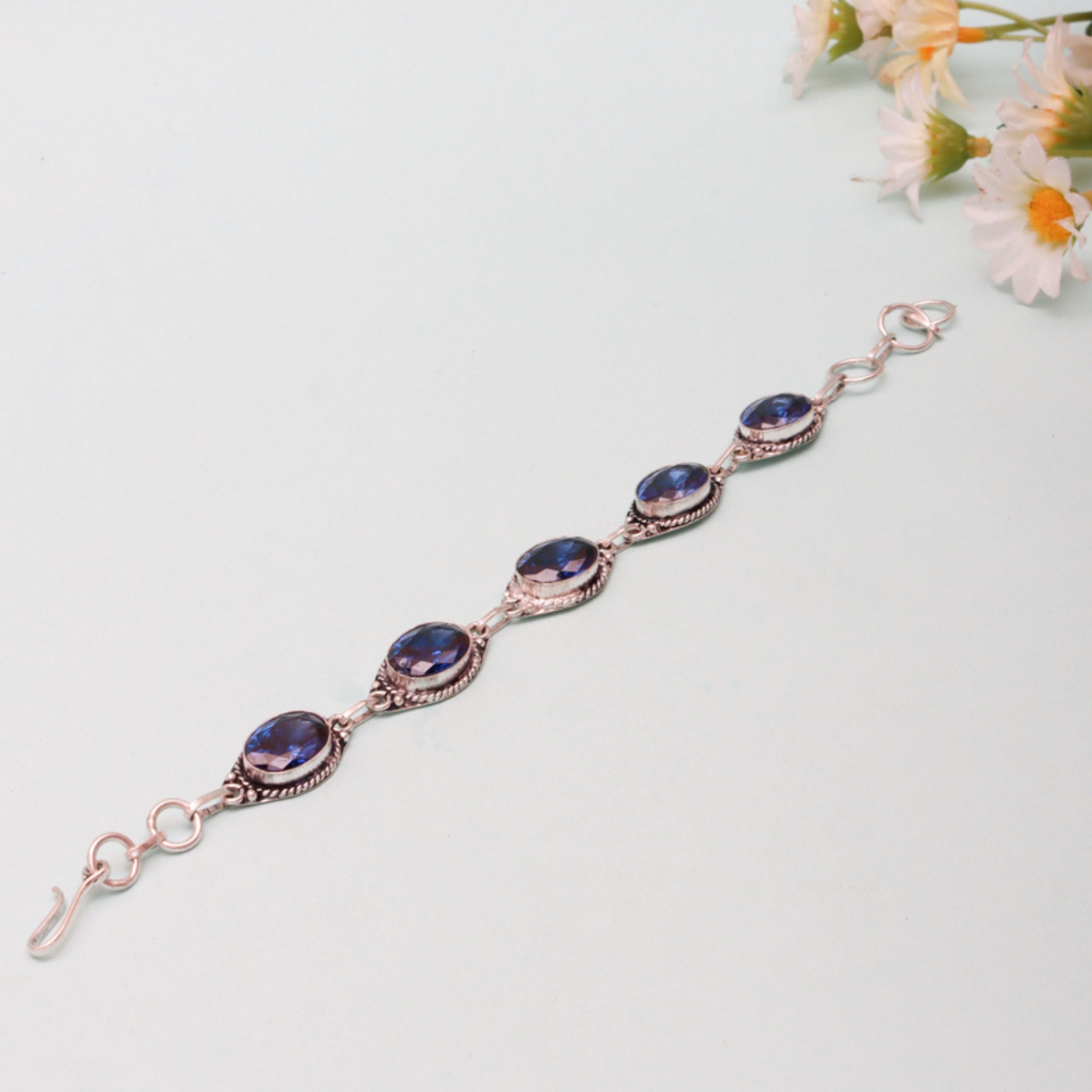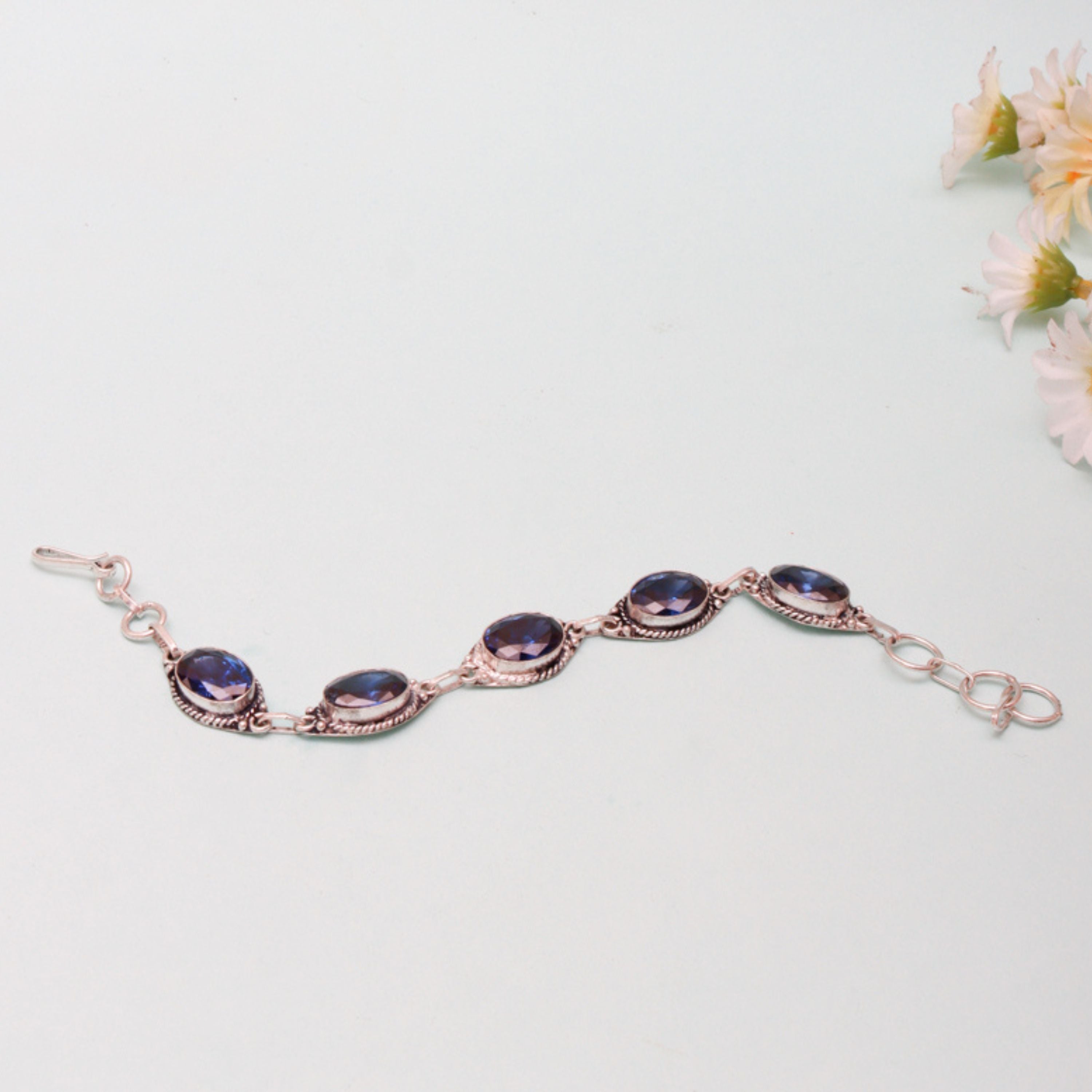 Expertly crafted with a lustrous stone and sterling shine ,this bracelet exudes elegance and sophistication. The unique oval shape of the stone adds a touch of charm, while the setting provides durability and timeless style. Elevate any outfit with this stunning piece.