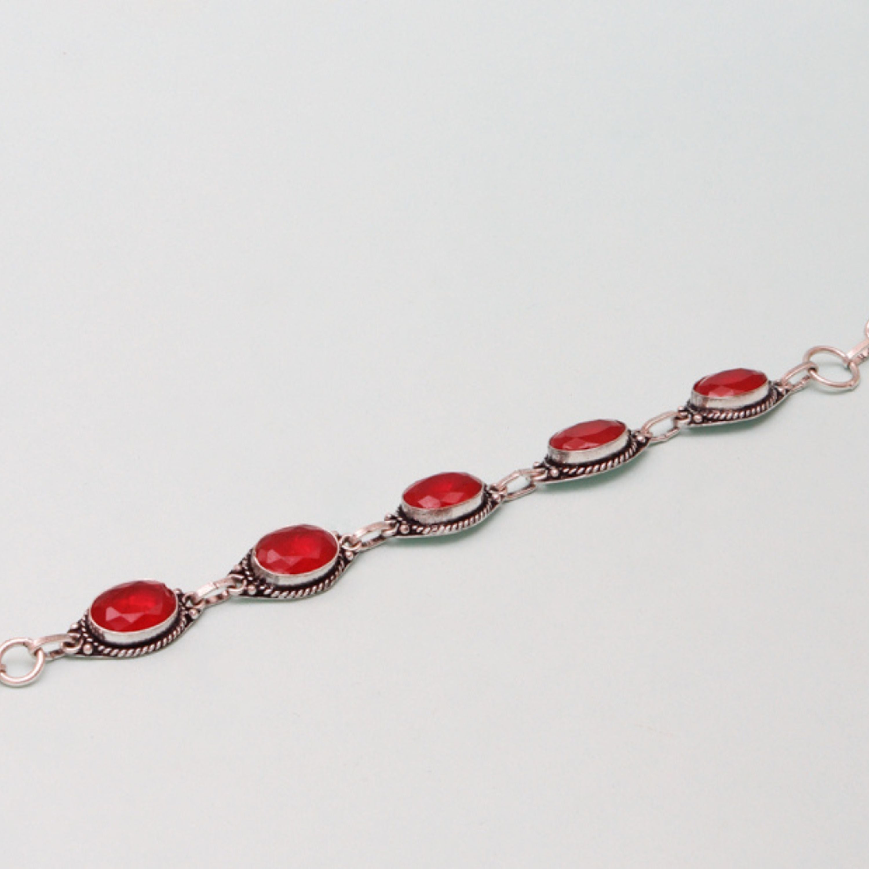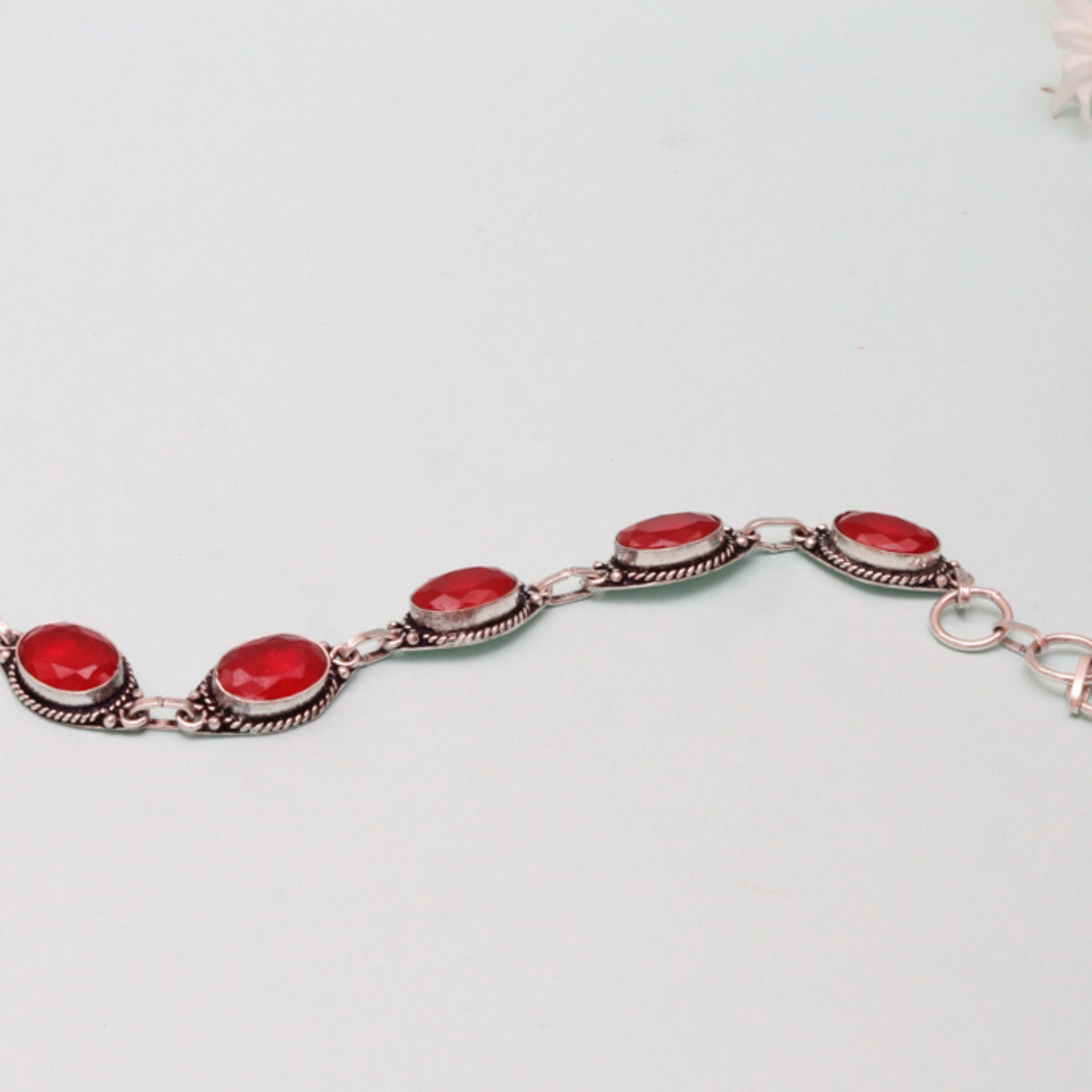 This red Gemstone Bracelet is expertly crafted and hand-polished, featuring a vibrant and alluring shade of red. This bracelet can promote self-confidence, motivation, and creativity. Bring a touch of elegance and positivity to your outfit with this stunning gemstone piece.