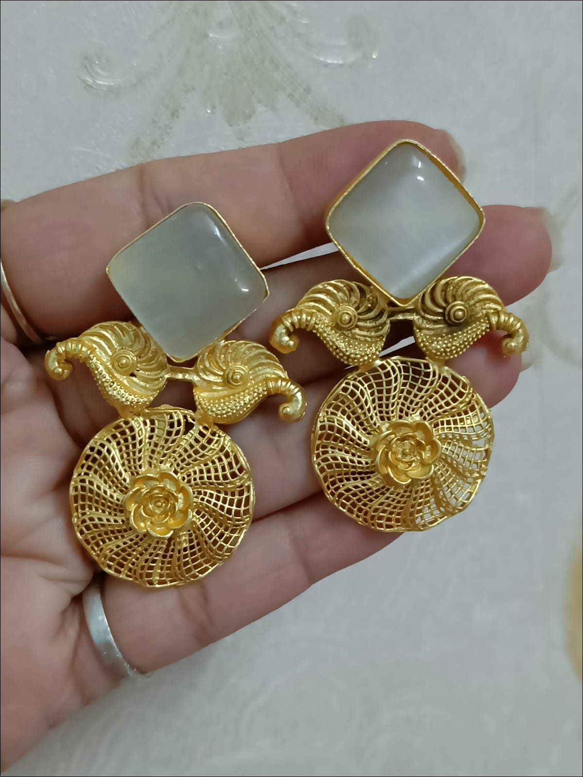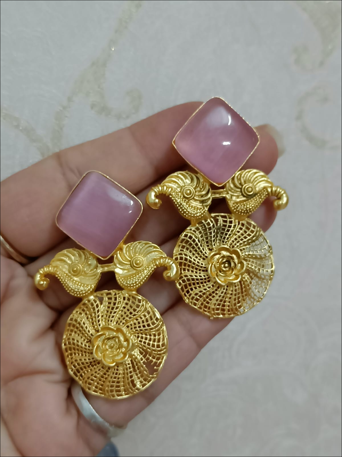 Beautiful stoned earrings with lovely golden colour to give a traditional look for your ethnic wear