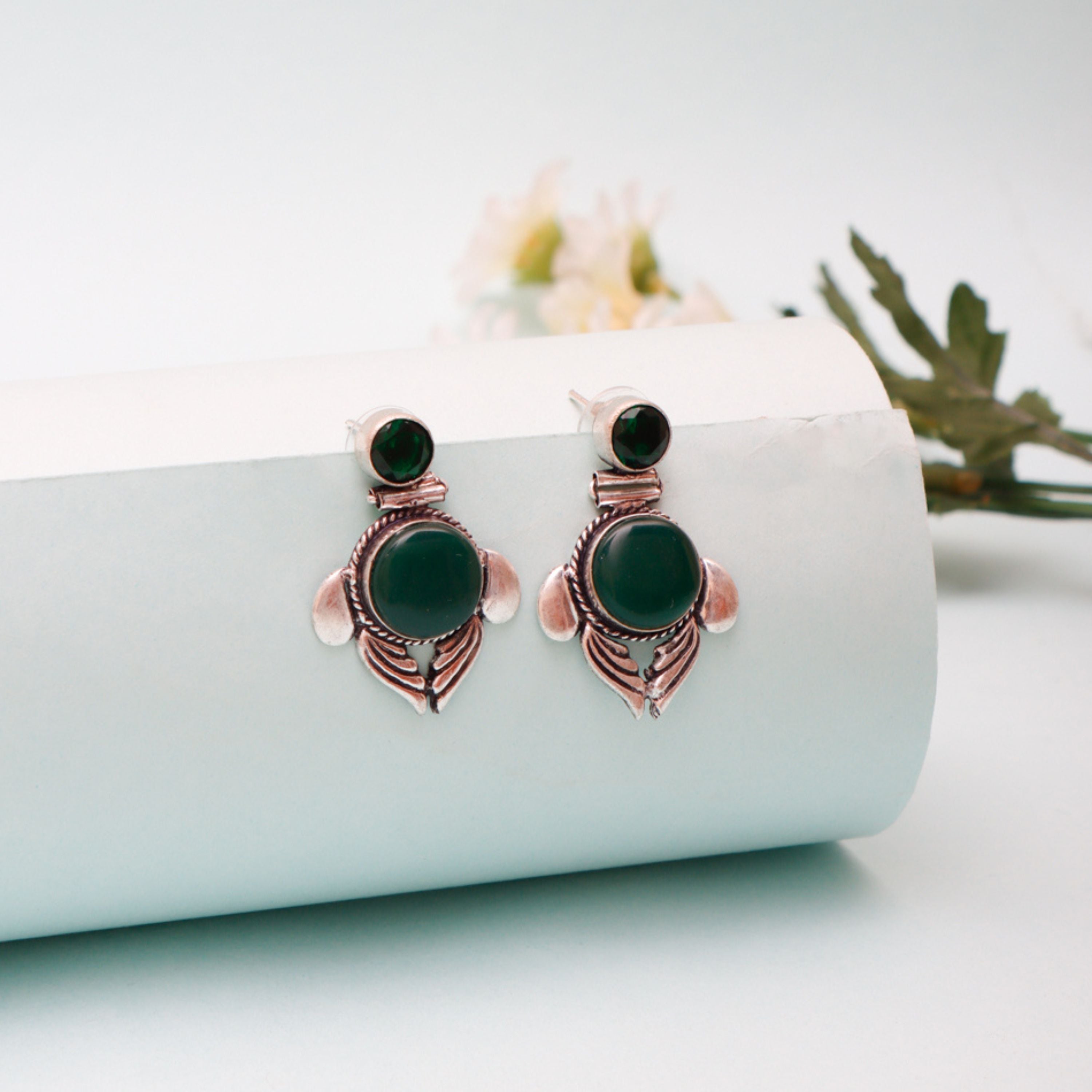 Enhance your style with our Round Ethnic Green Earrings. These stunning green ethnic earrings add a touch of culture to any outfit. Made with quality metal, they are durable and lightweight. Perfect for a subtle yet bold statement. Upgrade your accessory game today!