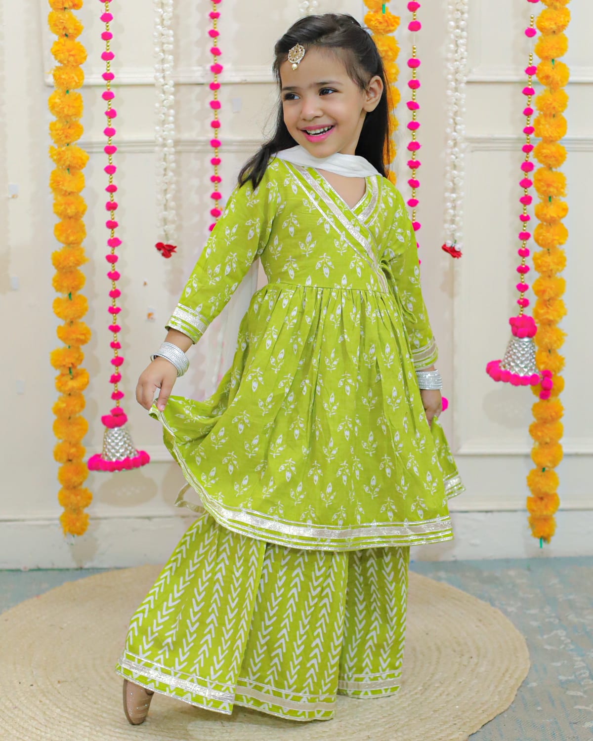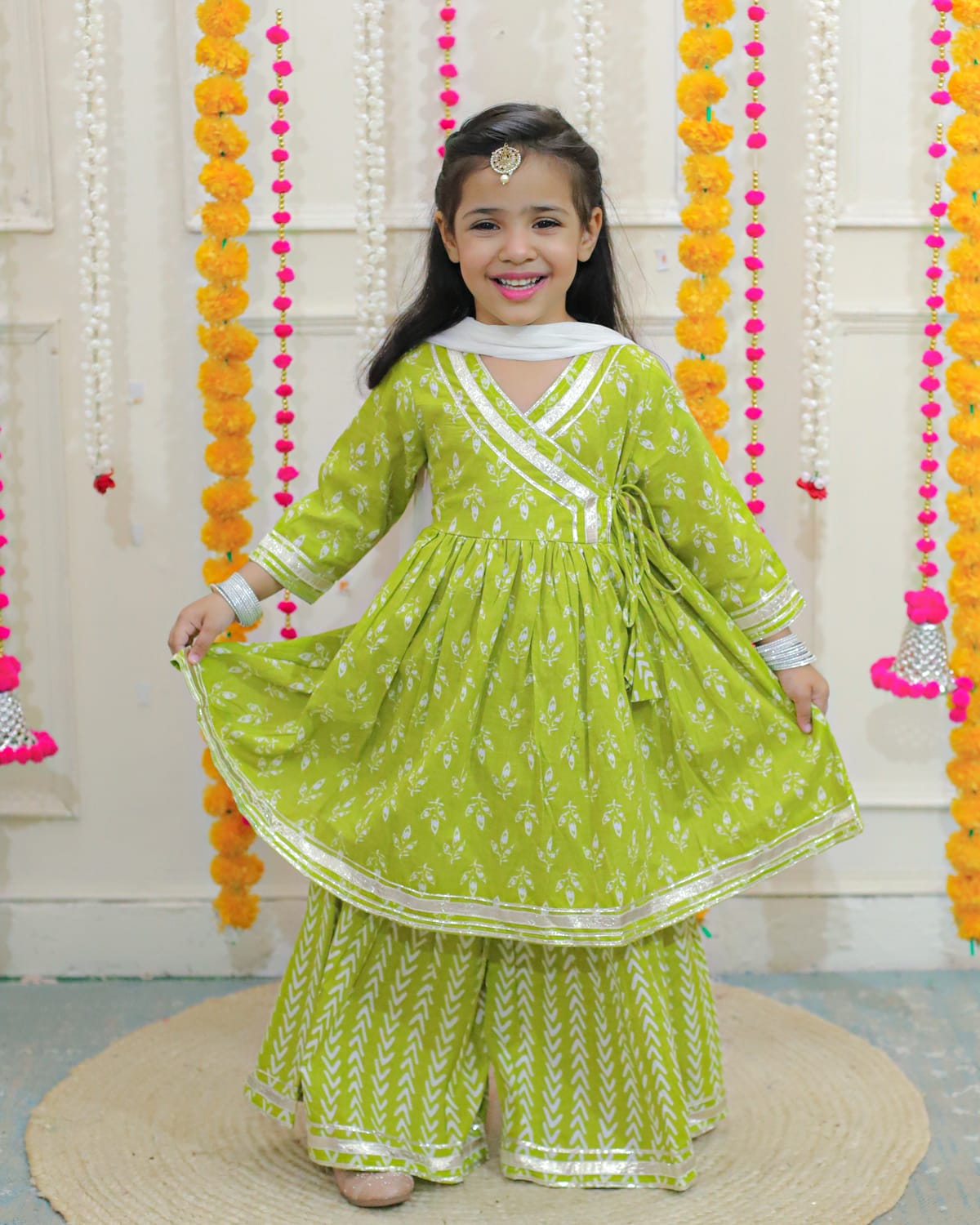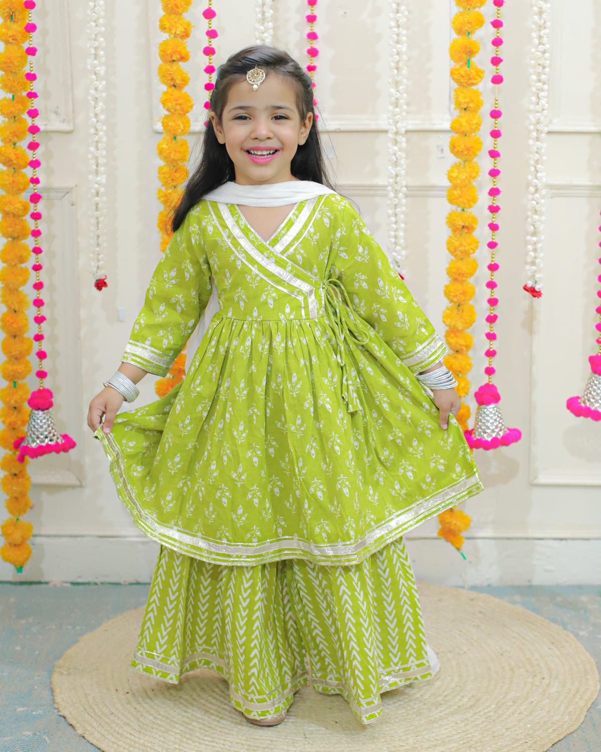 Beautiful stylish sharara set with gotta and lace work and designer neck and flaired sharara