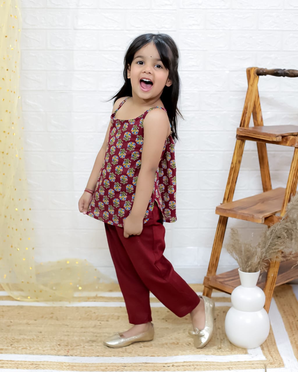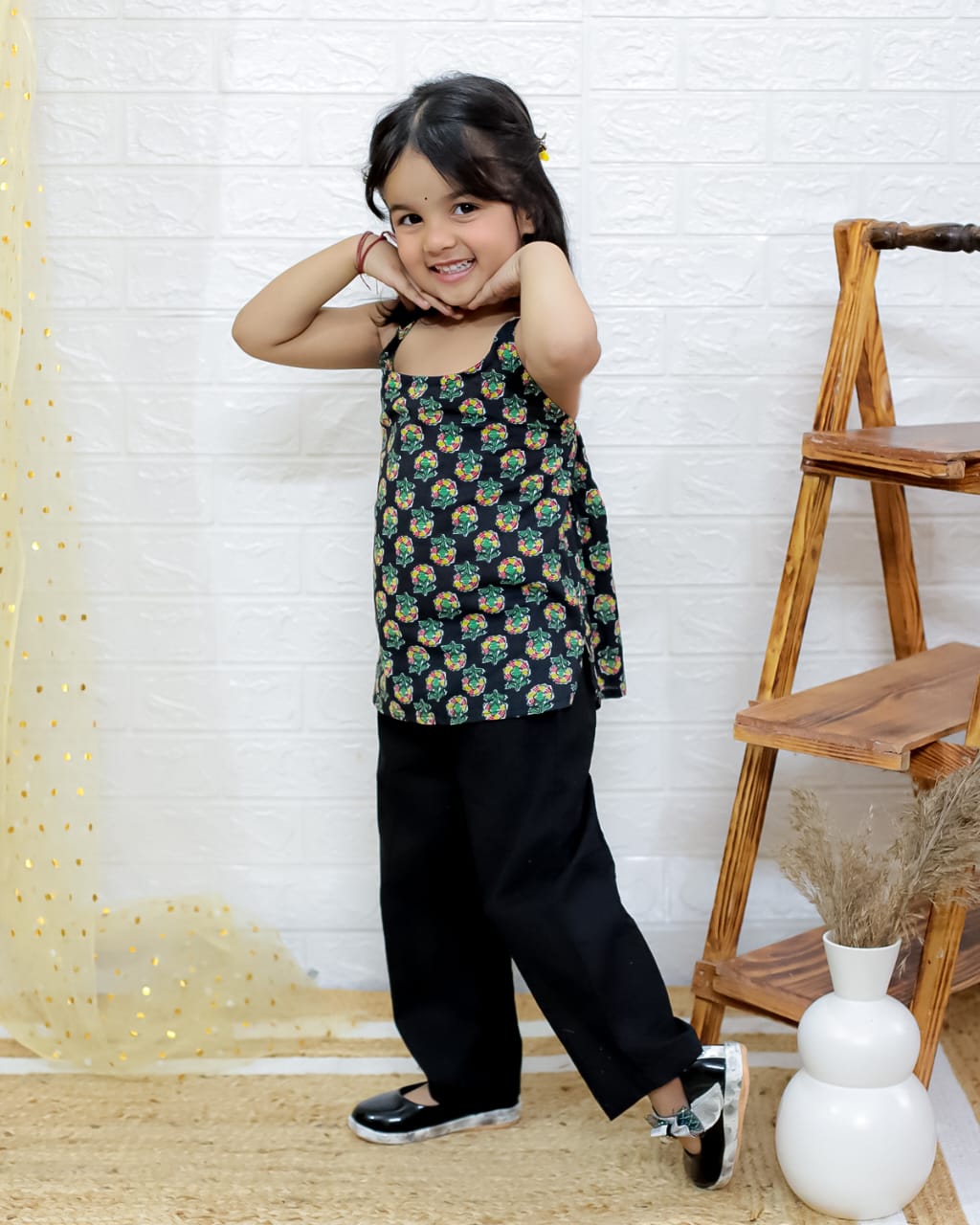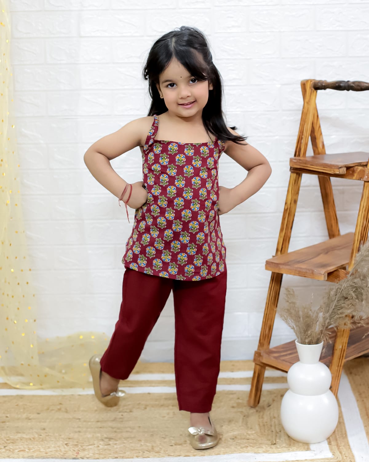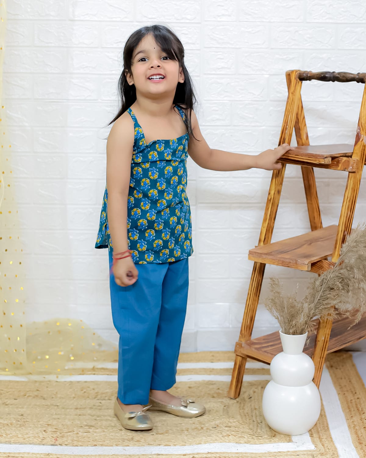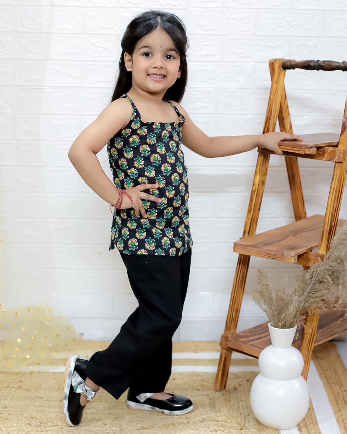 This is perfect this summer for your little girl. It has a sleevless shoulder cotton printed top with adjustable strips
