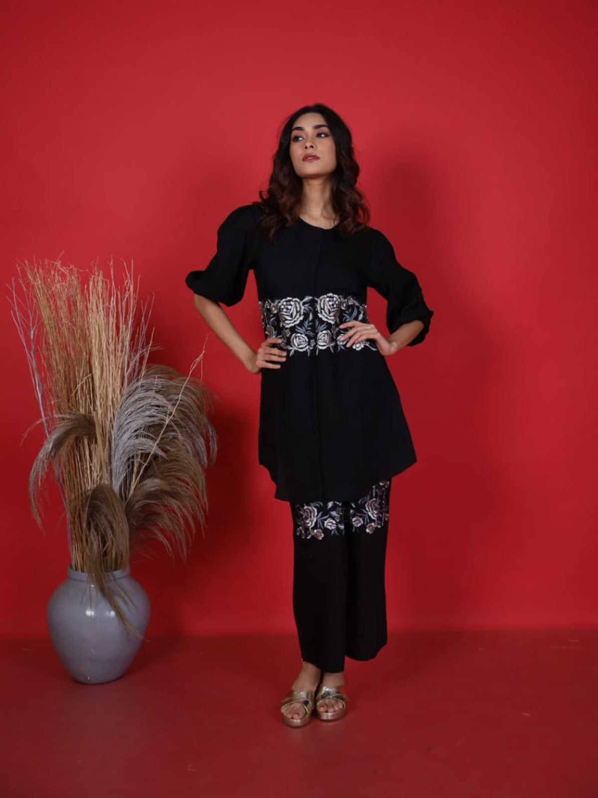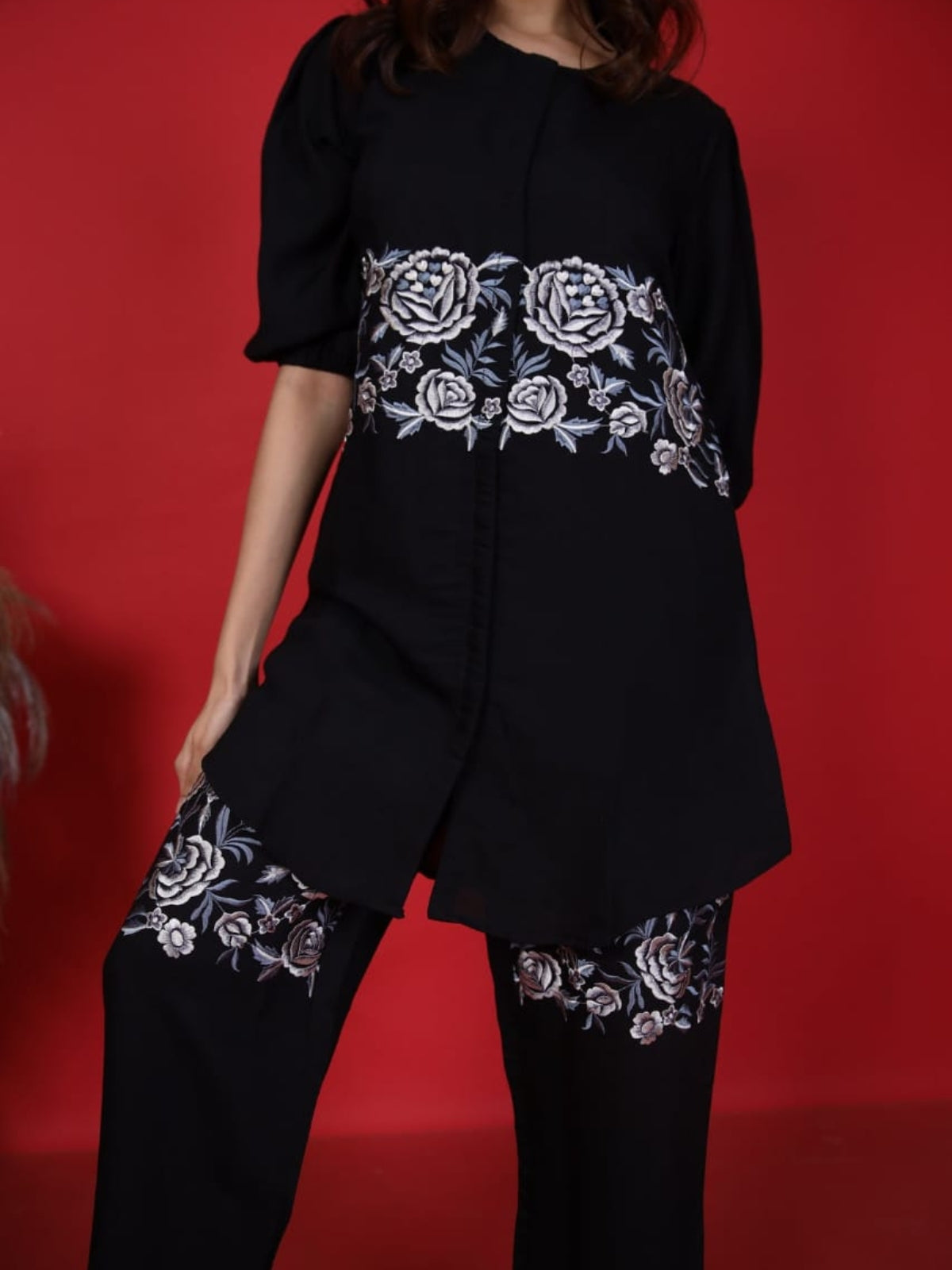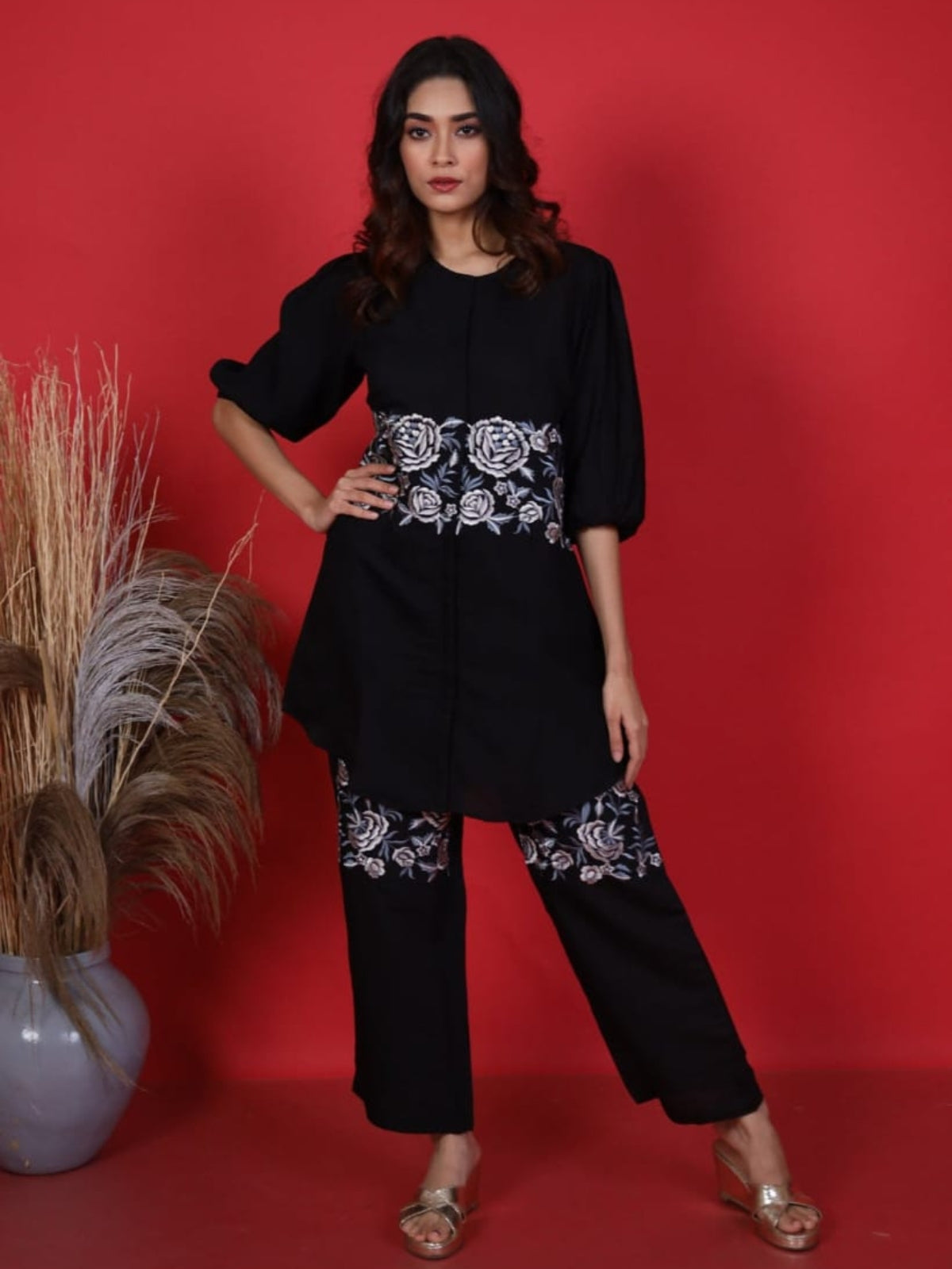 A beautiful outfit with heavy embroidery. This coord set is for all the gorgeous ladies for their work or vacation.