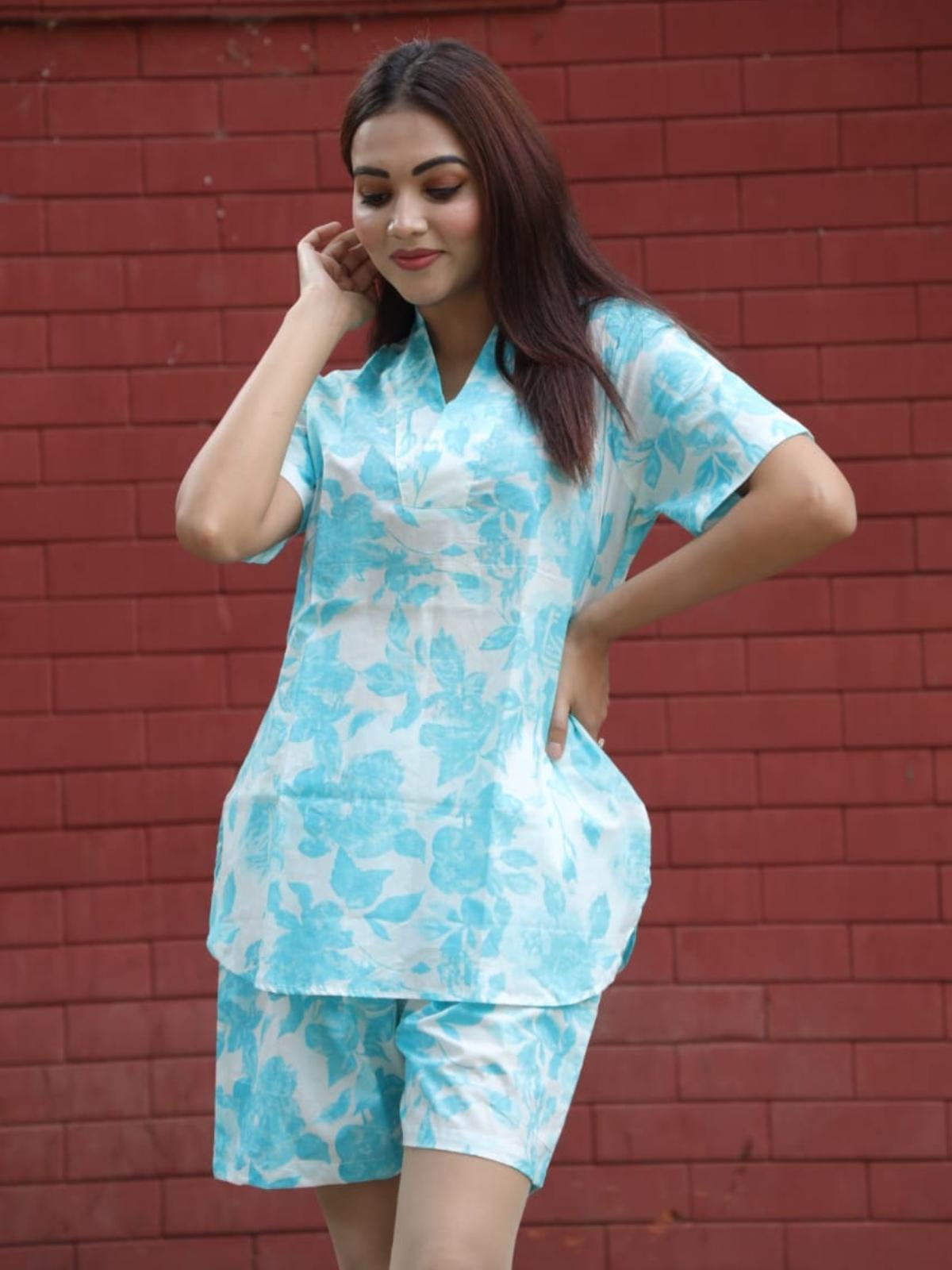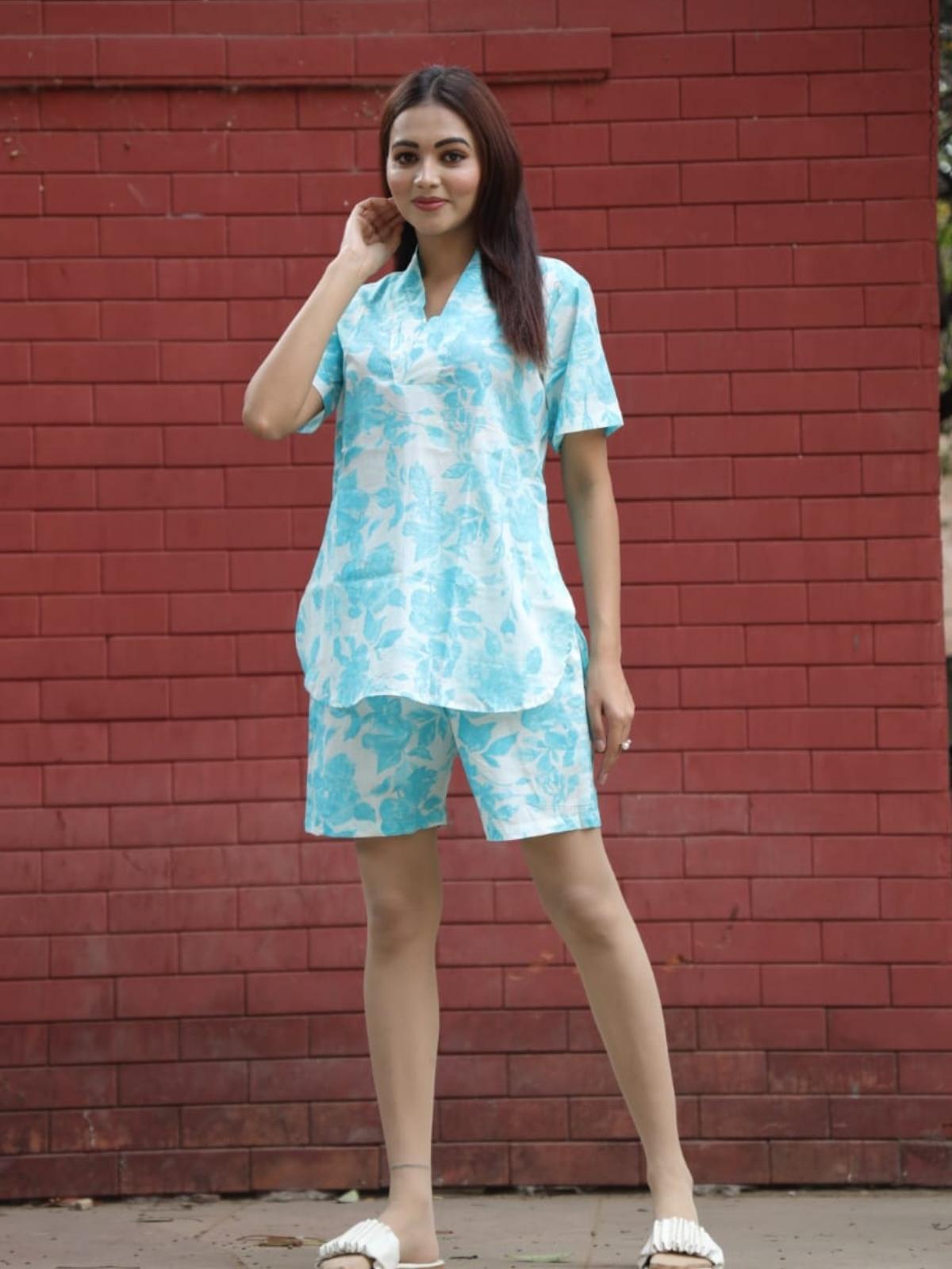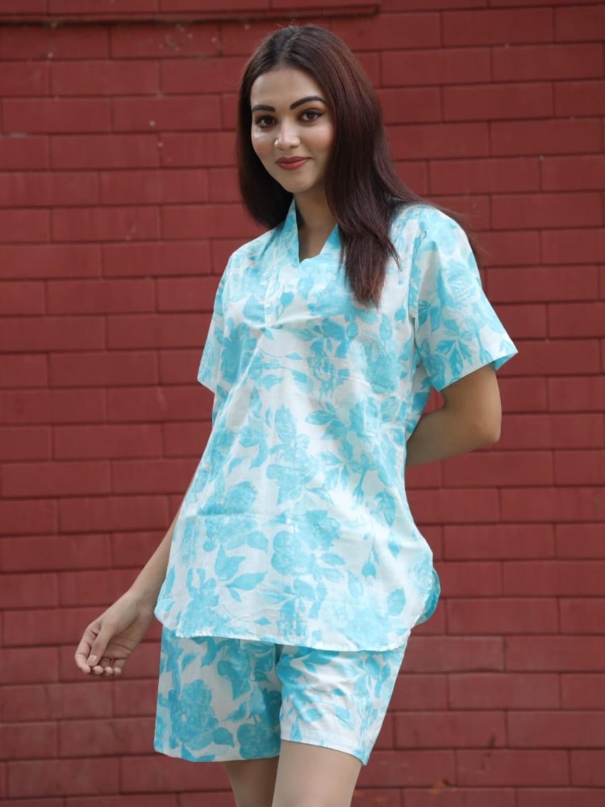Have a good night sleep with this breathable printed cotton top and shorts set.